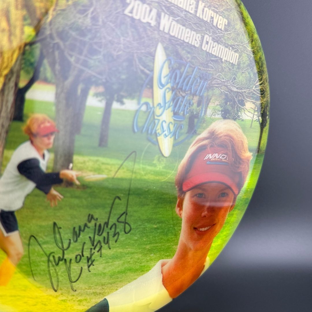 9/4/-2/2     *Scan's Stash brings an Extremely rare Champion Edition, Penned Valkyrie with Juliana Korver's autograph!  Picture disc for her 2004 Golden State Classic win!  Storage wear present due to age, including one faceplate nick above throwing hand.