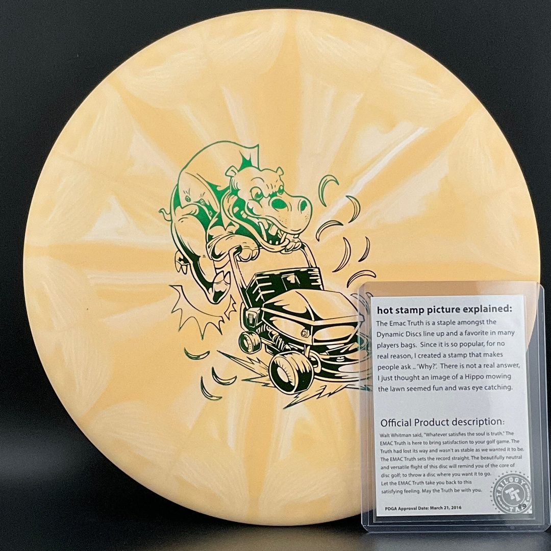 5/5/0/2  *Very Limited Run of Prime Burst EMAC Truth with a lawn mowing Hippo! Includes a sleeved card of this iconic stamp!