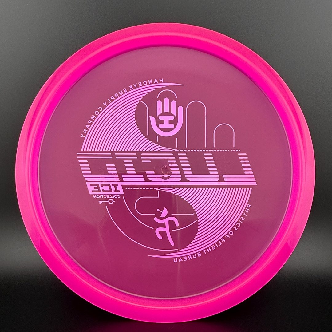 Lucid Ice is a high-end premium plastic from Dynamic Discs. It's clear and crisp in comparison to regular Lucid plastic. It's highly durable and is often used in Signature releases.