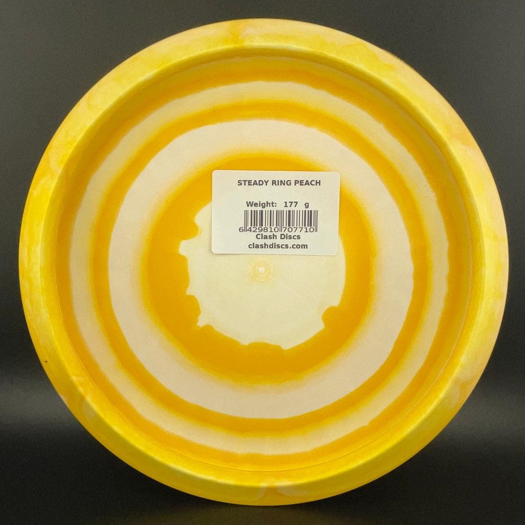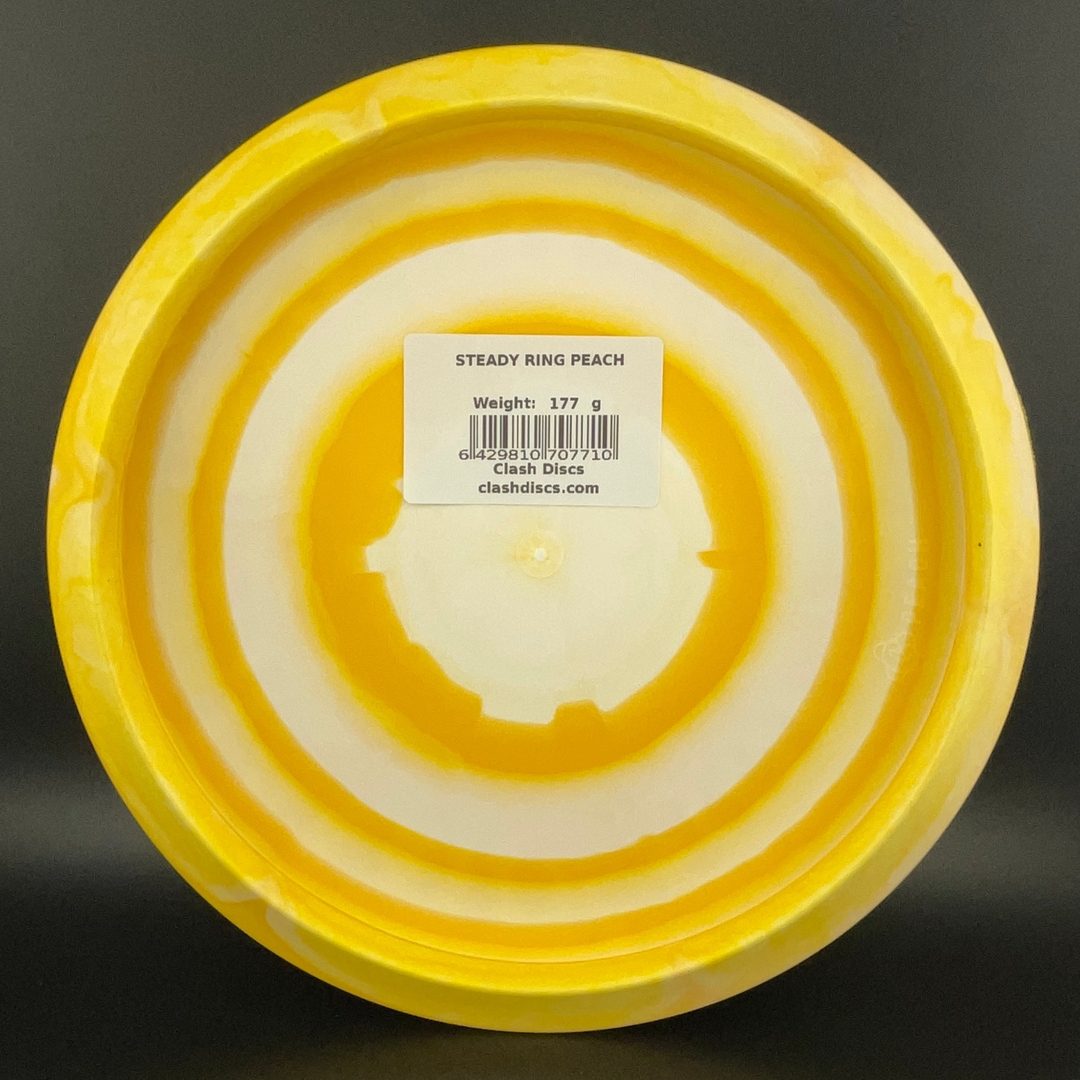 Steady Ring is Clash Discs' take on the ever-popular "Halo" effect. However, their edition has multiple swirly "Rings" throughout the plastic. This is their premium Steady plastic with this beautiful effect. STEADY is a durable and flexible premium plastic that guarantees a nice easy grip in all circumstances.