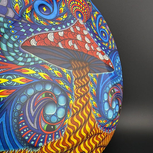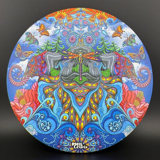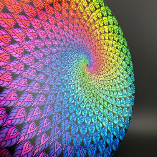 From his description of the Elephant Ice Inner Core - This design features a ton of tricks I’ve learned on the @logojet UV Printer! I basically treated this like a piece of clear acrylic… and printed the color first… then a white under base… then color again. This way, the artwork can be seen from both the top and underside of the disc 🤯 I also added a touch of alpha-channel wizardry to give the background a less-opaque finish… so more light comes through. Lastly, I added some wet-spot-gloss over the top, to give them some additional shimmer✨ These looks totally insane in-person, and I love how it can be illuminated from the front, or the back!