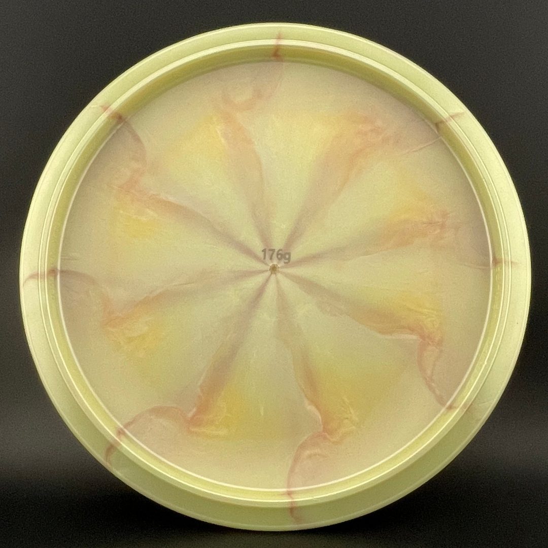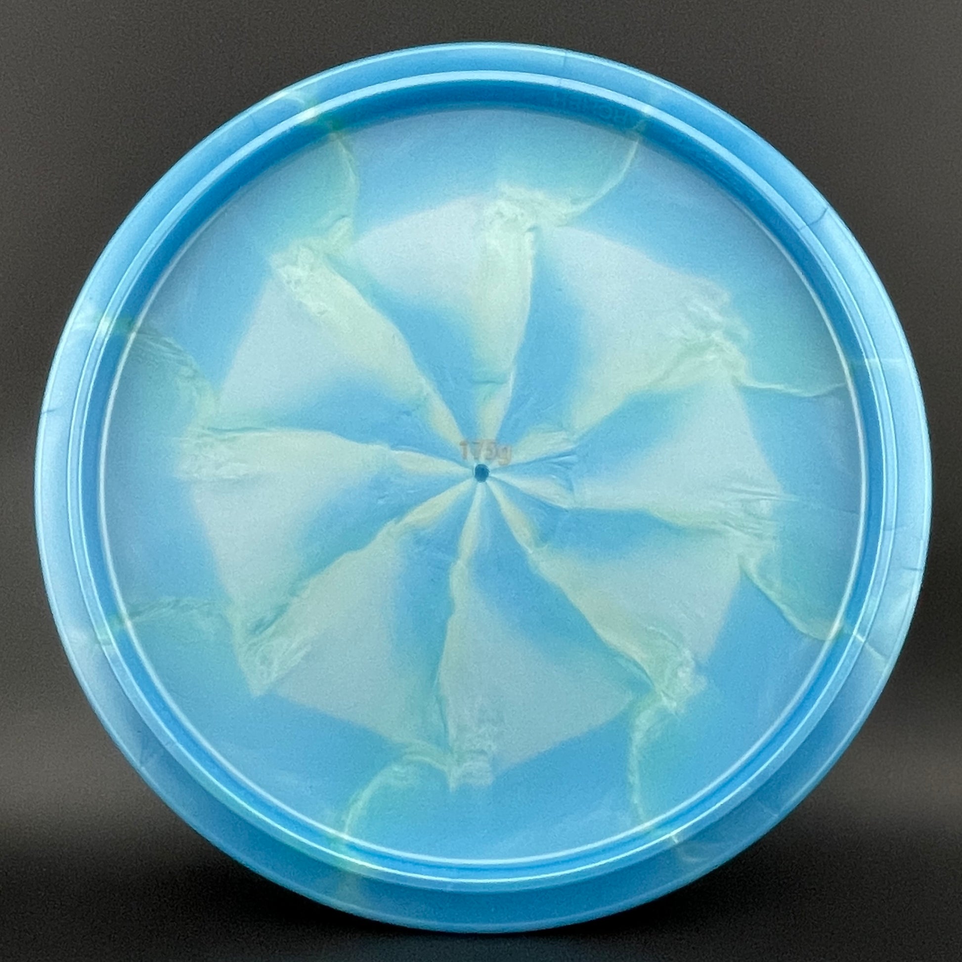Big Z Swirl plastic combines bold, oversized stamp artwork with vibrant, flowing color patterns throughout the flight plate. The swirl effect gives each disc a unique, eye-catching appearance while maintaining the durability players expect from premium blends. It offers a smooth yet slightly grippy feel in the hand, promoting clean releases and confident throws. This plastic holds its stability well over time, delivering long-lasting performance with standout visual appeal.