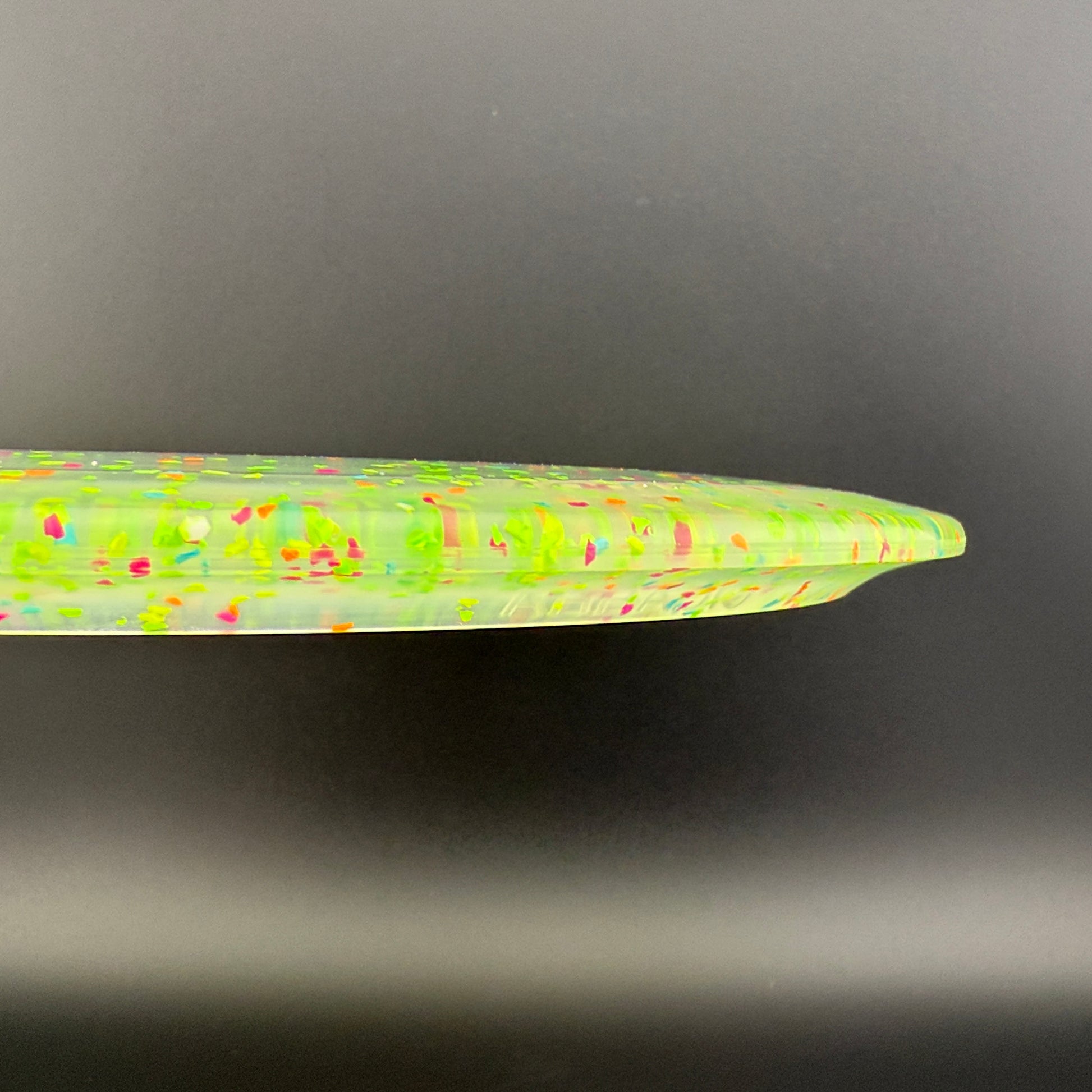 Z Confetti plastic from Discraft is a special edition variation of their premium Z Line plastic, infused with vibrant, multi-colored flakes that resemble confetti. It offers the same high durability and stability as standard Z plastic but with a festive, eye-catching aesthetic. Popular among collectors and throwers alike, Z Confetti combines elite performance with standout looks on the course.