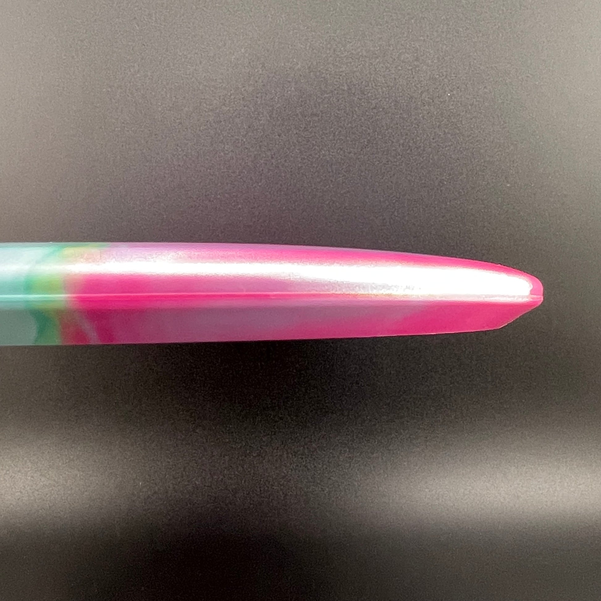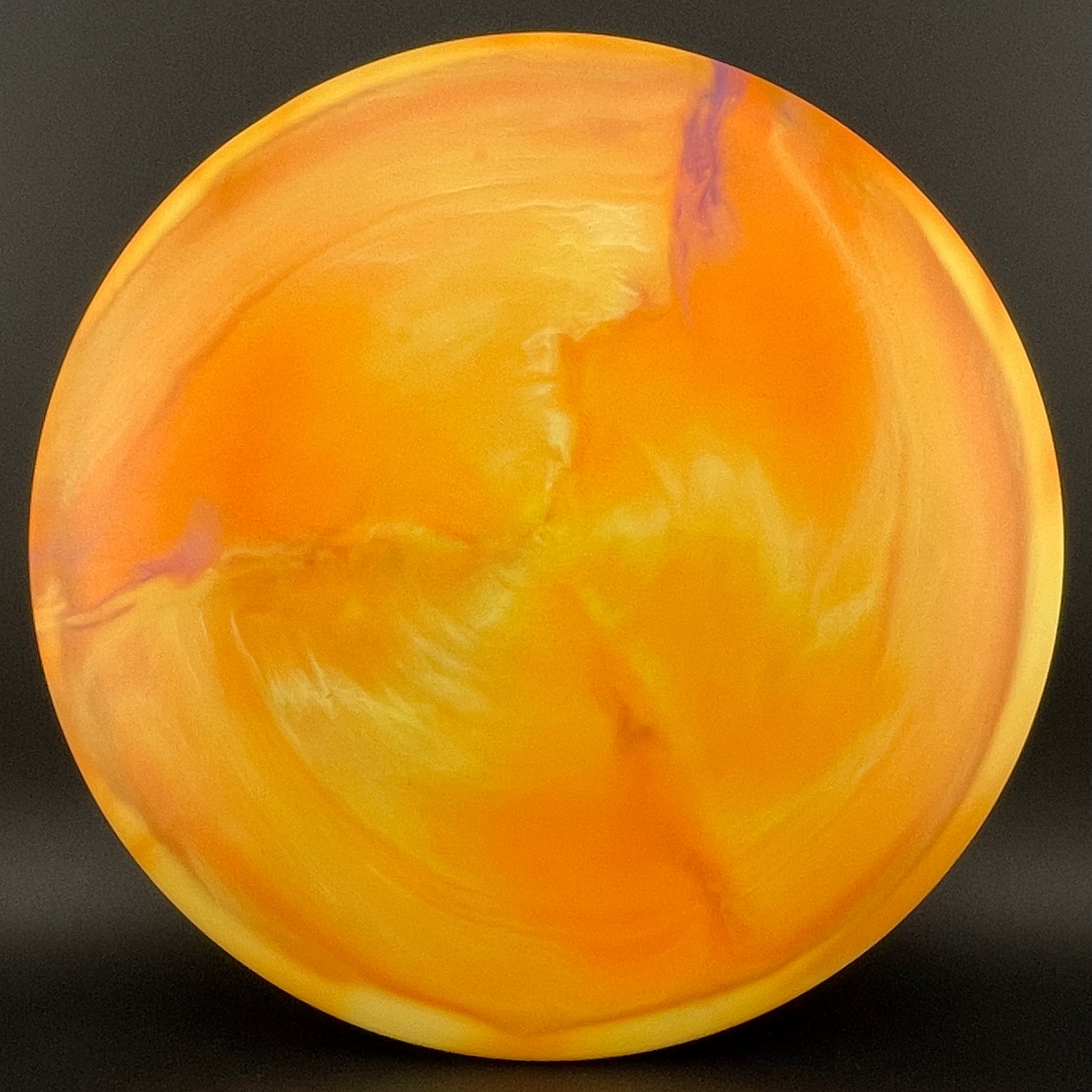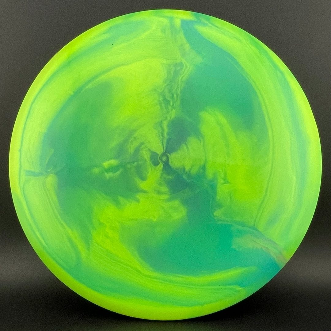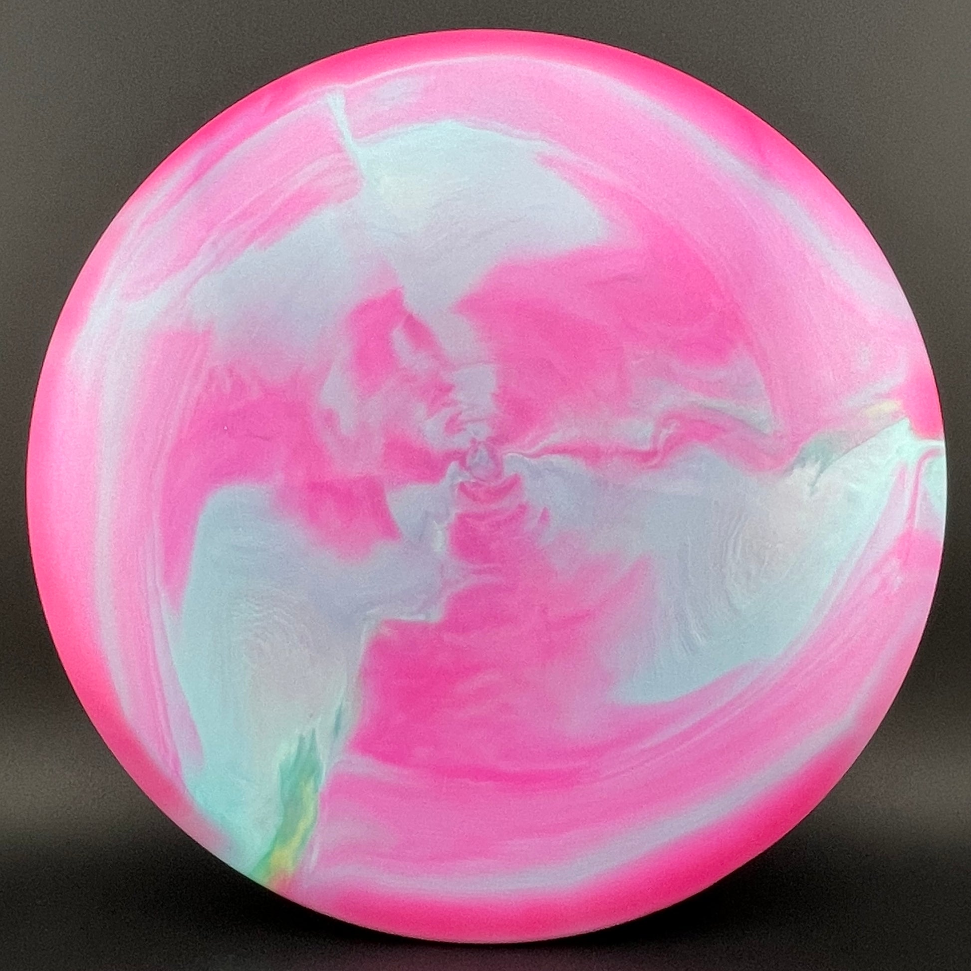 ESP Swirl plastic blends premium durability with eye-catching, one-of-a-kind color patterns. It offers a slightly tacky grip that feels secure in all weather conditions, from hot summer rounds to cooler mornings. The swirl effect creates unique visual appeal, making each disc distinct on the shelf and in the bag. This blend maintains stability well over time, beating in gradually while preserving reliable flight characteristics for consistent performance round after round.