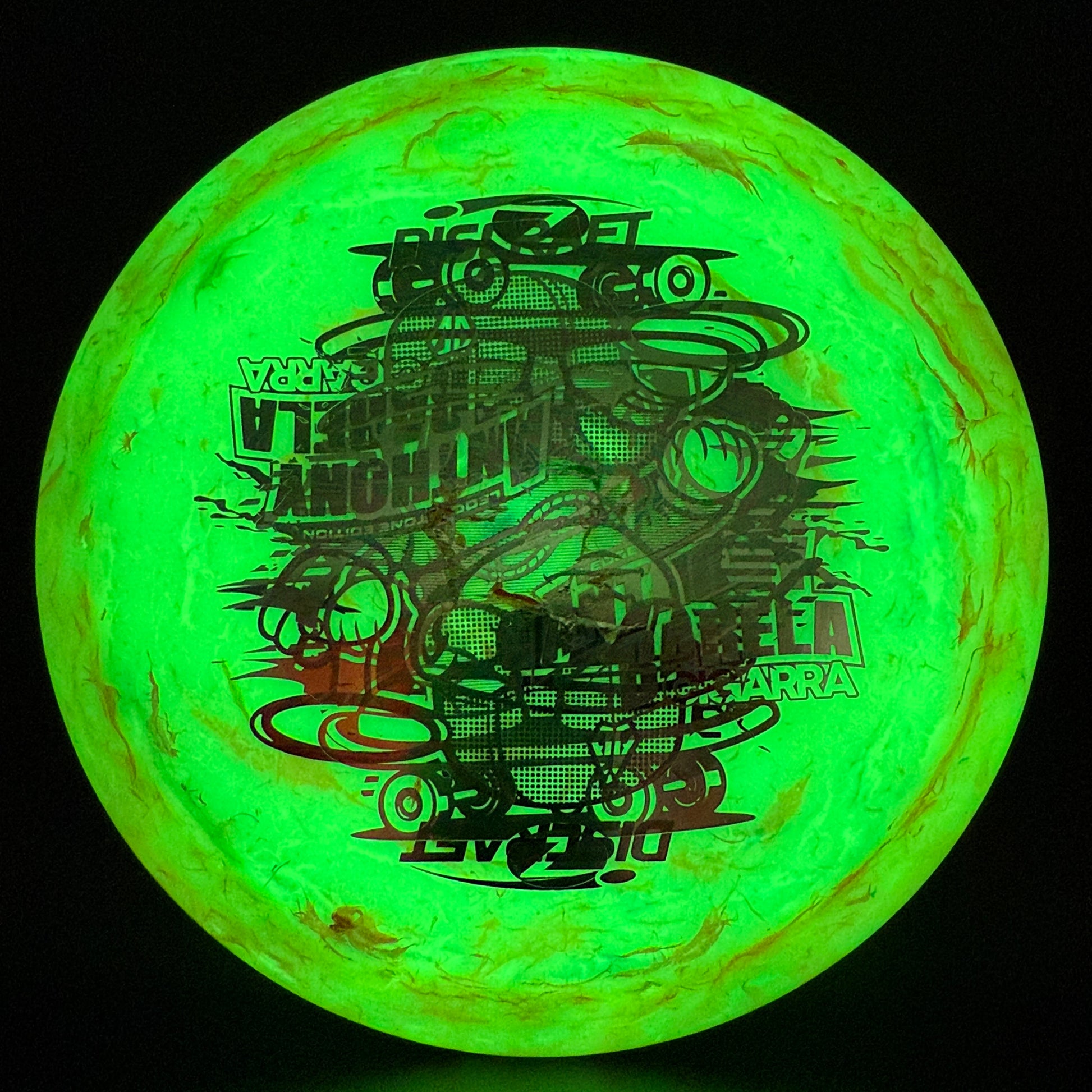 7/6/-1/2      *Misprint first run Jawbreaker Z Glo Cigarra - Anthony Barela's modified Cicada!  Almost feels like Jawbreaker Z Flx plastic, nice and grippy!  *Some jawbreaker issues present - bump on rim.   *Although not advertised, we believe this is Mega Glo plastic - very bright!