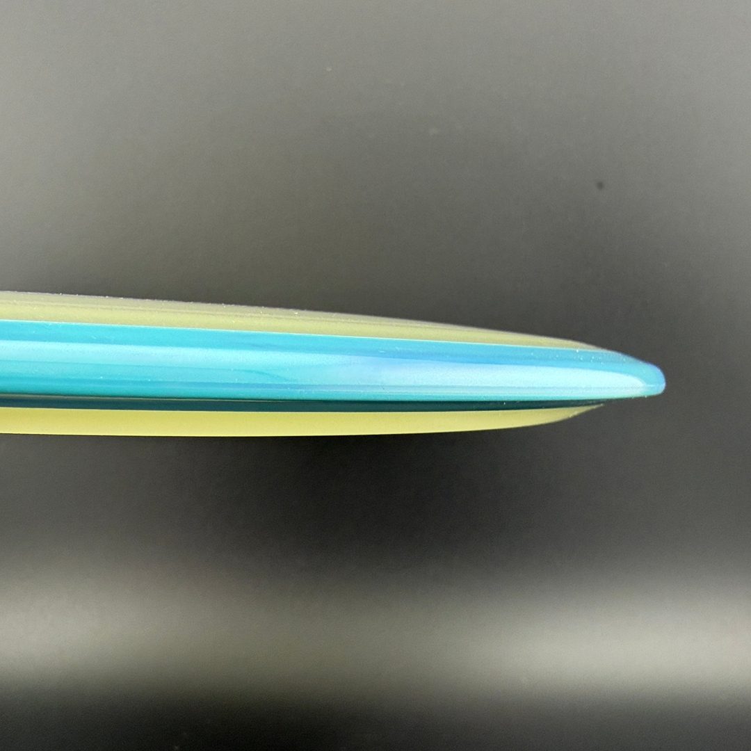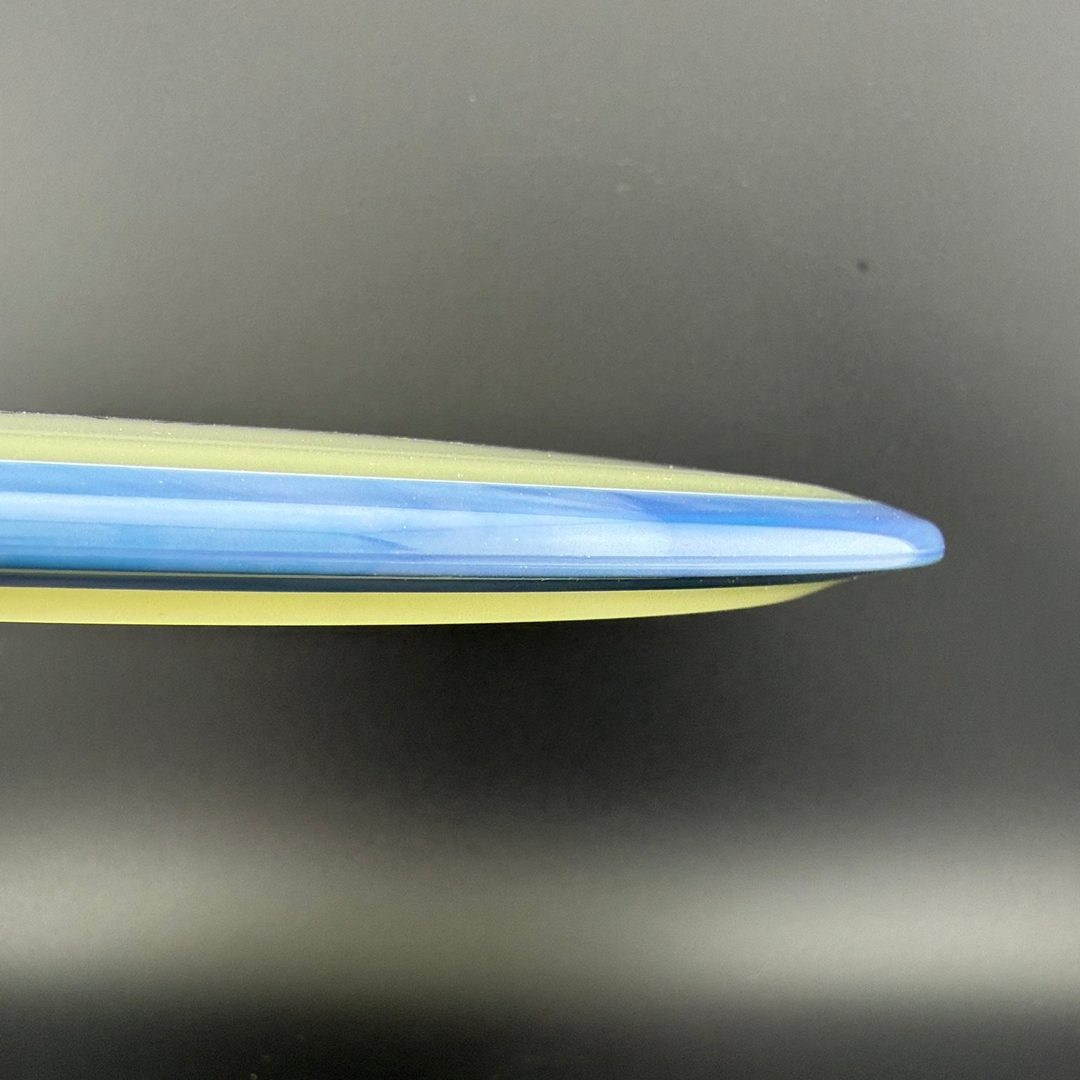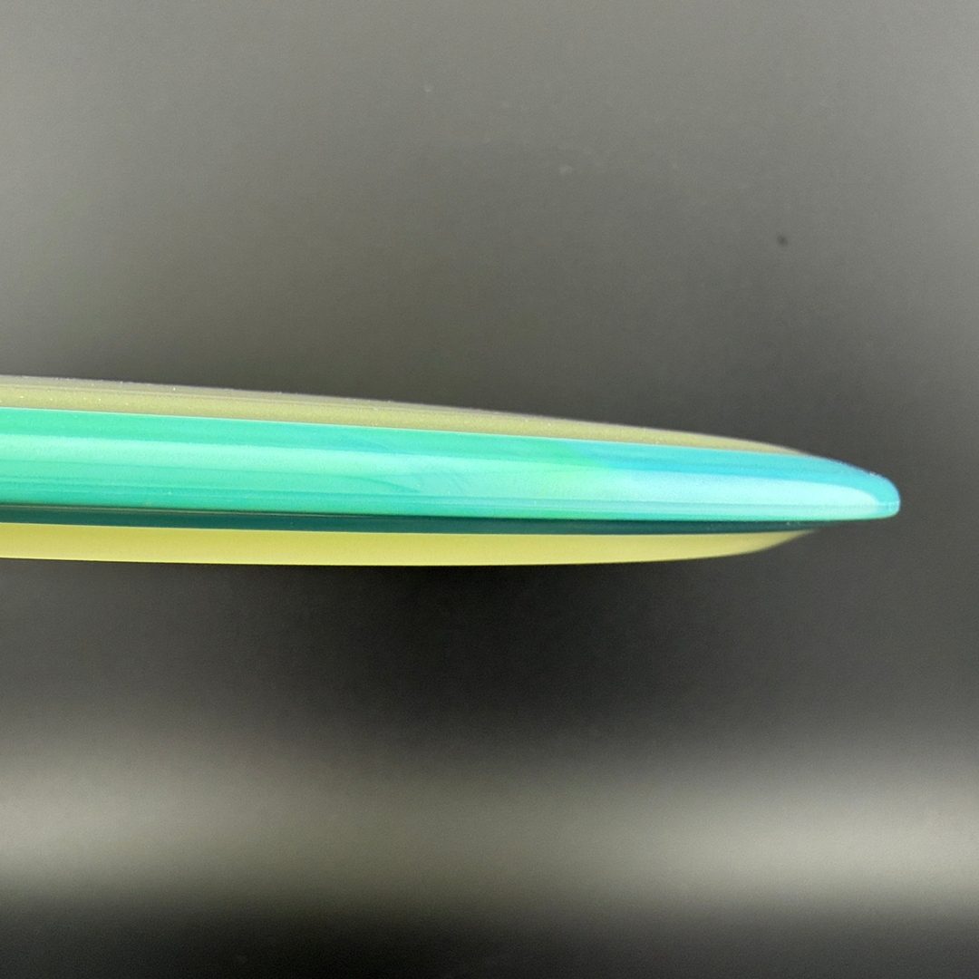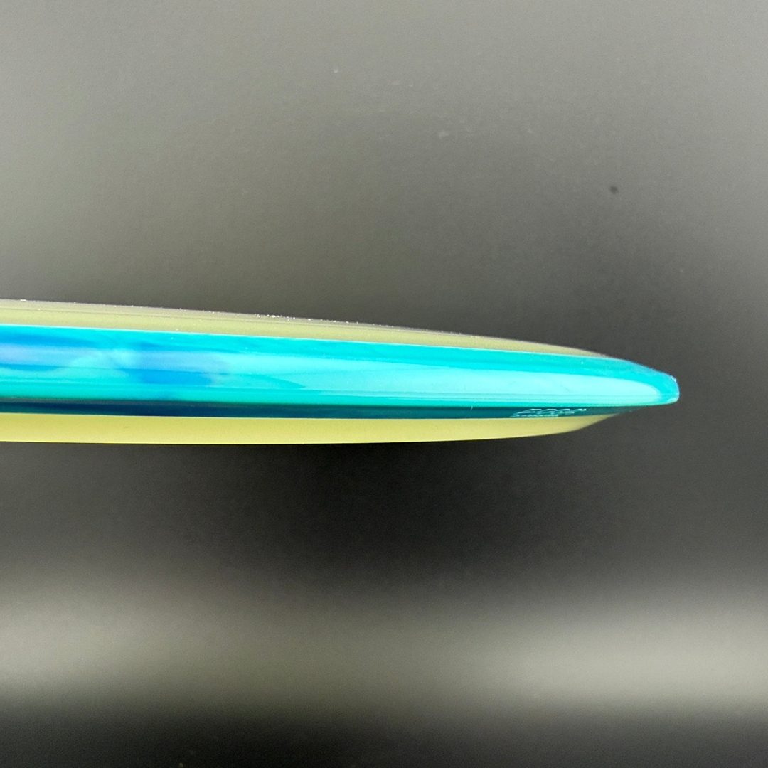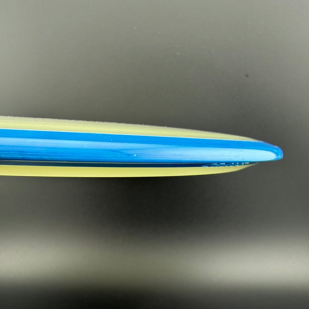 Particle-Eclipse is a striking glow-in-the-dark hybrid plastic by Axiom that embeds tiny, luminescent "particles" throughout the disc—but inside the clear Eclipse glow core, not just in the rim. This blend offers the same bright, long-lasting glow and robust durability of traditional Eclipse, paired with a unique, speckled finish visible in low-light and daylight. The feel remains firm and reliable, delivering consistent overmold stability within a glowing core that really stands out in glow rounds—and in the bag.