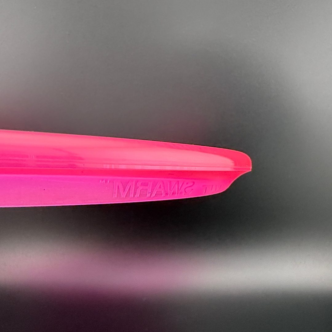 The Discraft Swarm is a flat top midrange similar to the Buzzz OS.  Shallow and flat makes us think this could be similar to the old MD4 mold - overstable midrange that can be forehand or backhanded with accuracy and speed.