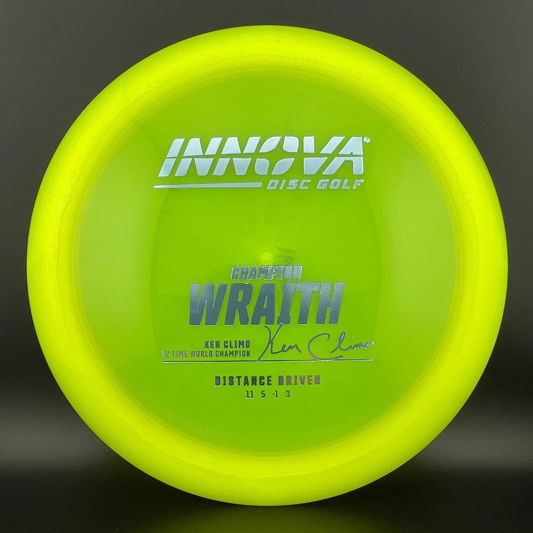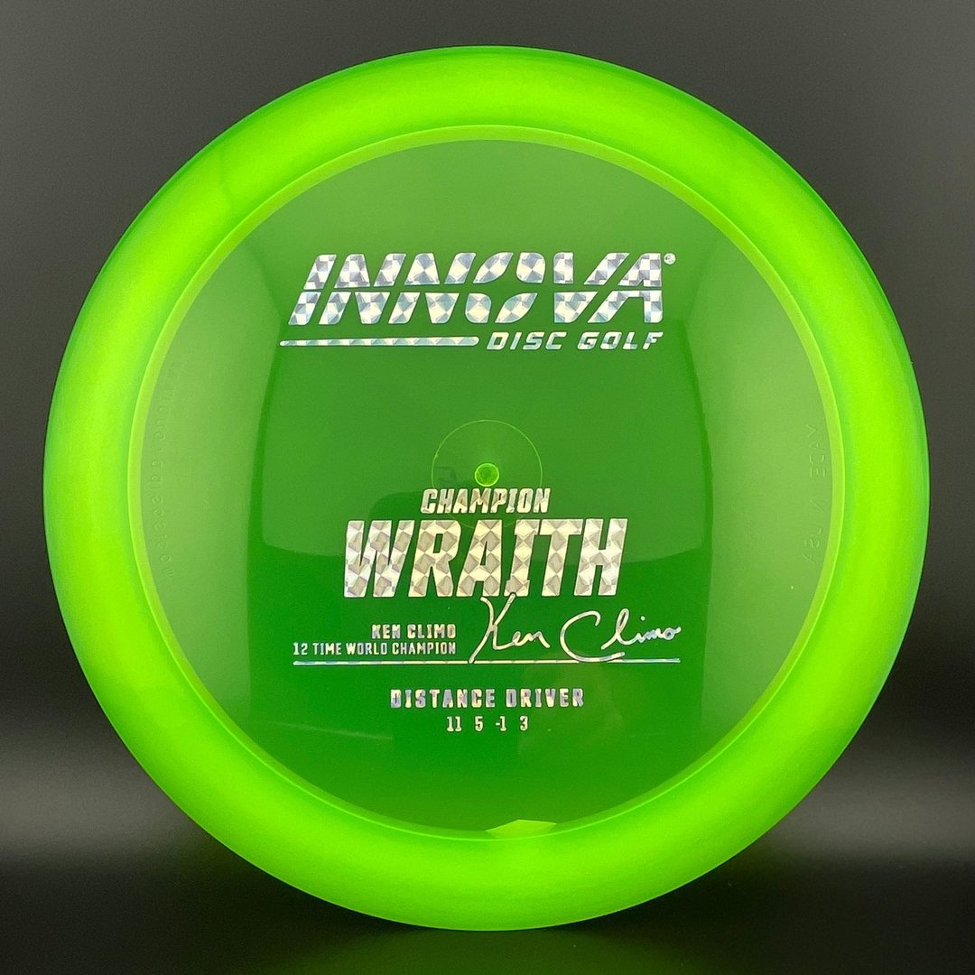 The Innova Wraith is a long stable distance driver with decent speed, exceptional glide, and precision accuracy. Players of many different skill levels can get great distance with the Wraith. The neutral stability of the Wraith allow it to be a valuable disc in all wind conditions. This driver works well for both forehand and backhand throws.
