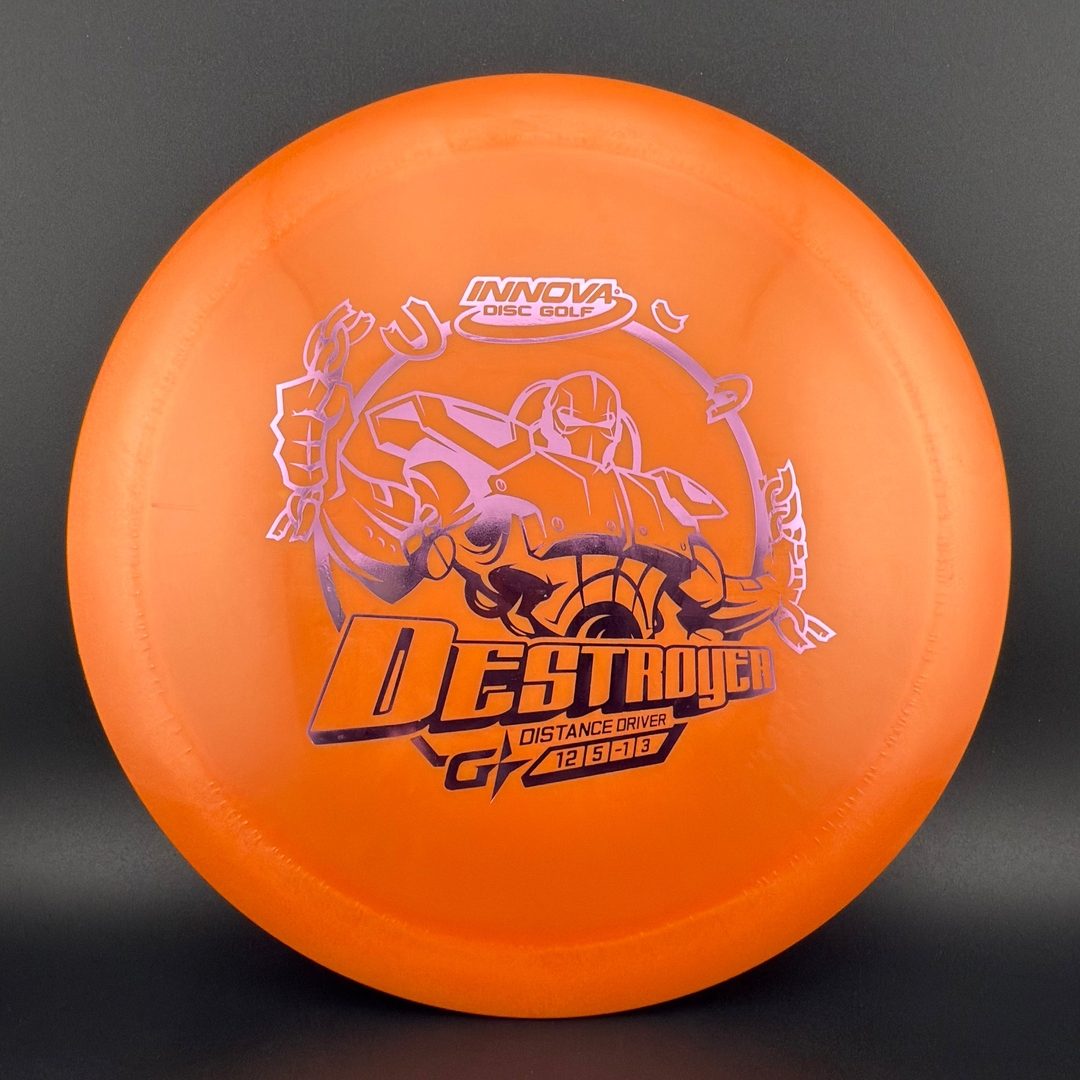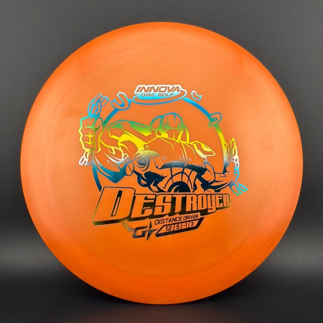 The Destroyer is the #1 selling disc on InfiniteDiscs.com. This was the first Speed 12 driver and is one of the primary discs used by many professional disc golfers. For less experienced players, the Destroyer excels for forehand throws. The Destroyer is overstable, but has a degree of turn to help provide incredible glide and distance. Intermediate players will get more distance on forehand throws with the Destroyer than just about any other disc. The Innova Destroyer is a very thin (1.4cm) disc, and has the perfect sized rim (2.2cm) for high speeds, without being uncomfortably thick. As such a popular driver, the Destroyer comes available in all the major plastics.