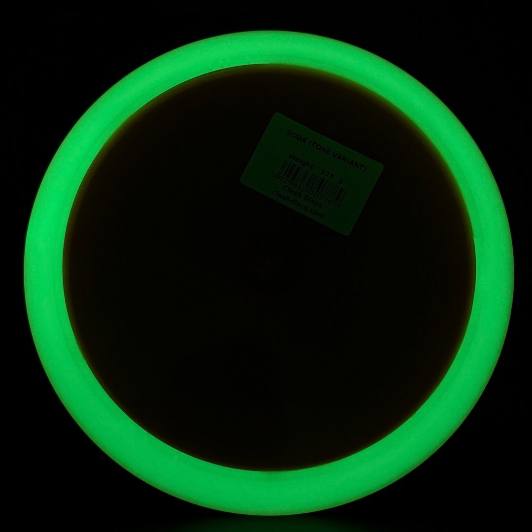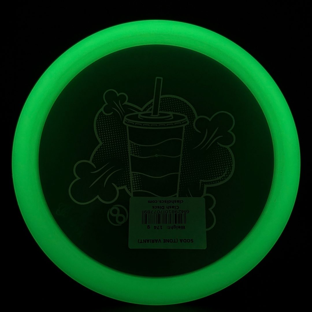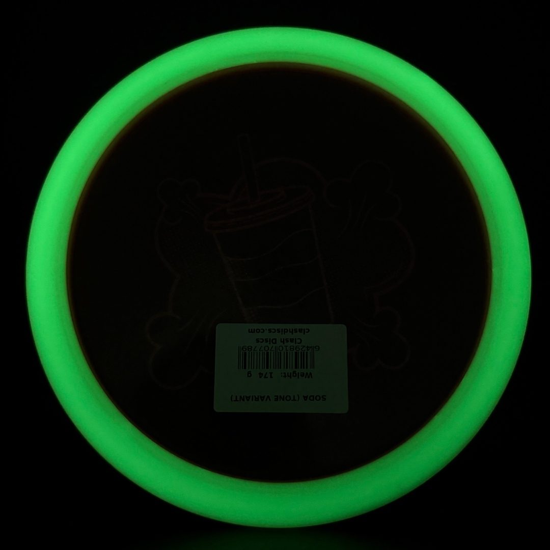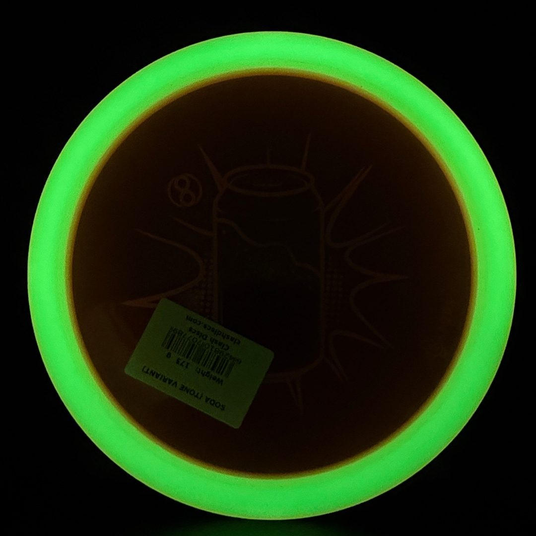 7/5/-2/2 *Limited run of First Run Tone Glow Soda's! First time to have a glow Clash disc with Tone plastic! Bottom rim glows. Excellent Grip and Feel to these! Storage wear possible with this plastic type.