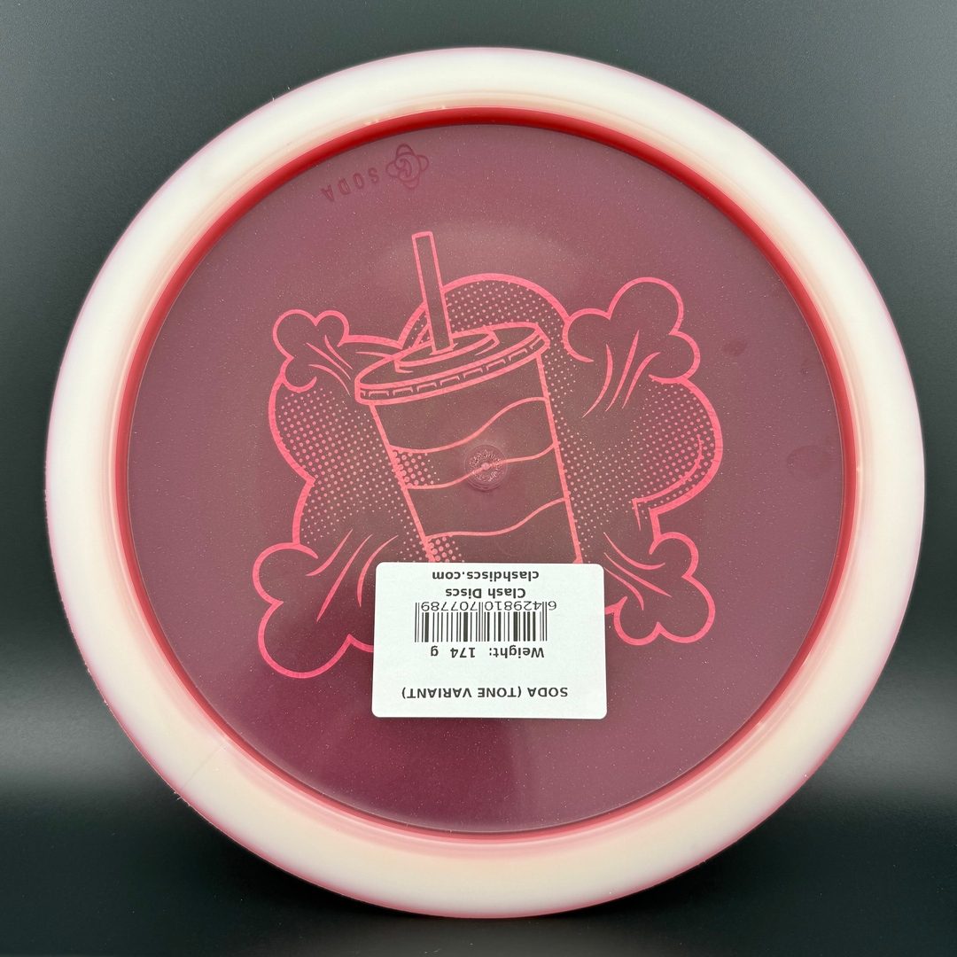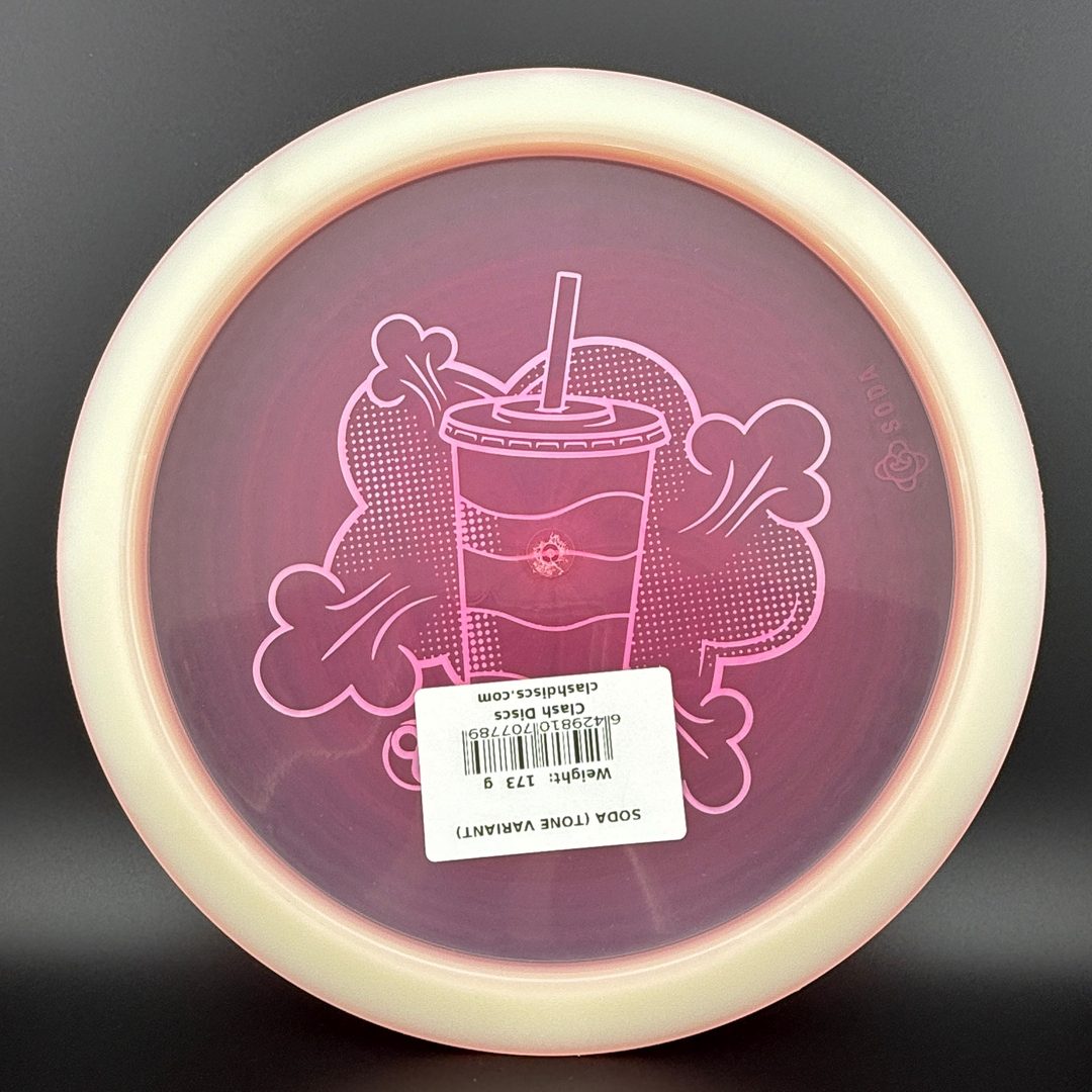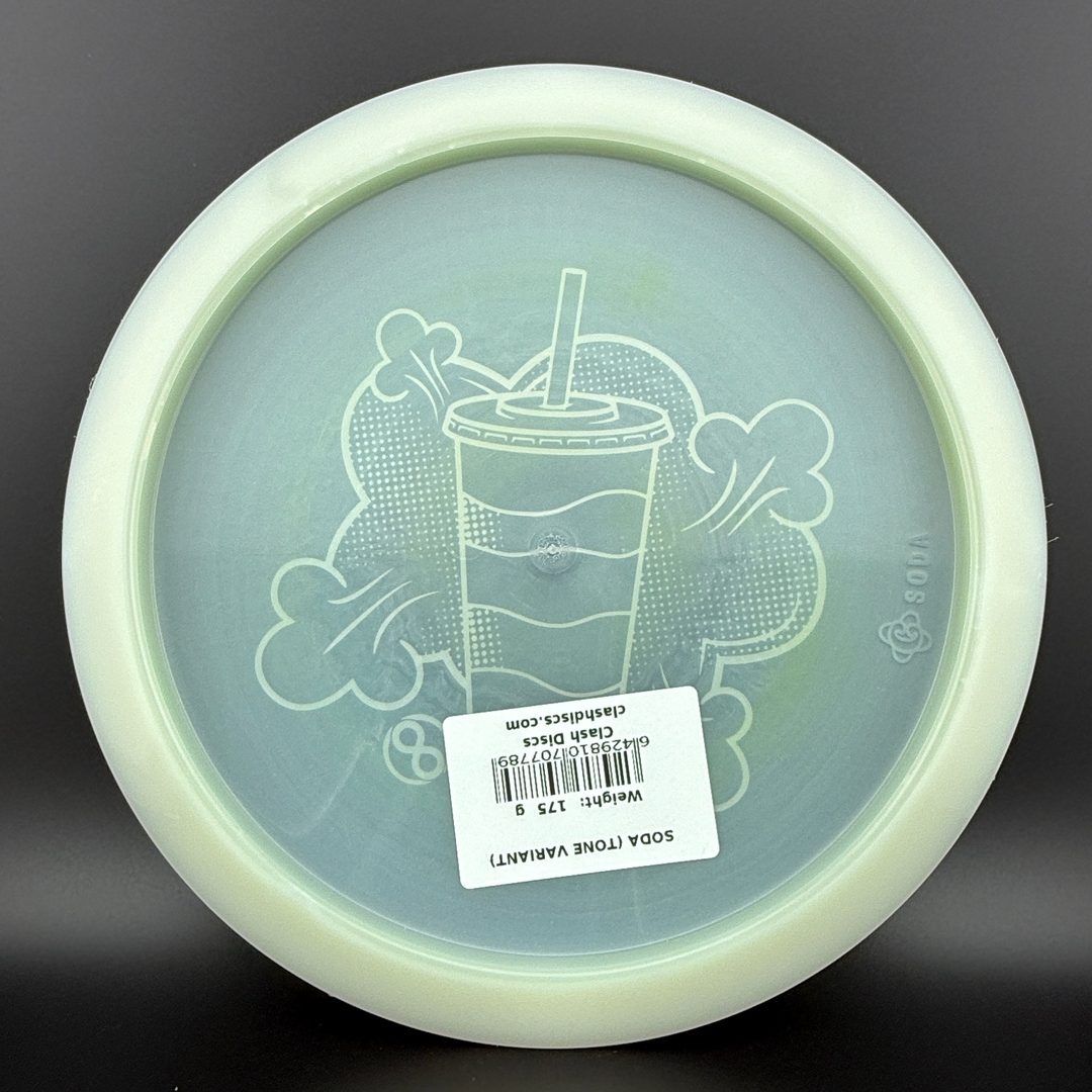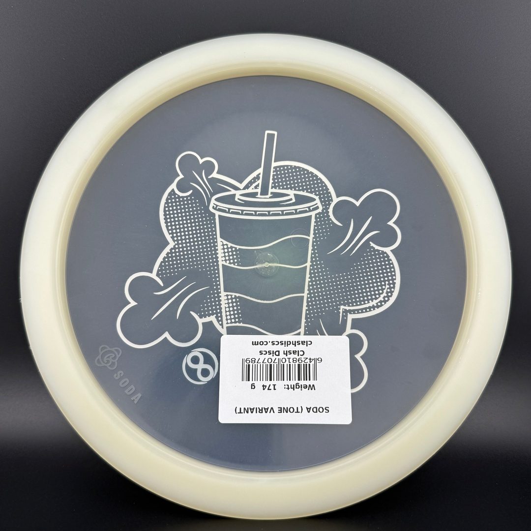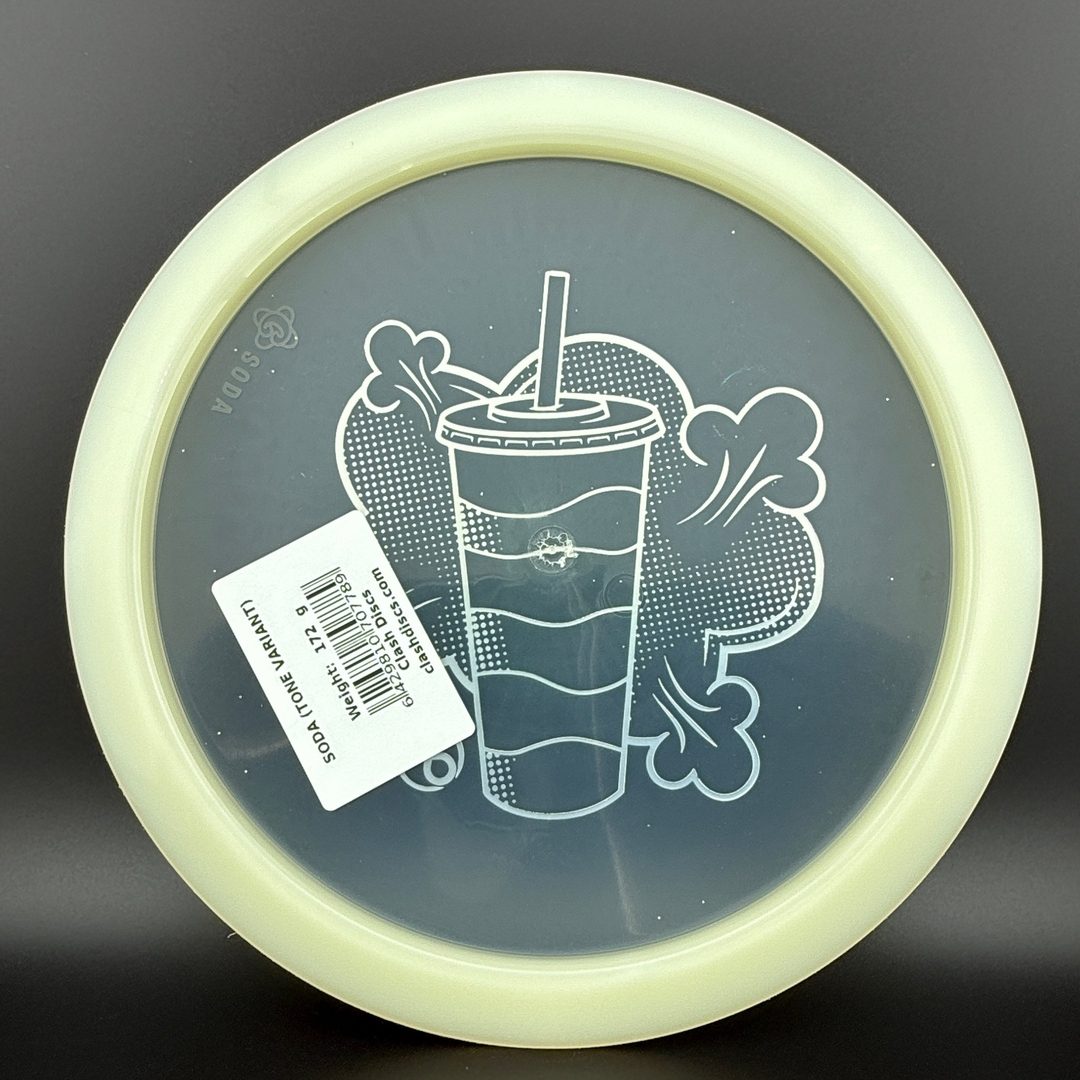 7/5/-2/2 *Limited run of First Run Tone Glow Soda's! First time to have a glow Clash disc with Tone plastic! Bottom rim glows. Excellent Grip and Feel to these! Storage wear possible with this plastic type.