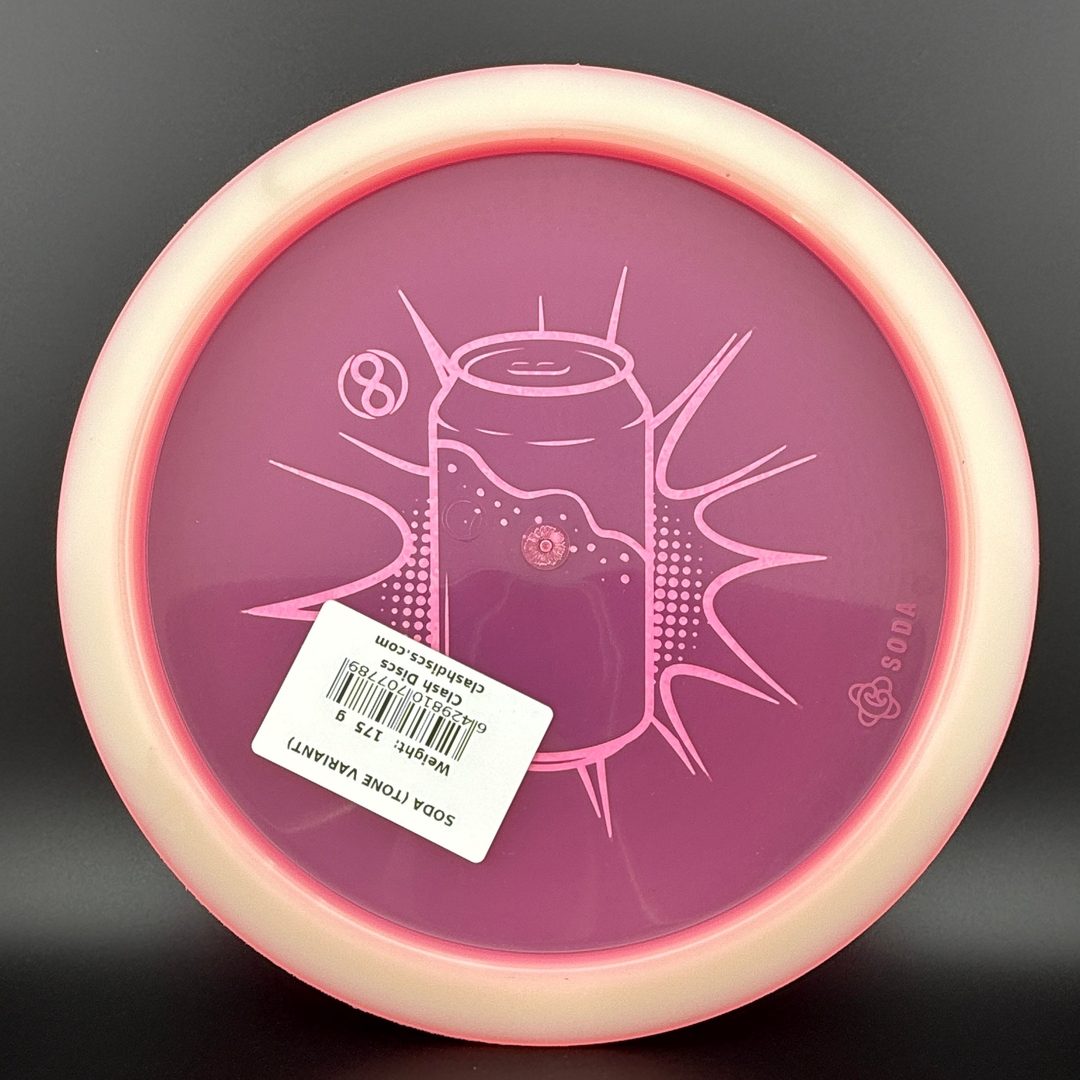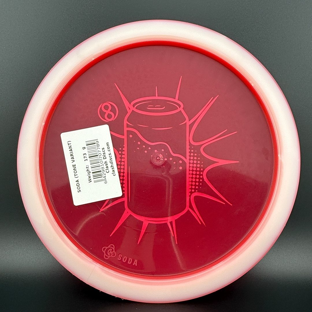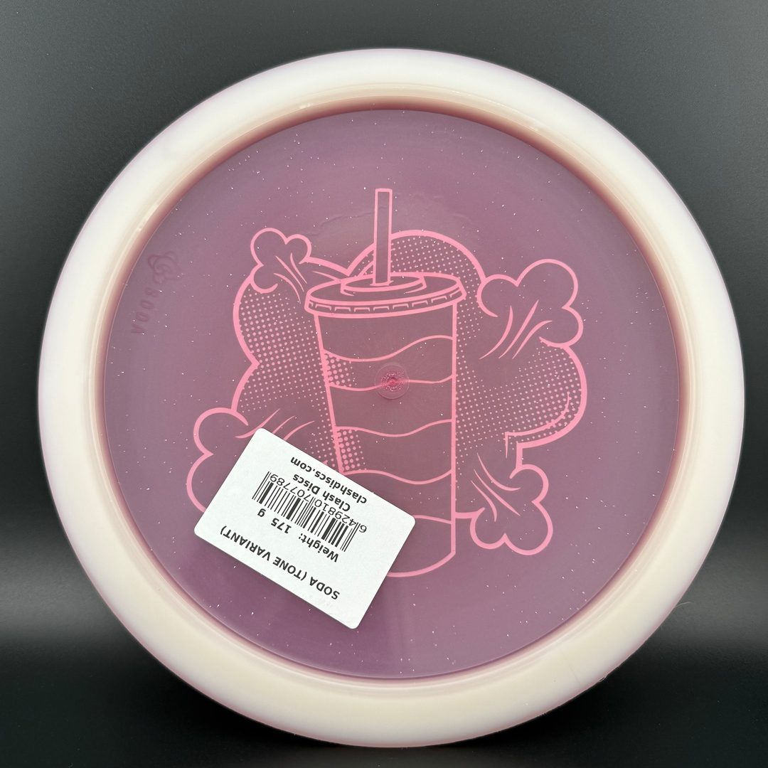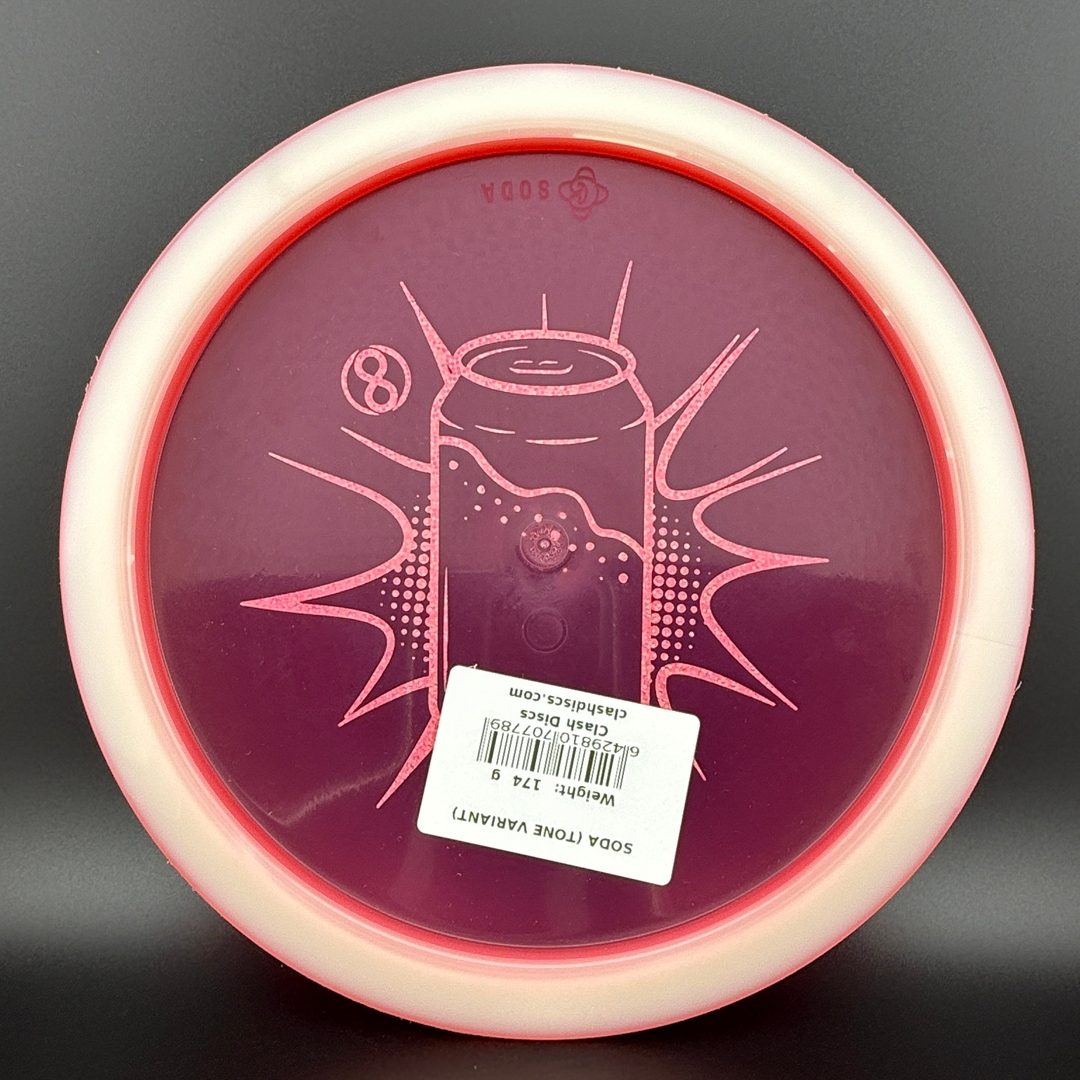 7/5/-2/2 *Limited run of First Run Tone Glow Soda's! First time to have a glow Clash disc with Tone plastic! Bottom rim glows. Excellent Grip and Feel to these! Storage wear possible with this plastic type.