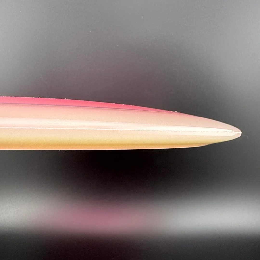 Clash Discs' Tone Glow plastic builds on the innovative TONE technology with the added feature of a glow-in-the-dark bottom rim. This design merges two premium plastic types for maximum performance: the bottom rim, now glow-capable, is crafted from a firmer material that resists twisting forces for consistent throws, while the top of the disc features a tacky, weather-resistant plastic blend for unmatched grip in any conditions. The TONE technology creates a visually stunning 3D effect and increases spin speed upon release. With the addition of the glow rim, this disc is ideal for nighttime rounds or low-light conditions, maintaining top-tier performance on every throw.