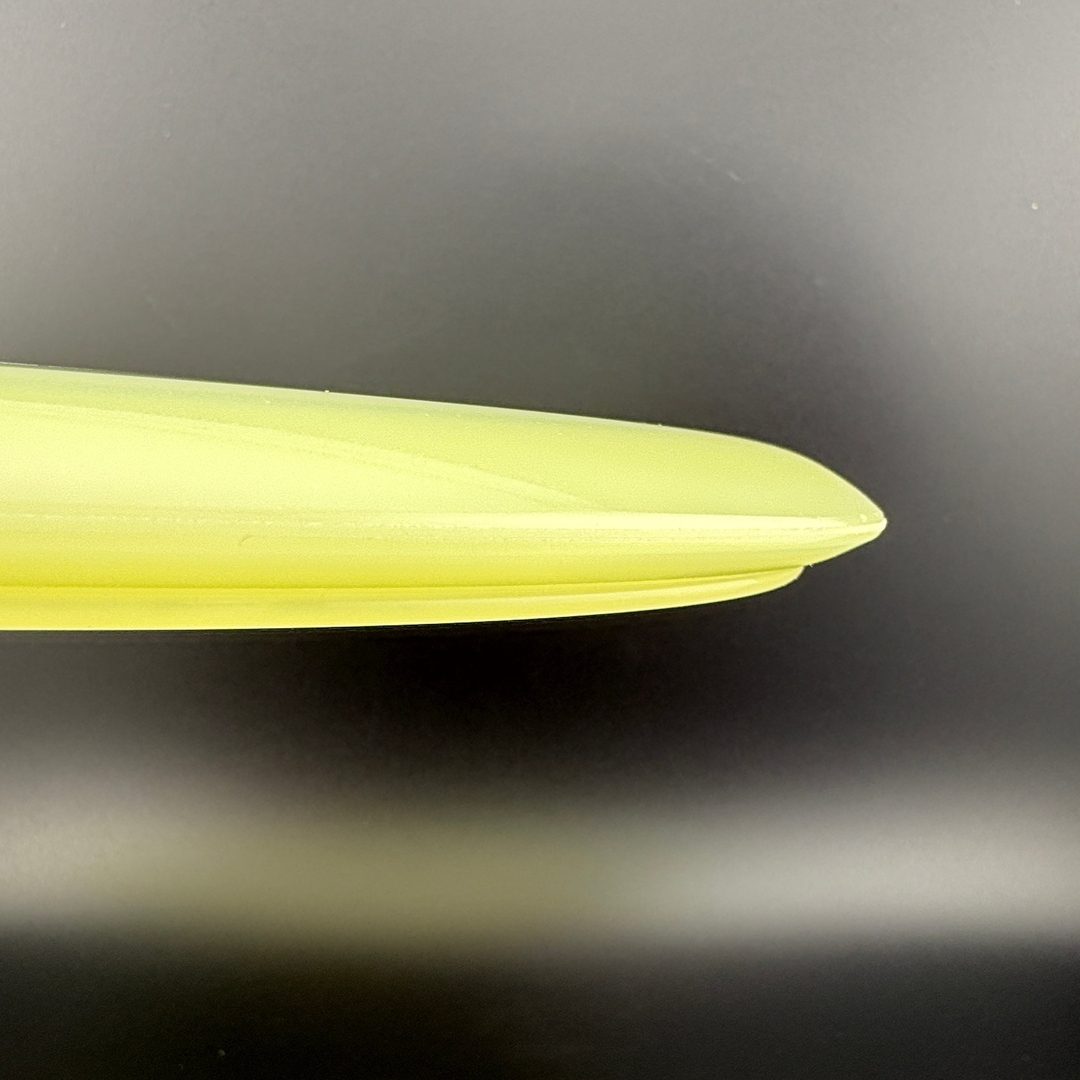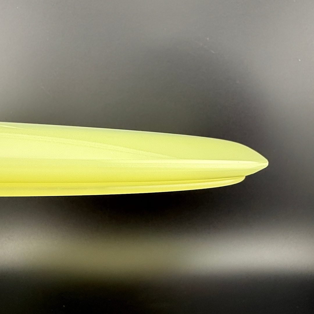 Proto Glow Champion is a specialized run of Innova's Champion plastic that includes a glow-in-the-dark additive for night play or low-light conditions. Compared to standard Glow Champion, the Proto Glow blend often features a slightly firmer feel and improved glow intensity, especially in early production runs. This plastic maintains the high durability and slick finish Champion is known for, while providing a bright, long-lasting glow when properly charged. Many players also find Proto Glow discs to fly a touch more overstable, making them reliable choices for consistent throws in any lighting condition.