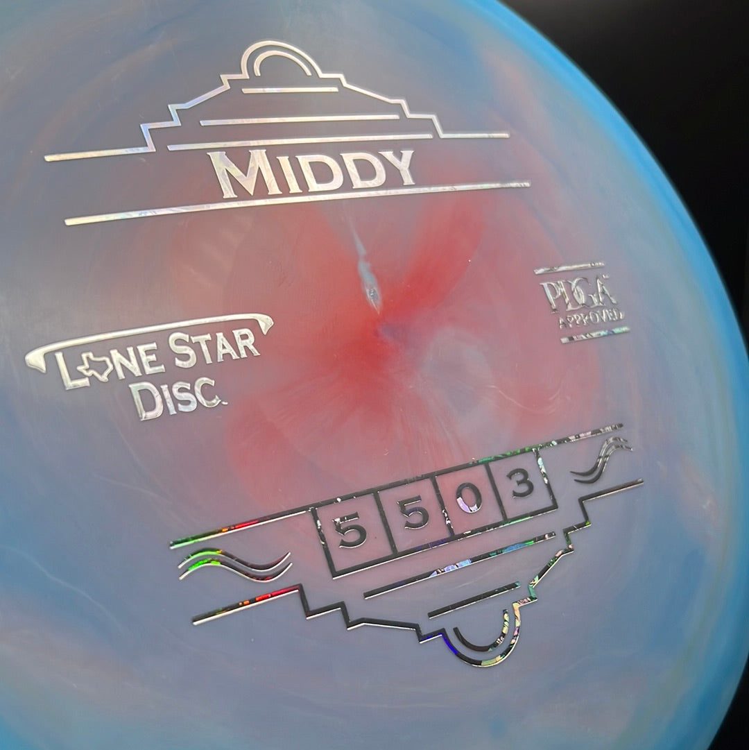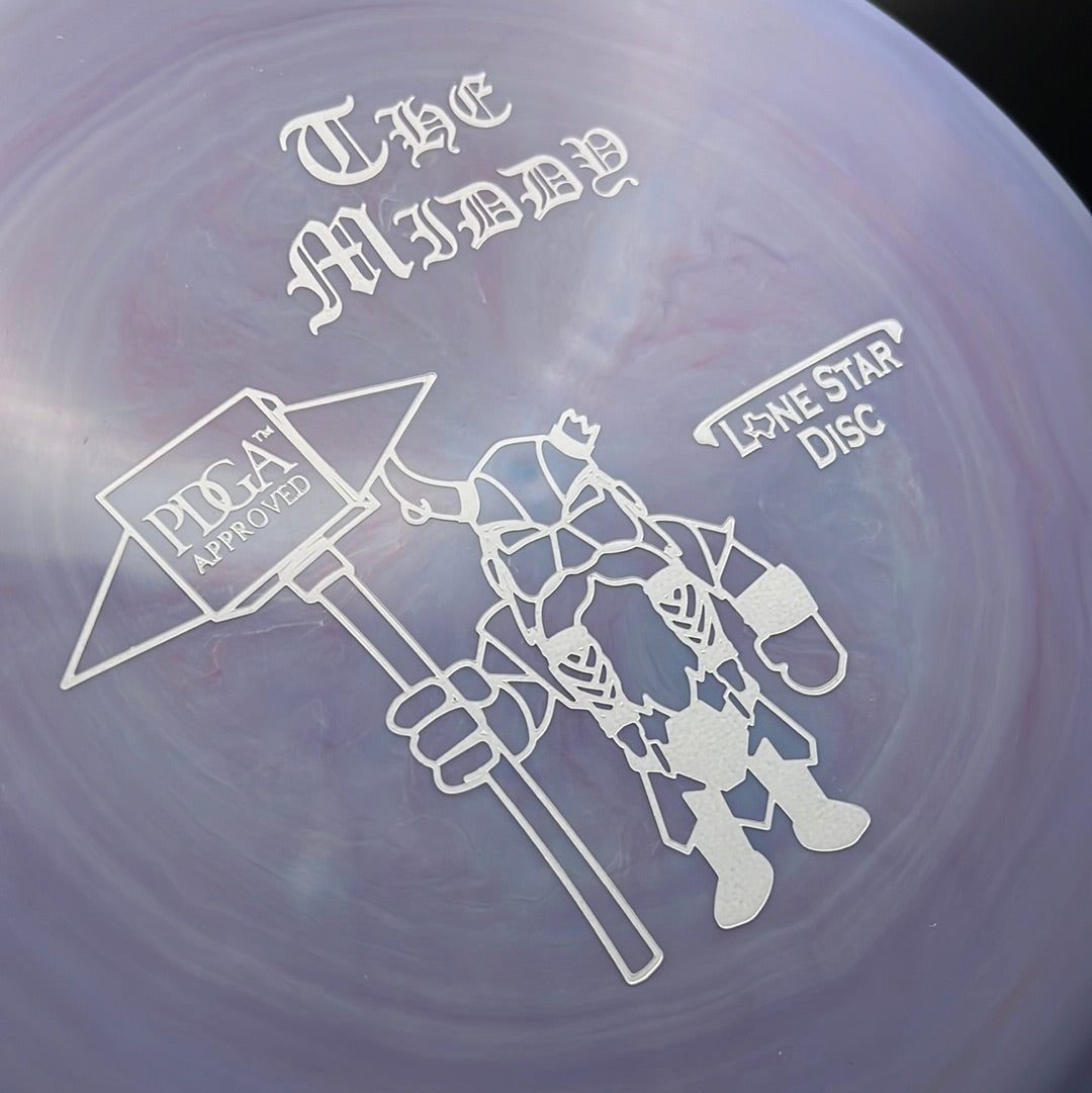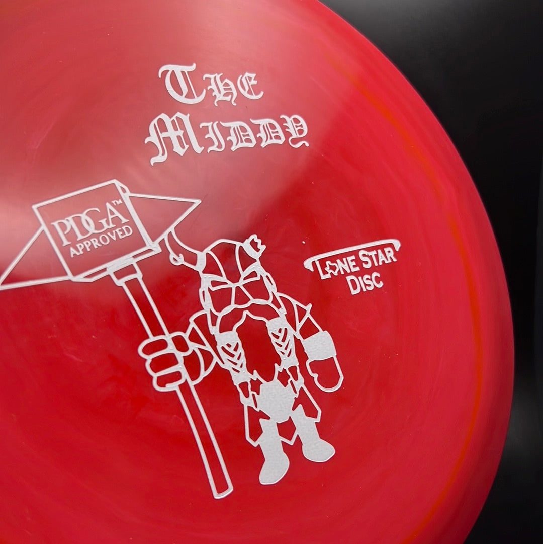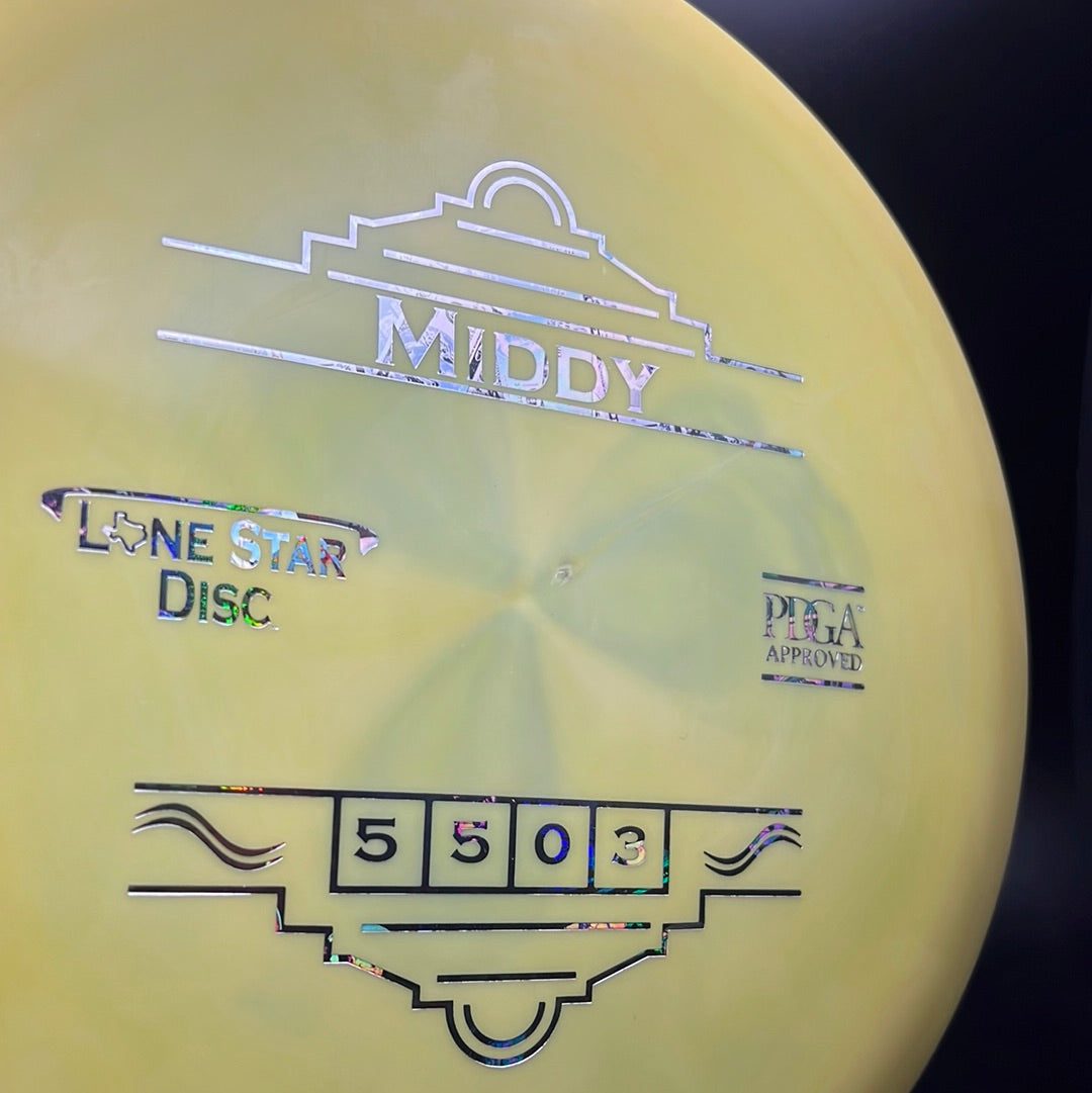 The Middy will be your new go-to midrange. It has a classic straight midrange flight with a nice bite at the end. It's the perfect, reliable mid from Lone Star Disc.