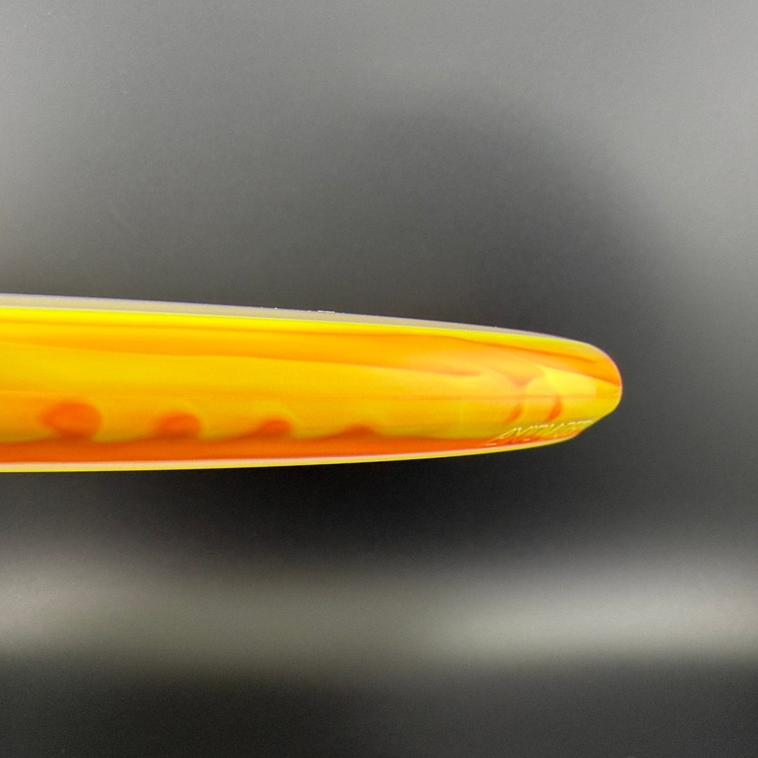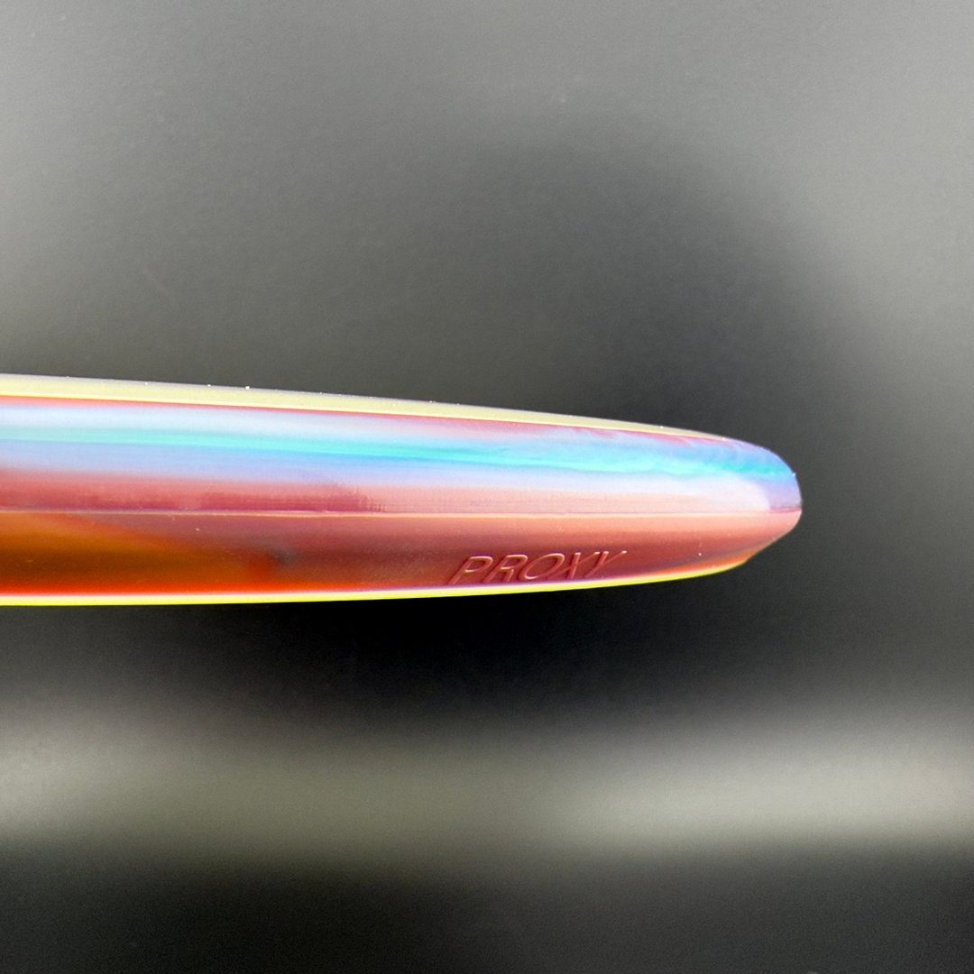 The Proxy shares the Envy mold’s core, lending the same low-profile feel and solid grip, along with a short wing width and wide flight plate diameter for superior glide. The Proxy sets itself apart from the Envy with a remarkably straight forward-fading finish. A bit of high-speed turn potential allows the Proxy’s lines to be manipulated over a broad range of power and helps less powerful throwers achieve straight putter drives.