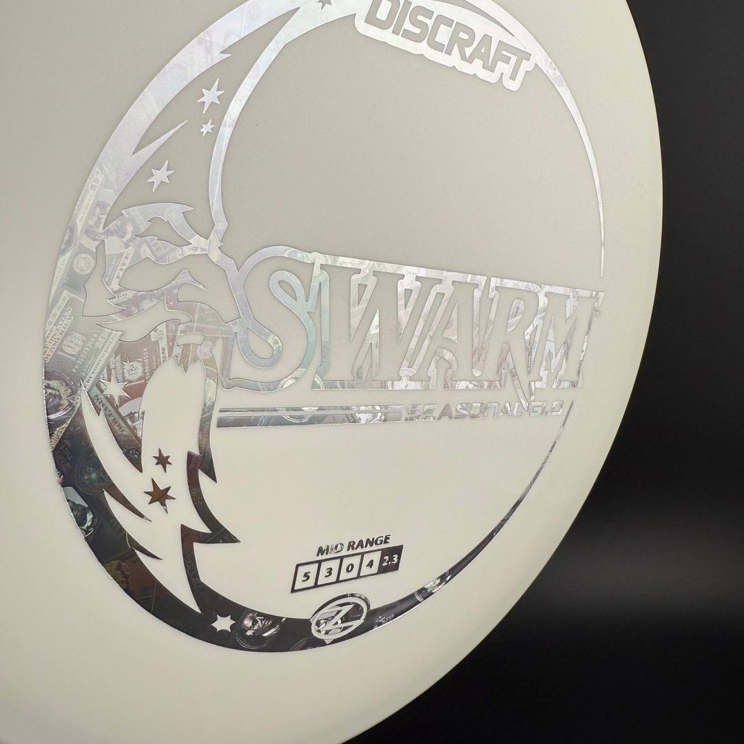 The Discraft Swarm is a flat top midrange similar to the Buzzz OS.  Shallow and flat makes us think this could be similar to the old MD4 mold - overstable midrange that can be forehand or backhanded with accuracy and speed.