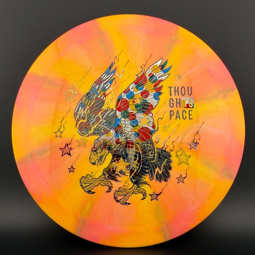 The Omen is an overstable 9-speed driver from Thought Space Athletics. If you need a solid, hard fade when throwing side-arm, backhand, or overhead, you can always count on the Omen. It is an excellent overstable utility driver and a pre-level, high-performance disc for power throwers.