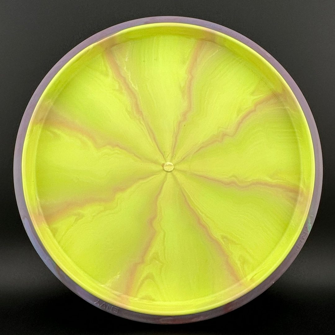The Envy with flight numbers 3 / 3 / -1 / 2 is a versatile putt-and-approach disc that sits in the lower end of the flight spectrum, making it easy to control and reliable for shorter drives and upshots. Its speed 3 and glide 3 provide a steady, predictable glide, while the slight negative turn (-1) gives it a gentle rightward motion (for RHBH), and a 2 fade ensures a dependable finish. It’s popular for straight, controlled shots and dependable putts.