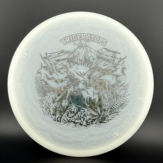 Dino Discs is a boutique disc brand that offers ultra lightweight discs. Discs in the 100 - 140 gram range work great for children who want to join their friends and family on the course. They are also great options for senior players or anybody who has a slow arm speed but wants to throw a variety of different disc types. Dino Discs are made in a collaborative effort with multiple manufacturers. They include some molds from ABC Discs and some molds from Gateway, with fun, colorful plastic blends courtesy of Zing and Gateway.