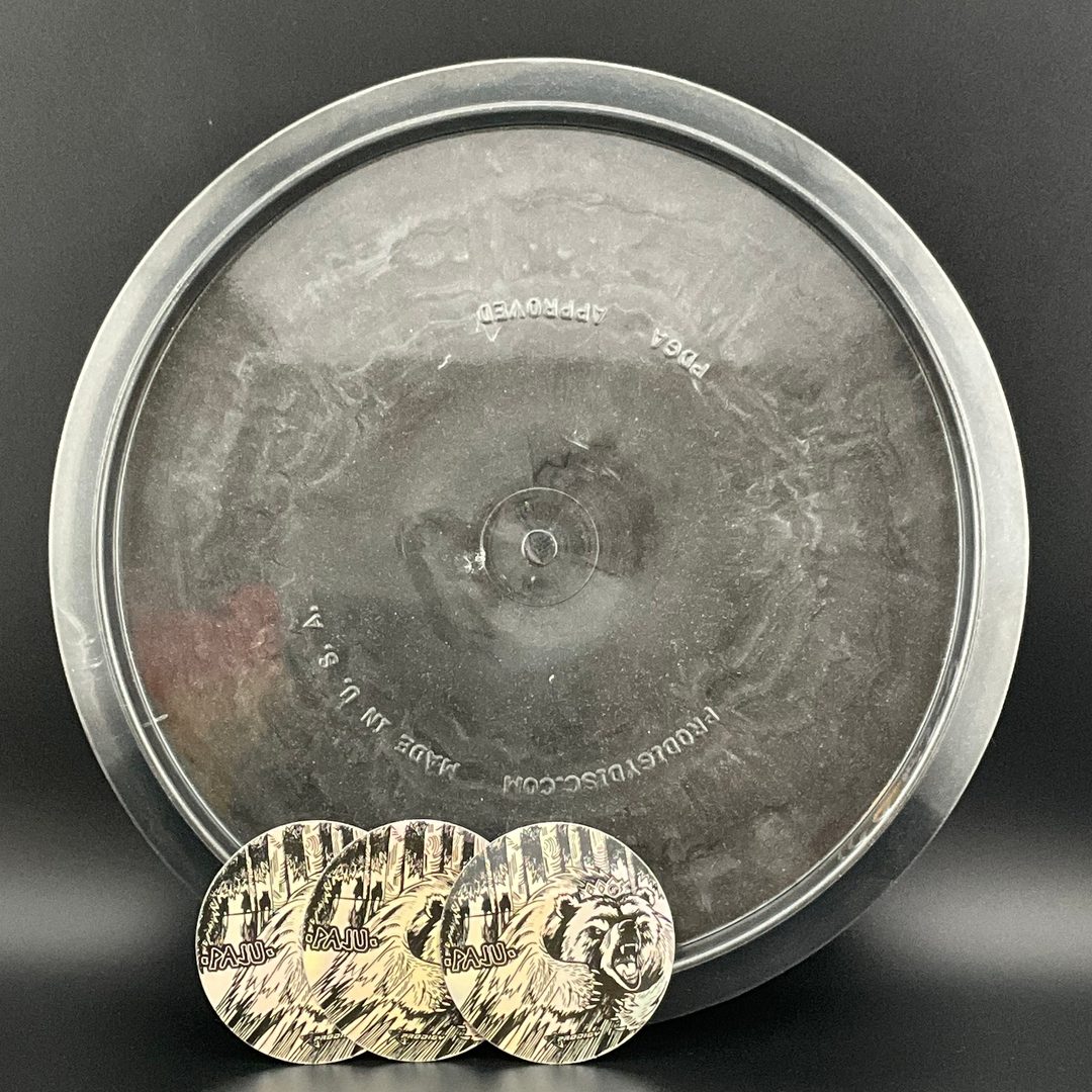 There has been 2000 of the Final Otso’s made in five different stamp colors. All discs are in black 500 plastic with glimmer. There are 200 pcs of Gold, 300 pcs of Silver, 400 pcs of Purple, 500 pcs of Red and 600 pcs of Green stamps.