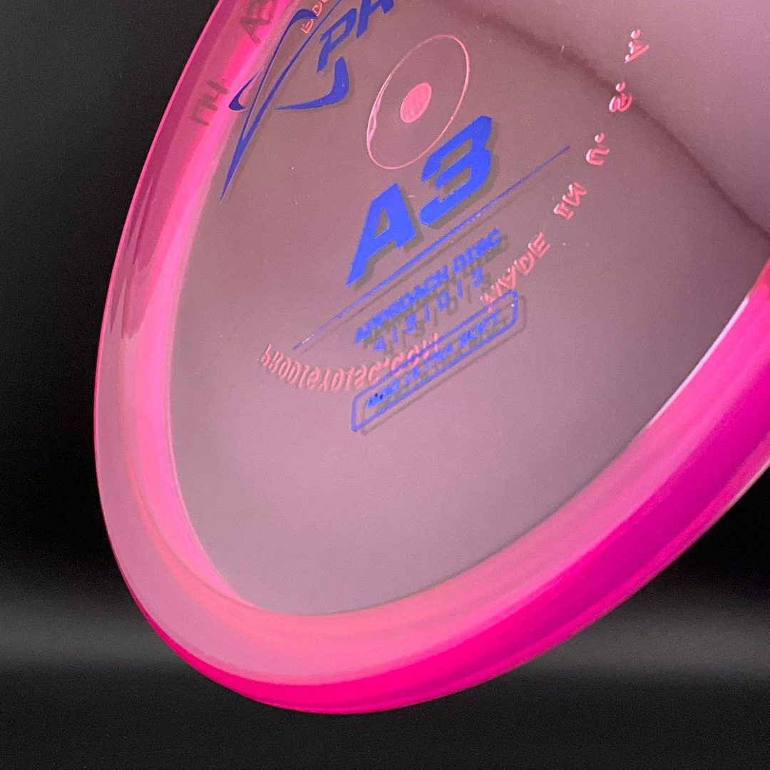 The A3 is an overstable utility disc that fills the gap between midranges and putters. The A3 is perfect for strong to above average throwers who want to avoid the possibility of their shot turning over. The disc is consistent and reliable in all wind conditions and perfect for short, trick shots as well as high wind approach shots. The A3, like the A1 is beaded.