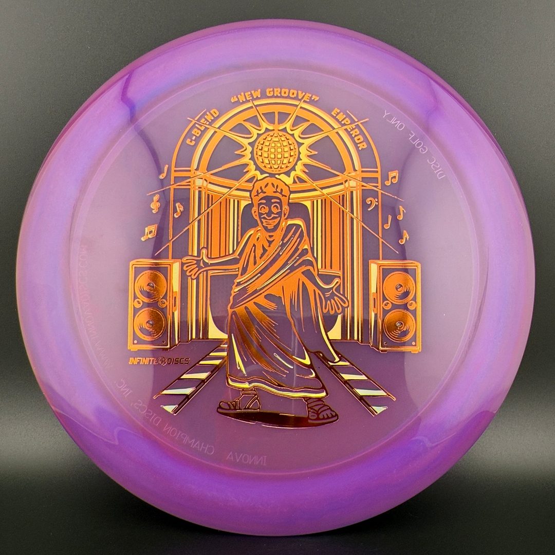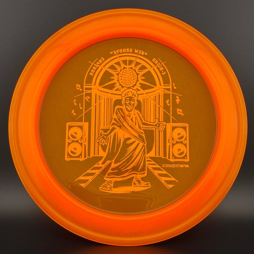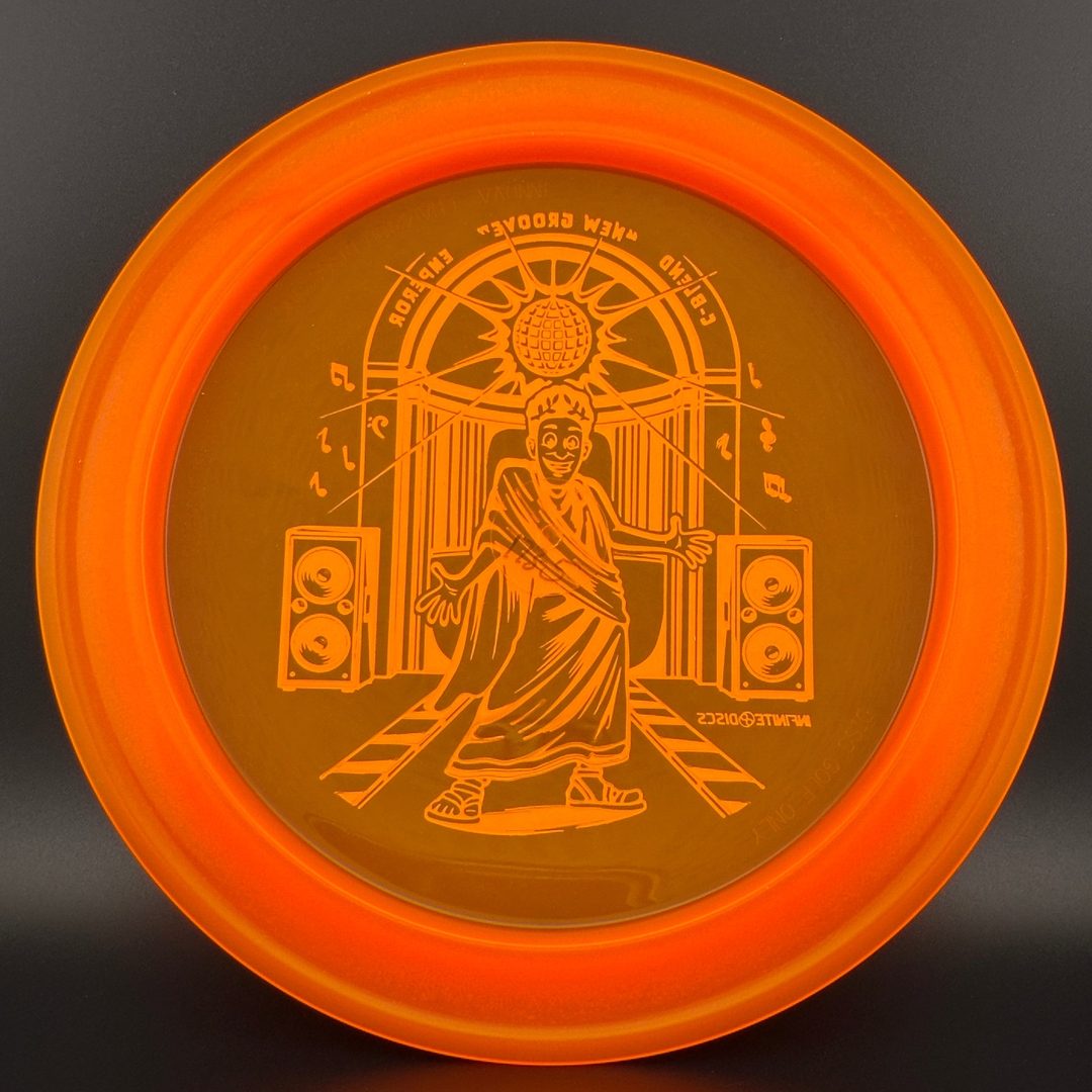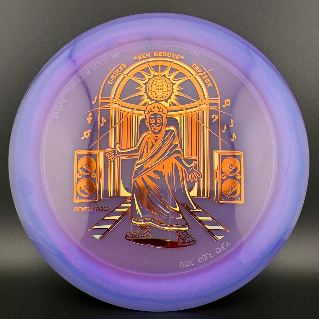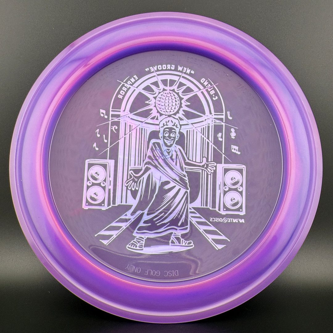 Per Infinite "The "New Groove" Emperor showcases an advanced, technology-driven iteration of the renowned Emperor distance driver. By integrating a meticulously engineered groove along the bottom of the rim, aerodynamics experts have optimized the disc's flight characteristics, resulting in significant improvements across multiple performance metrics. Help the Emperor get its groove back by picking up a New Groove Emperor while you can!"