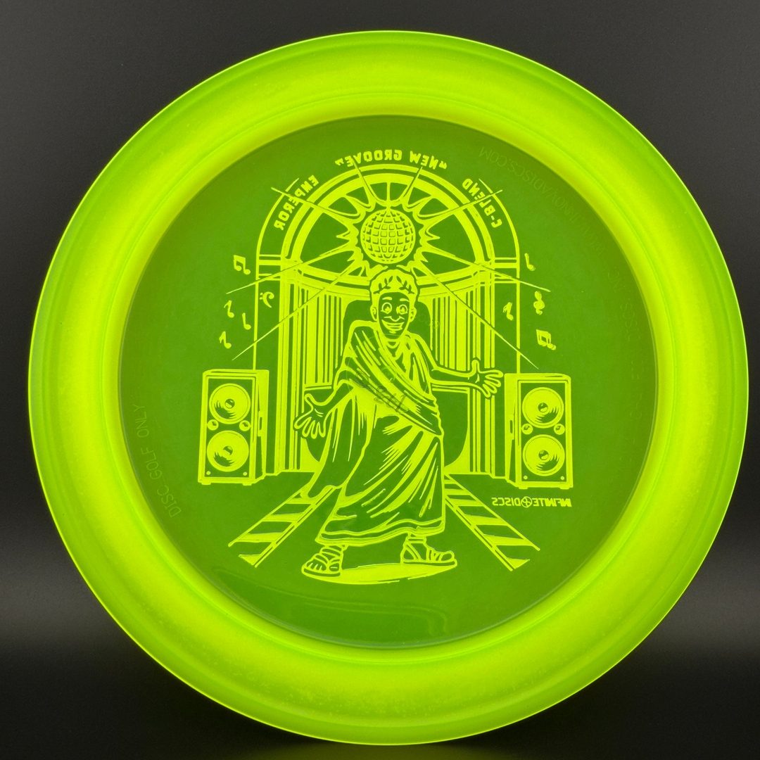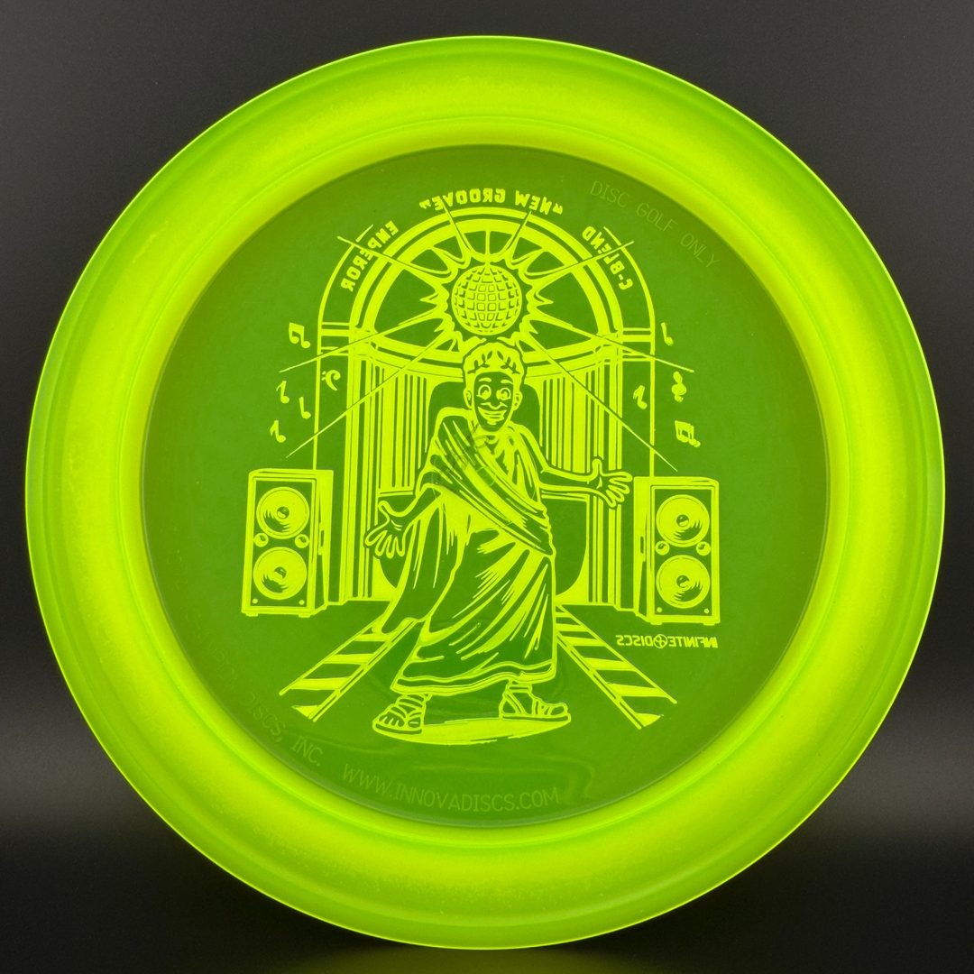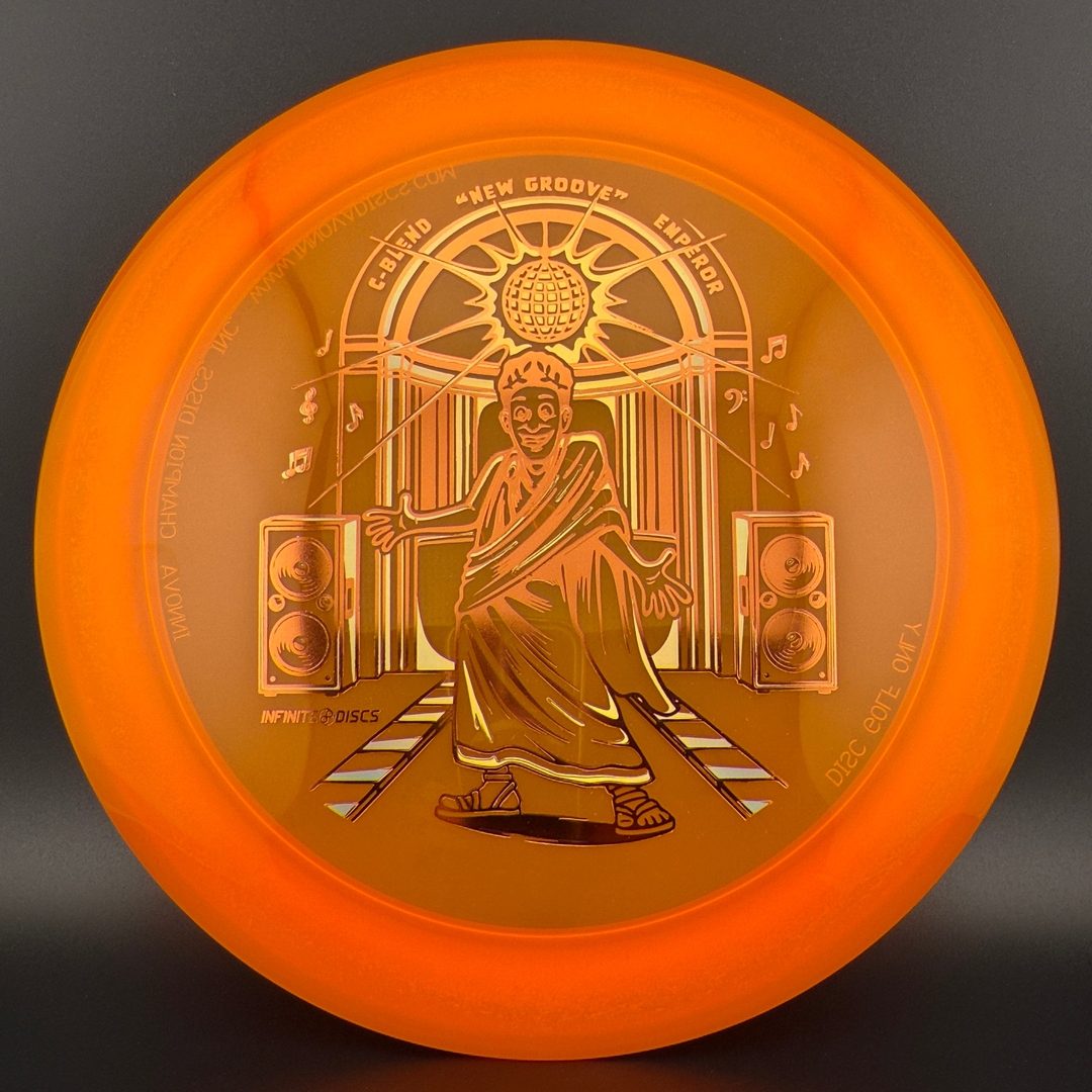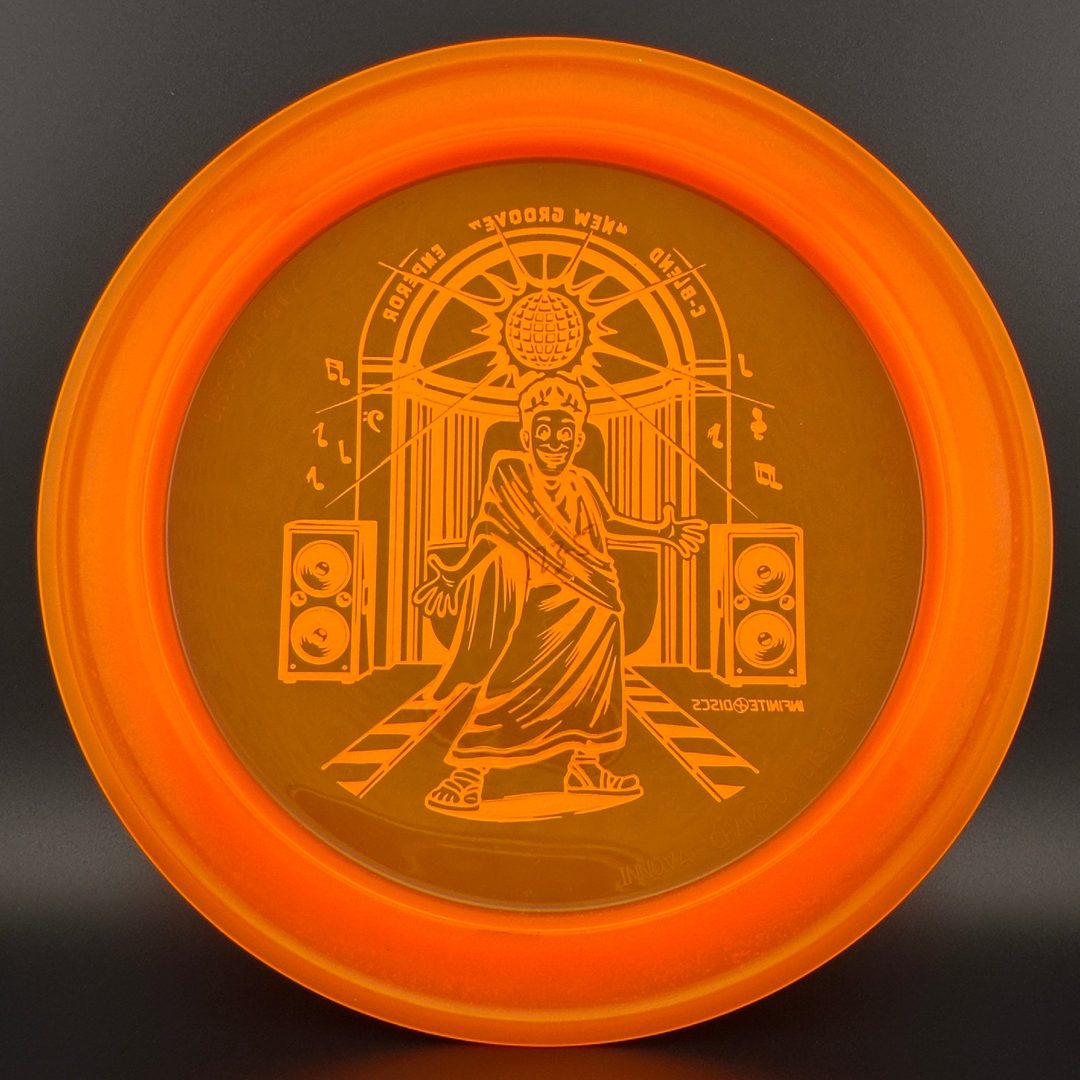 Per Infinite "The "New Groove" Emperor showcases an advanced, technology-driven iteration of the renowned Emperor distance driver. By integrating a meticulously engineered groove along the bottom of the rim, aerodynamics experts have optimized the disc's flight characteristics, resulting in significant improvements across multiple performance metrics. Help the Emperor get its groove back by picking up a New Groove Emperor while you can!"