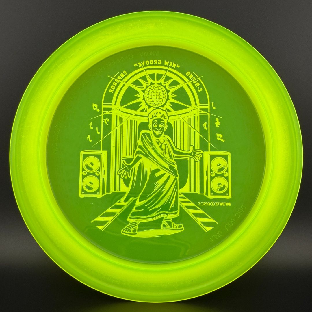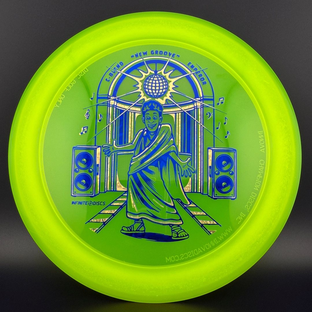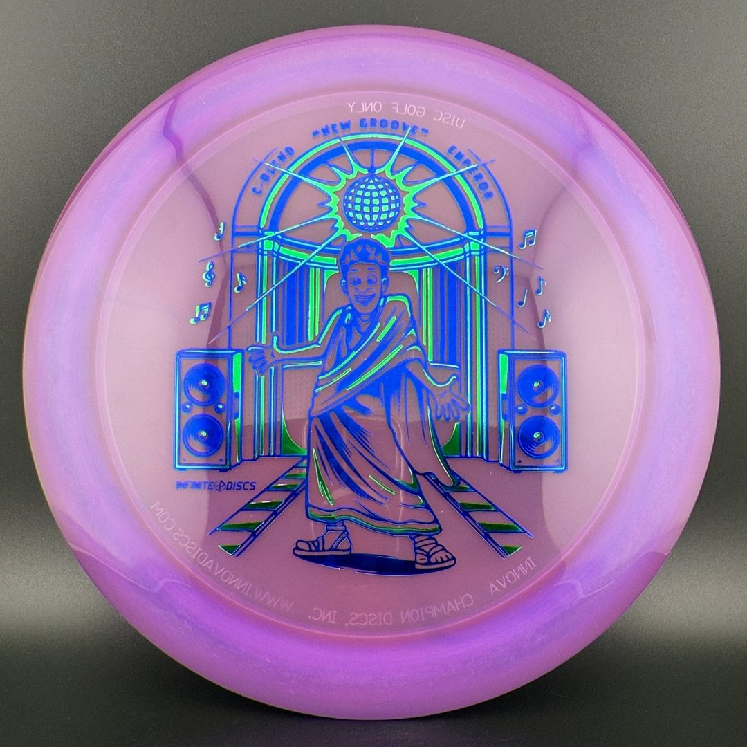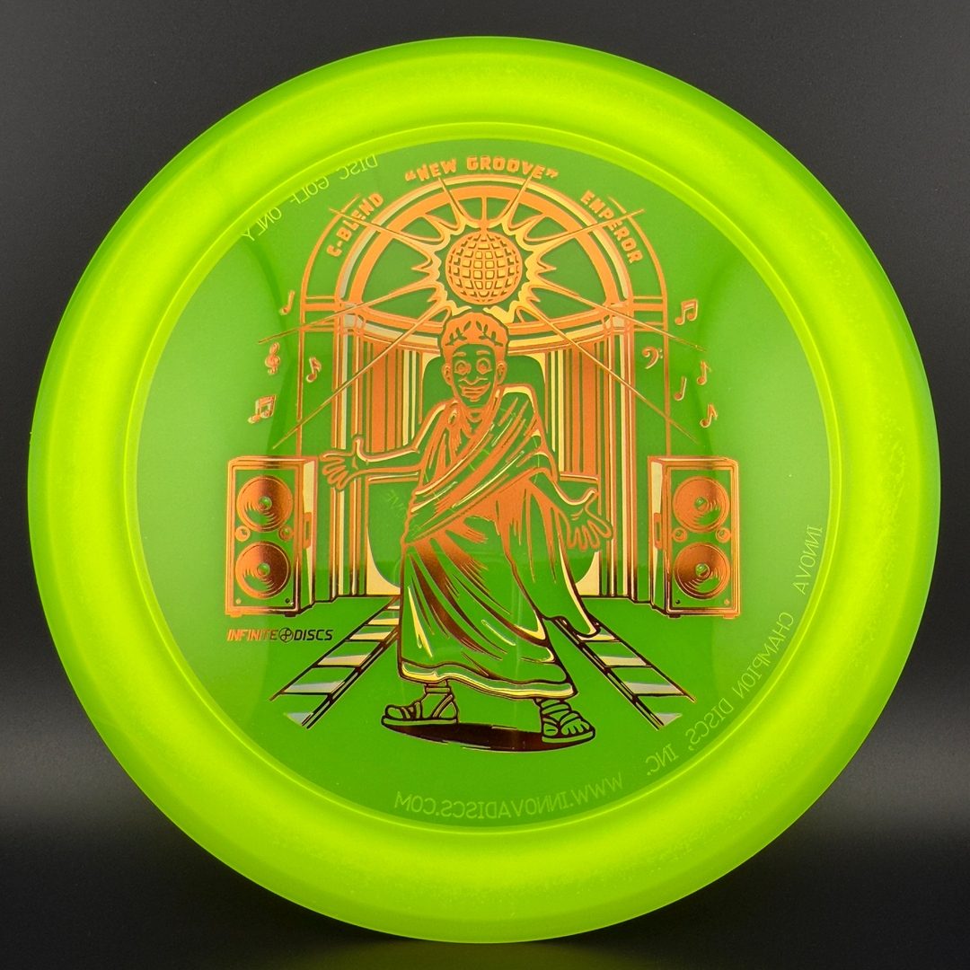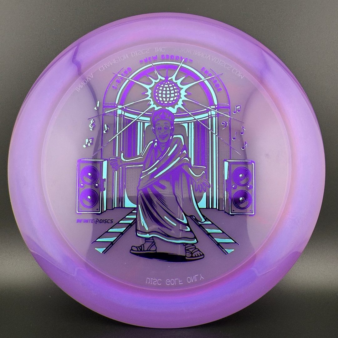 Per Infinite "The "New Groove" Emperor showcases an advanced, technology-driven iteration of the renowned Emperor distance driver. By integrating a meticulously engineered groove along the bottom of the rim, aerodynamics experts have optimized the disc's flight characteristics, resulting in significant improvements across multiple performance metrics. Help the Emperor get its groove back by picking up a New Groove Emperor while you can!"