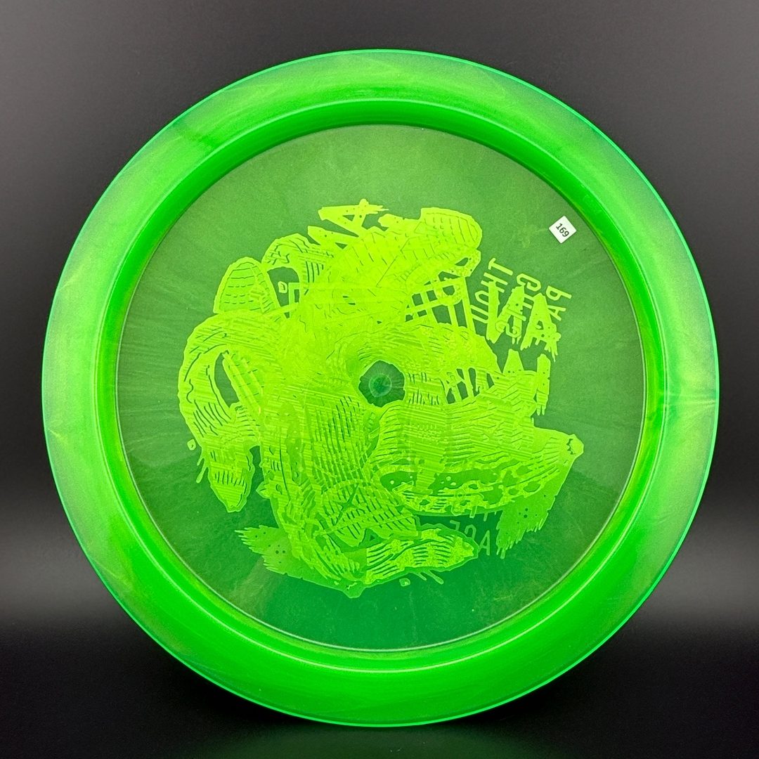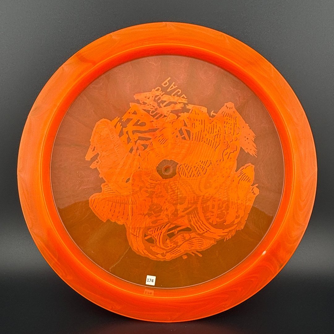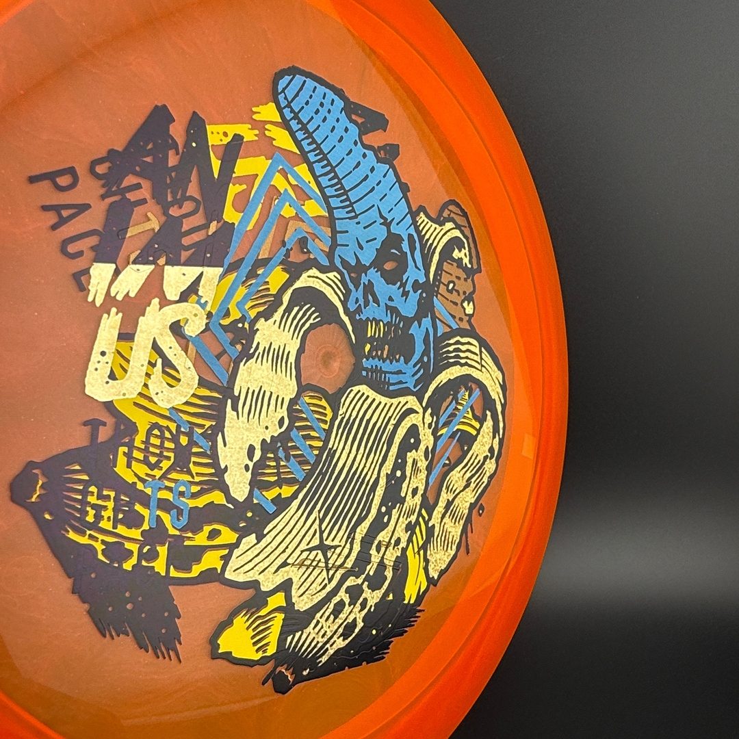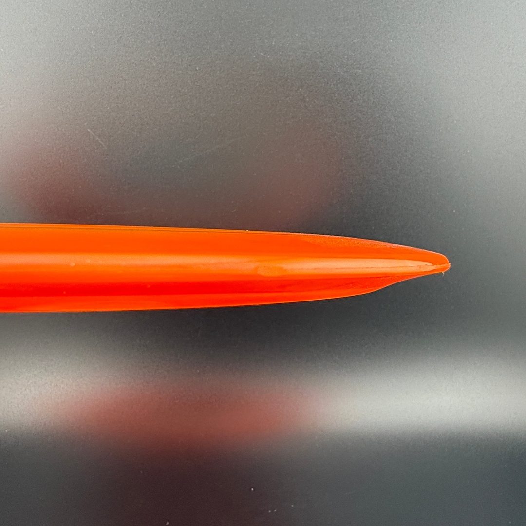 Ethos plastic from Thought Space Athletics is a premium blend and their most durable. It's see through and also the most overstable right out of the box. Plan on keeping this disc around for a long time because it will take a long time to break in and become flippy. Ethos is perfect for the Bananimus because you're going to hit obstacles at high speed and you want a disc that will retain its flight characteristics for a number of years.