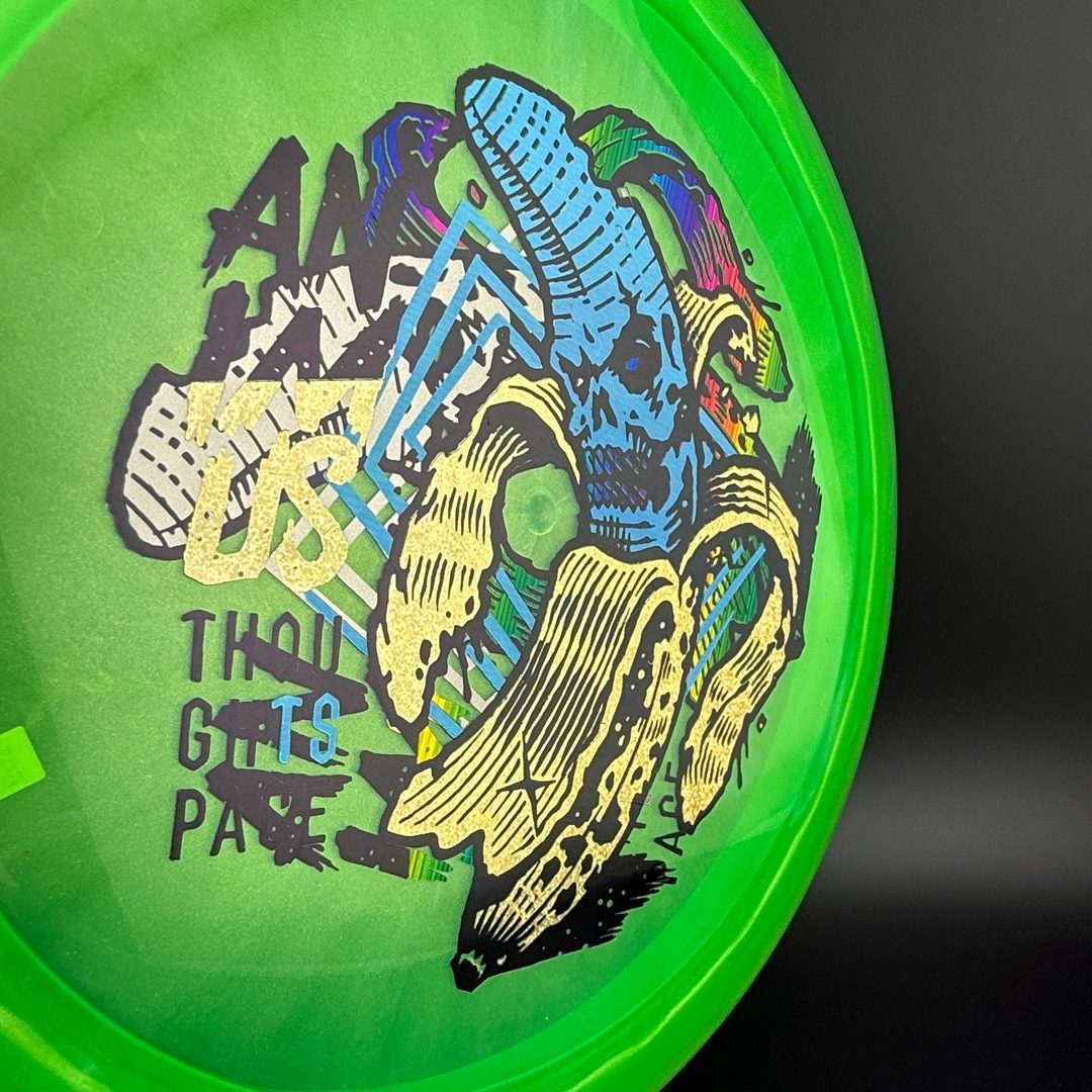 The Ethos Animus Bananimus from Thought Space Athletics is a stable to overstable distance driver that's perfect for an intermediate or advanced players disc golf game. It is built for those longer shots and can be your reliable go to drive. Who doesn't want to super smash a banana stamp as far as they can?