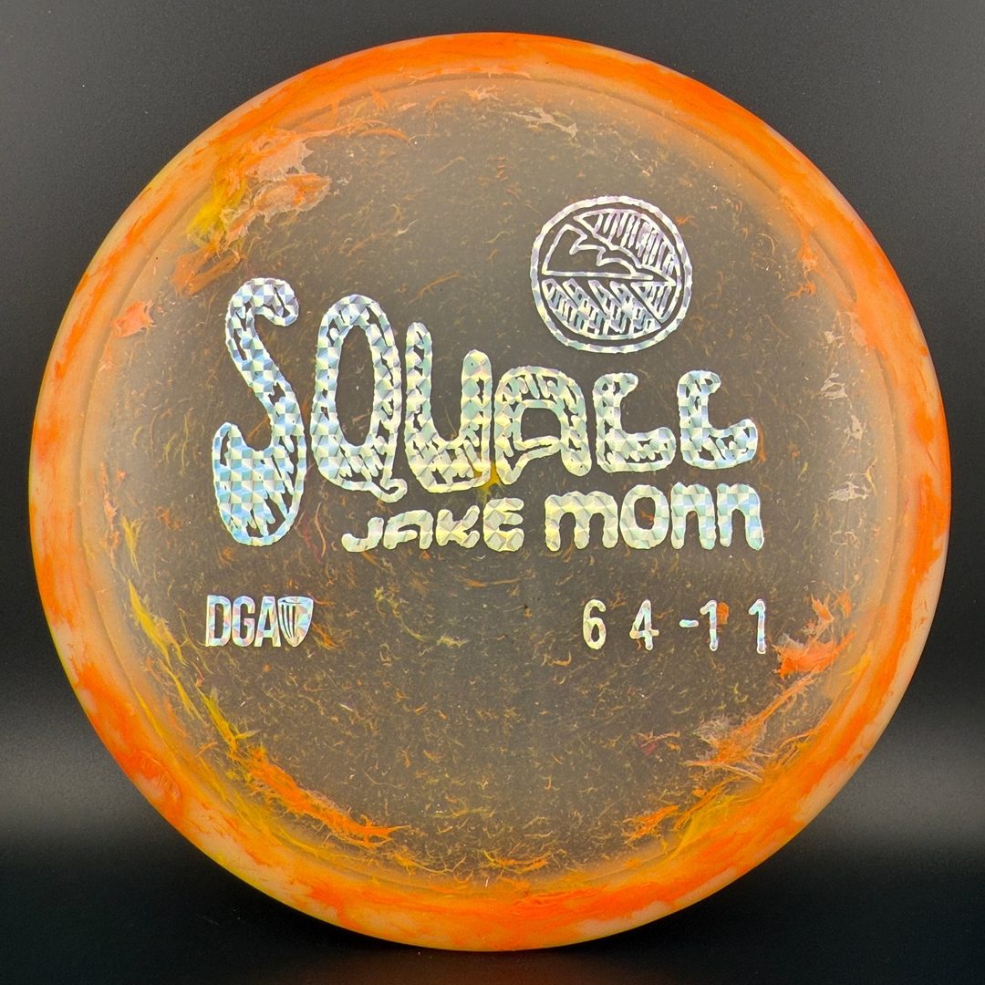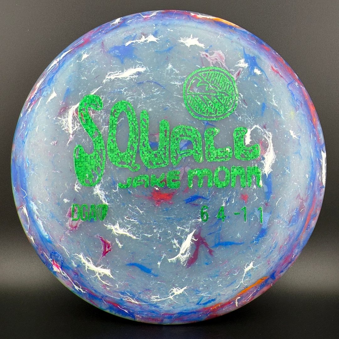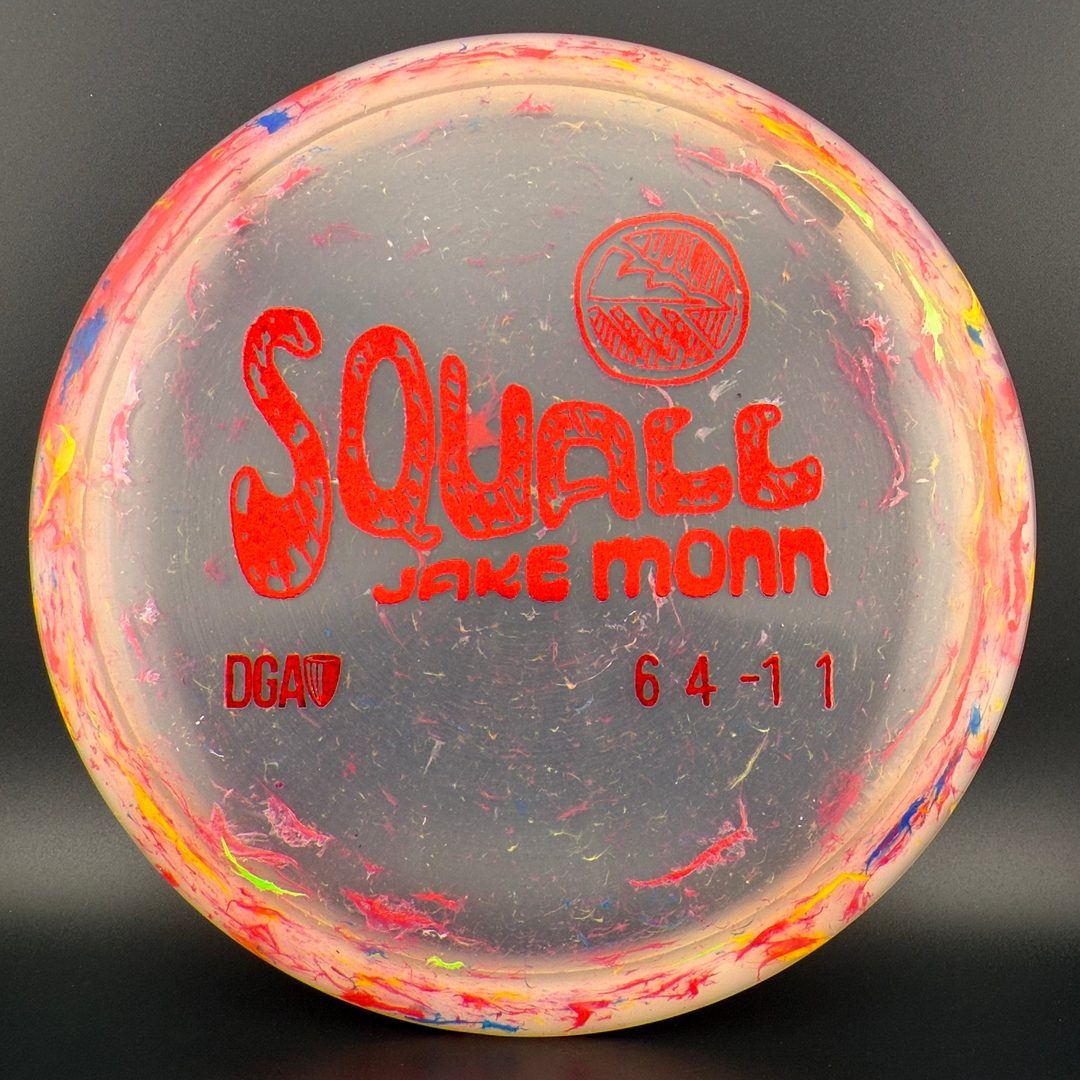 For a solid throw with a bit of personality to its flight, the Squall by DGA fits the bill. This disc has a smooth flight with a hint of turn and slightly stronger fade before it sits down. The disc has an average to thin sized rim, and has a great feel for making a nice midrange or approach shot.