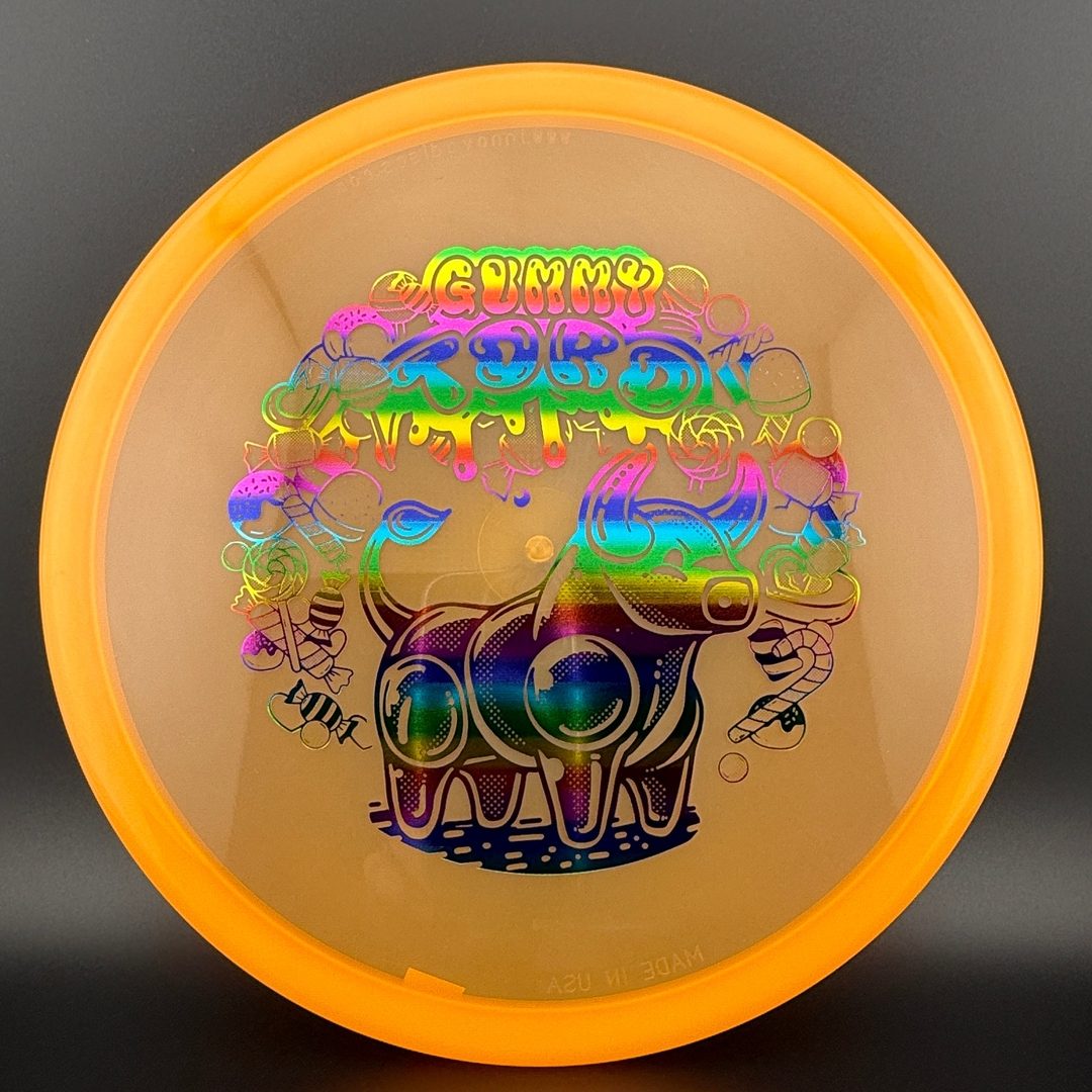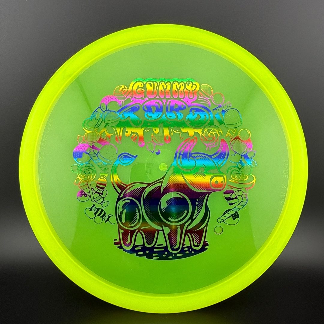 Innova Gummy Champion is a unique flexible Champion Plastic blend that has only been available for tournament fundraisers. This plastic has the look of regular Champion, but a completely different feel that provides for a better grip and increased durability.