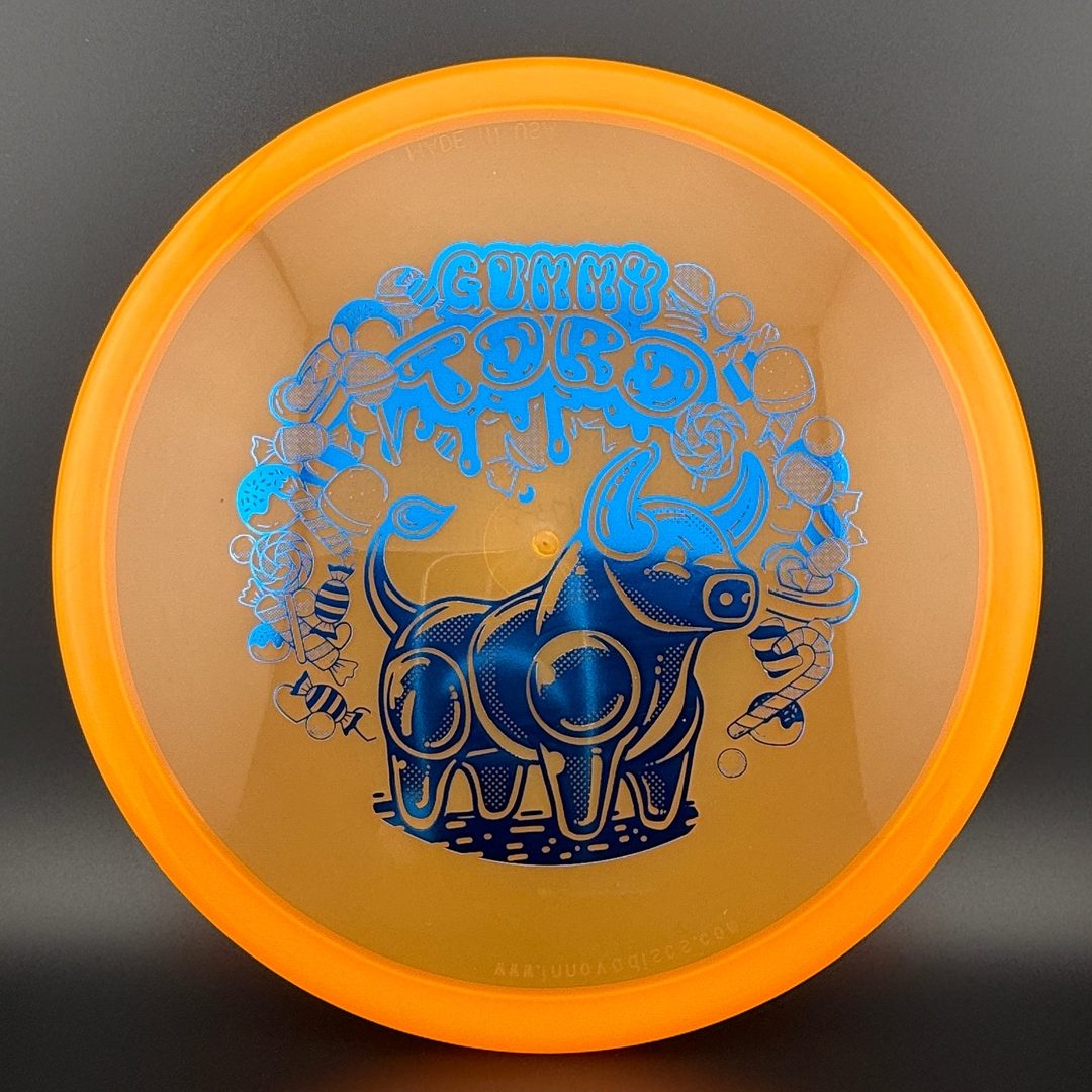 Calvin Heimburg was the inspiration behind the Toro. He wanted a flat-top, overstable, mid-range disc that he could have confidence in—something that could handle his level of forehand torque. After several variations, the Toro was created and named by Calvin. —Dave Dunipace