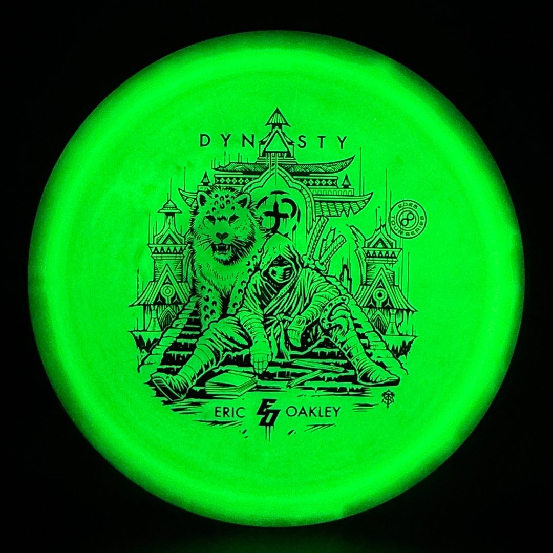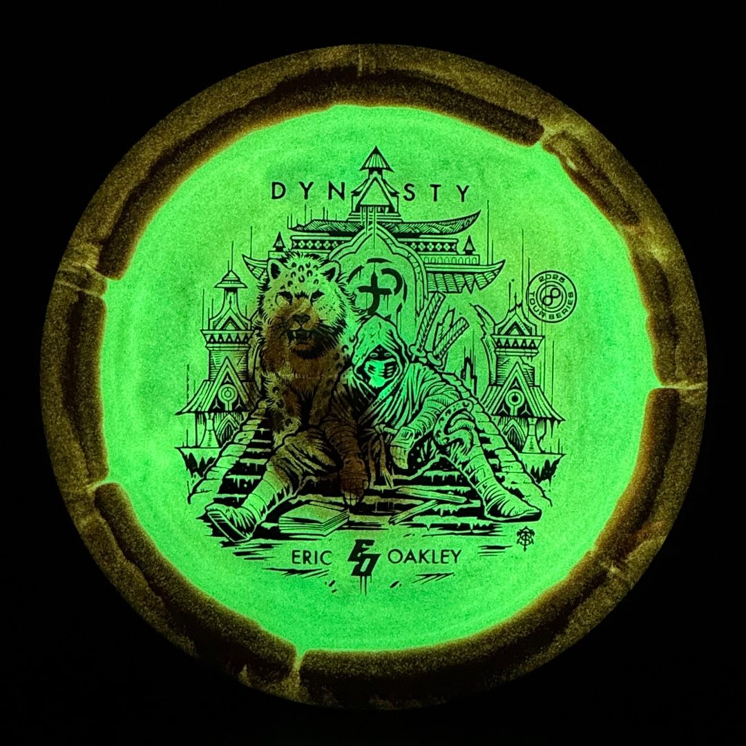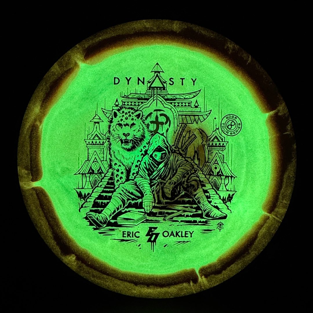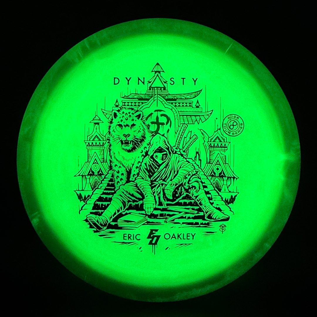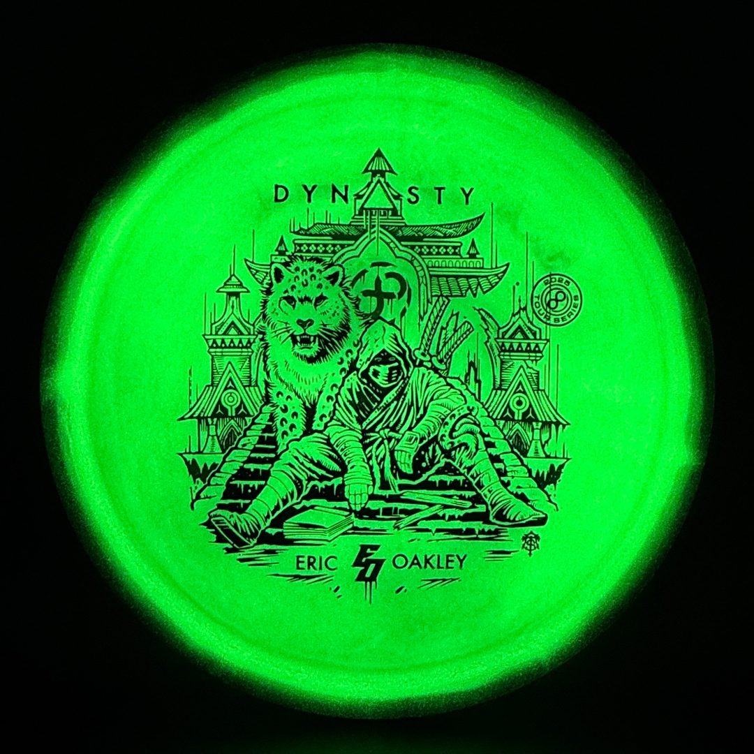 9/5/-1/2      *The first run of Halo C-Blend Glow Dynasties for Eric Oakley's 2025 Tour Series!   *These have a little bit of domeyness compared to past dynasties.  *Staff favorite.   *Storage wear is possible with this type of plastic. *Minor swirl differences possible, multiple available.