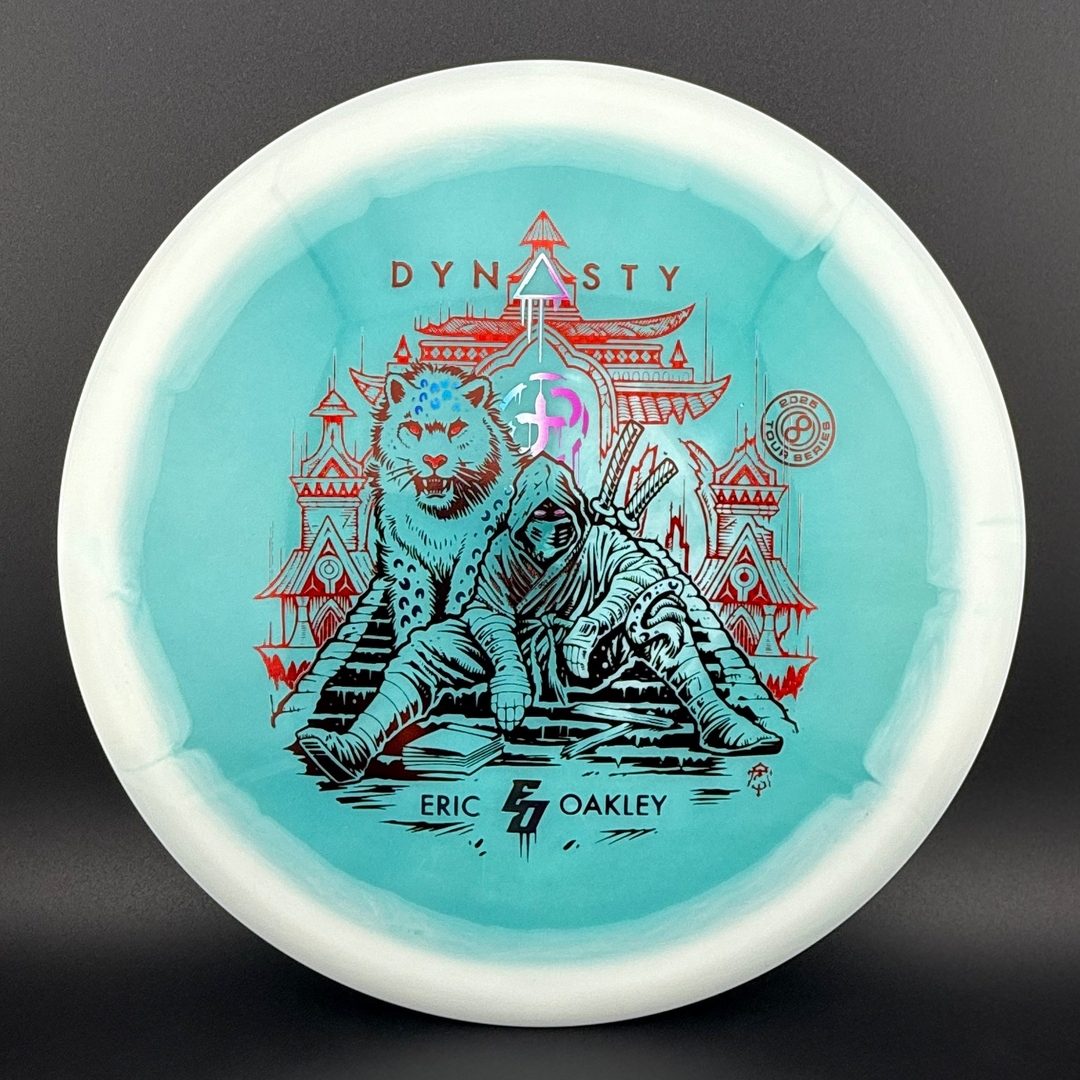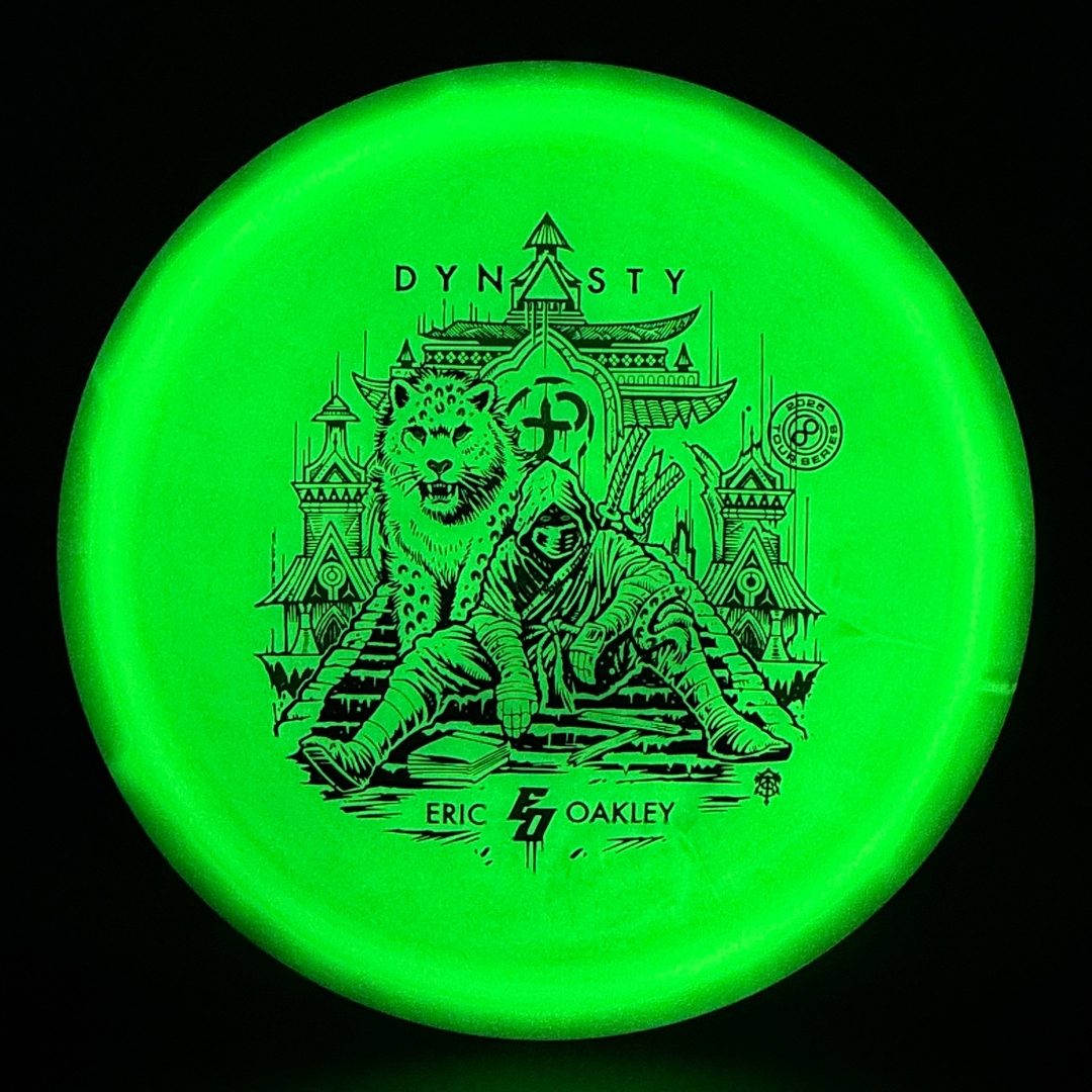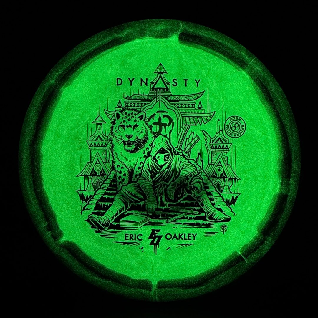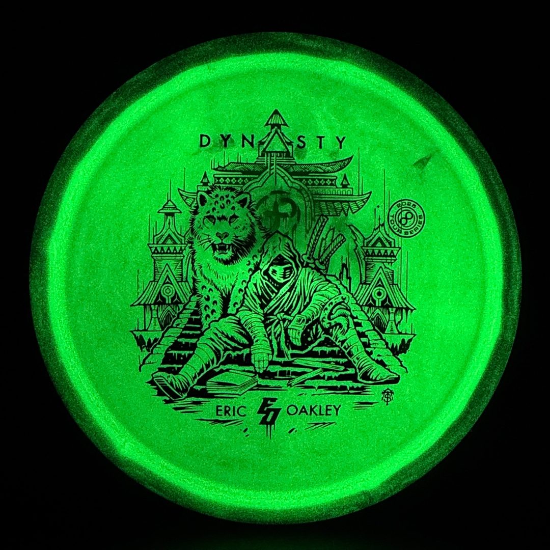 9/5/-1/2      *The first run of Halo C-Blend Glow Dynasties for Eric Oakley's 2025 Tour Series!   *These have a little bit of domeyness compared to past dynasties.  *Staff favorite.   *Storage wear is possible with this type of plastic. *Minor swirl differences possible, multiple available.