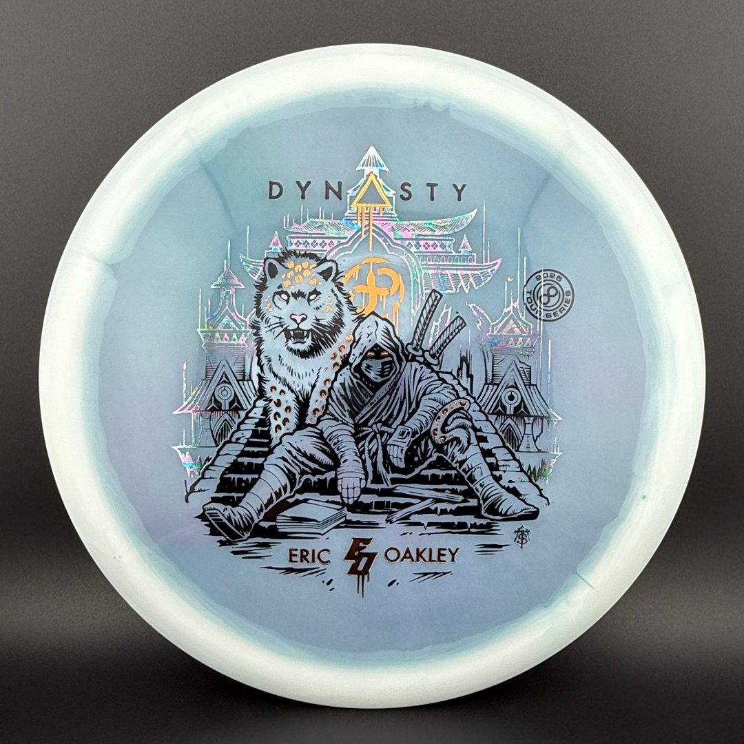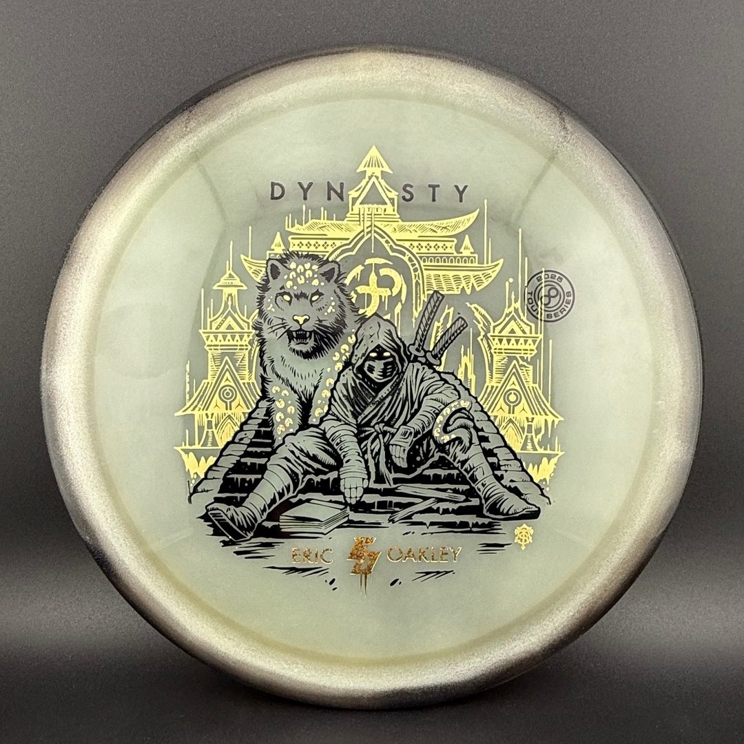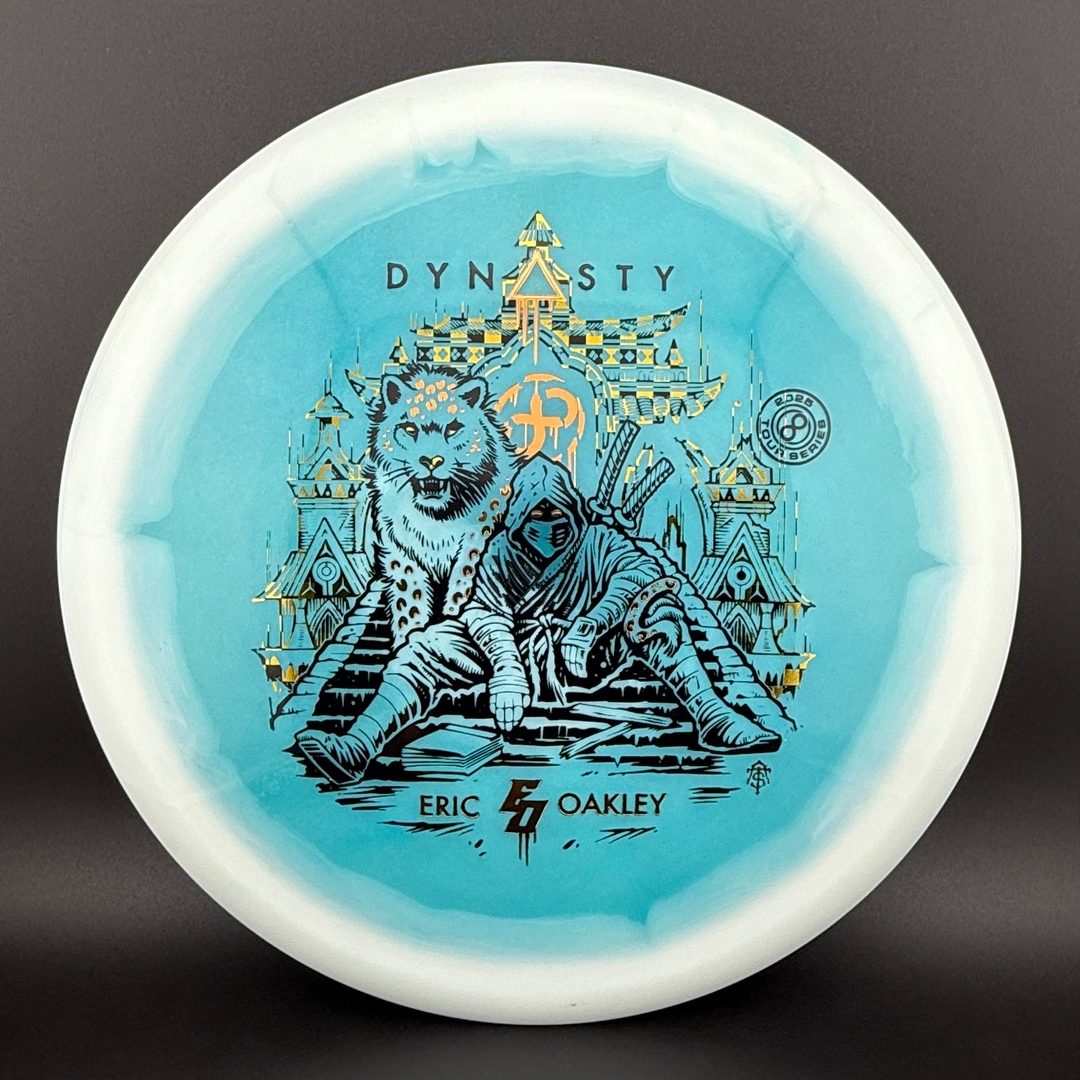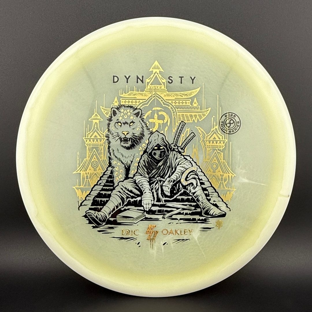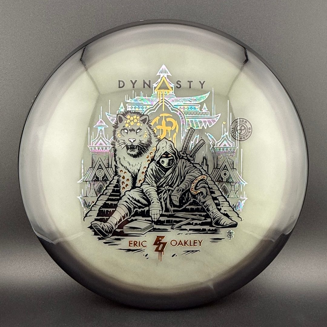 9/5/-1/2      *The first run of Halo C-Blend Glow Dynasties for Eric Oakley's 2025 Tour Series!   *These have a little bit of domeyness compared to past dynasties.  *Staff favorite.   *Storage wear is possible with this type of plastic. *Minor swirl differences possible, multiple available.
