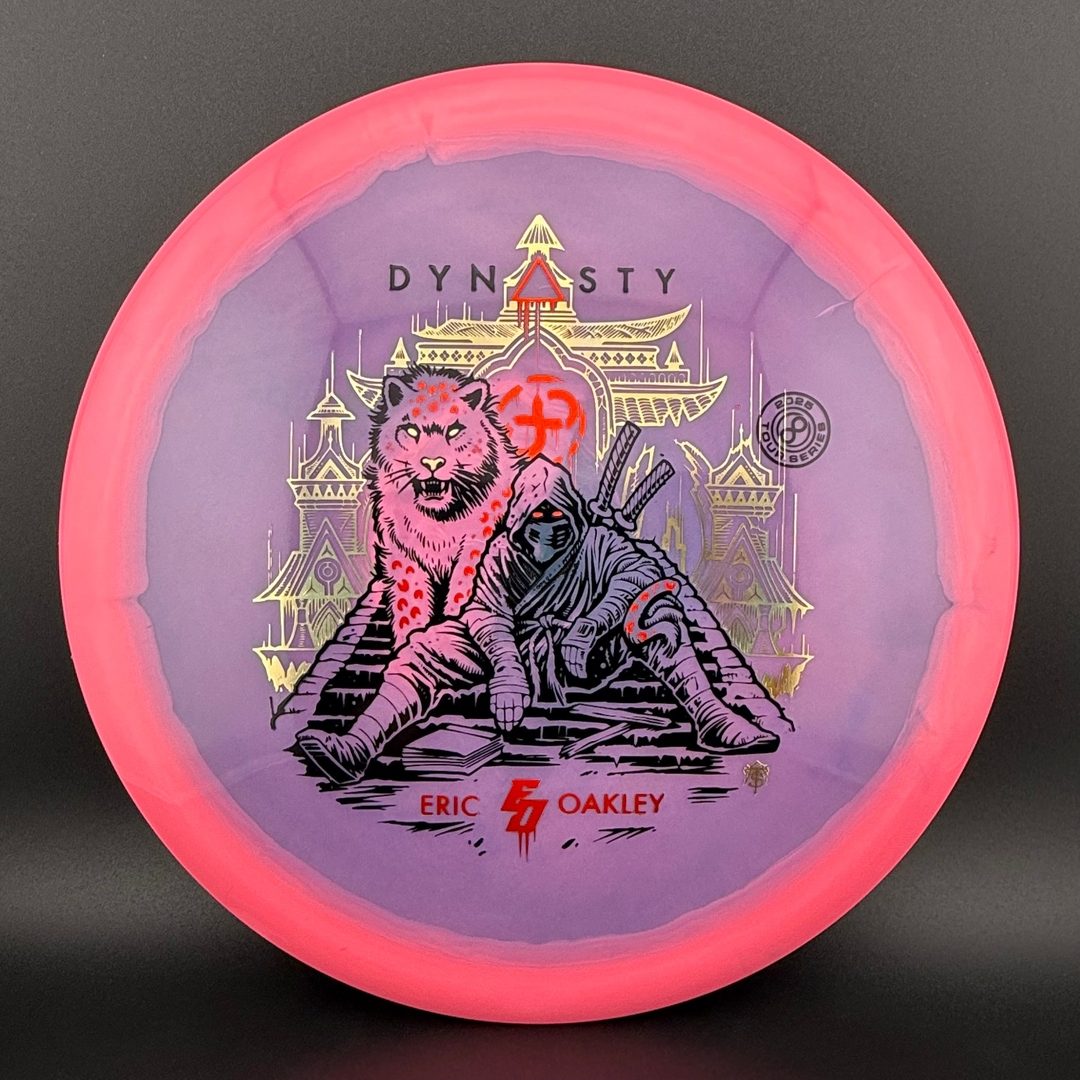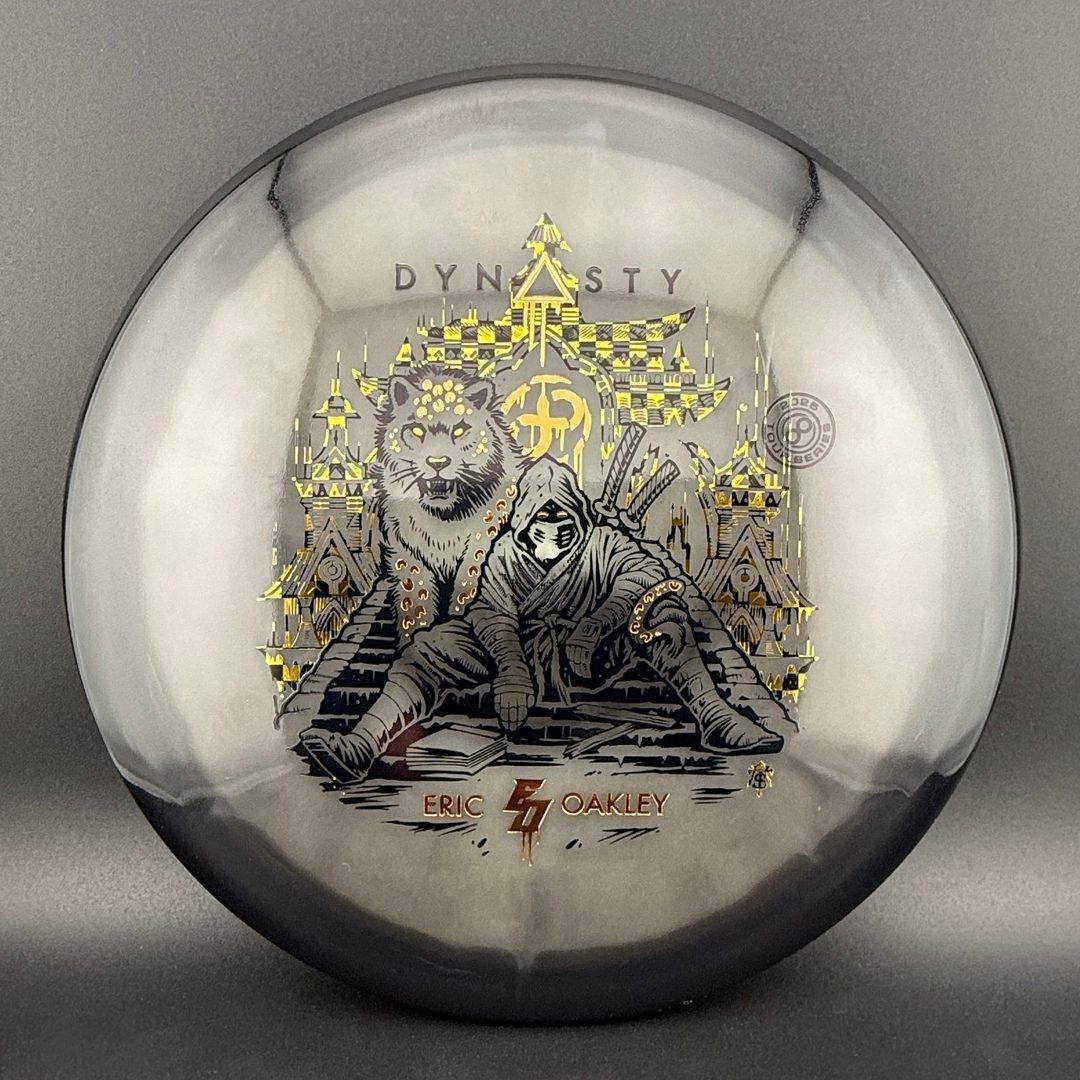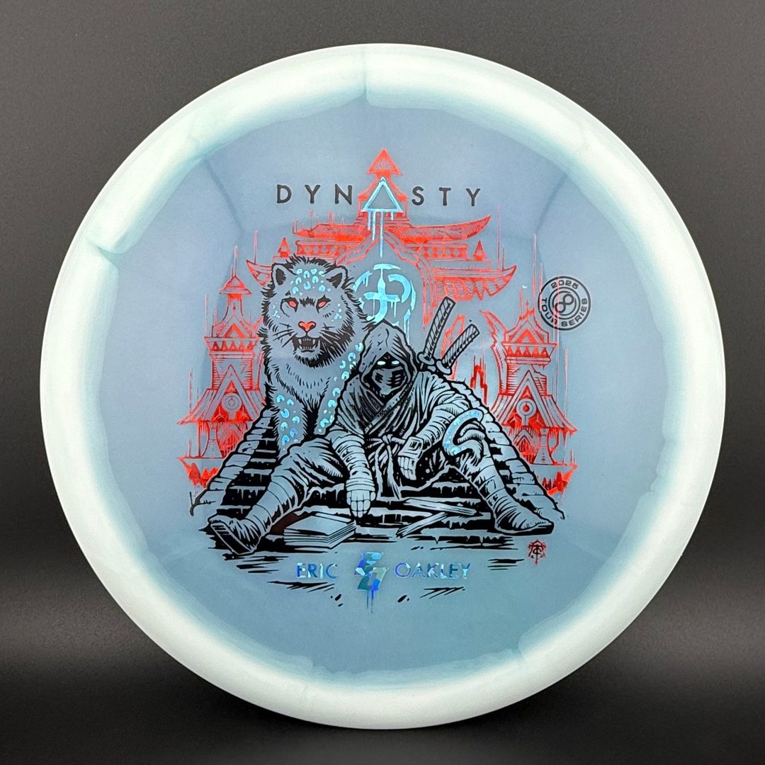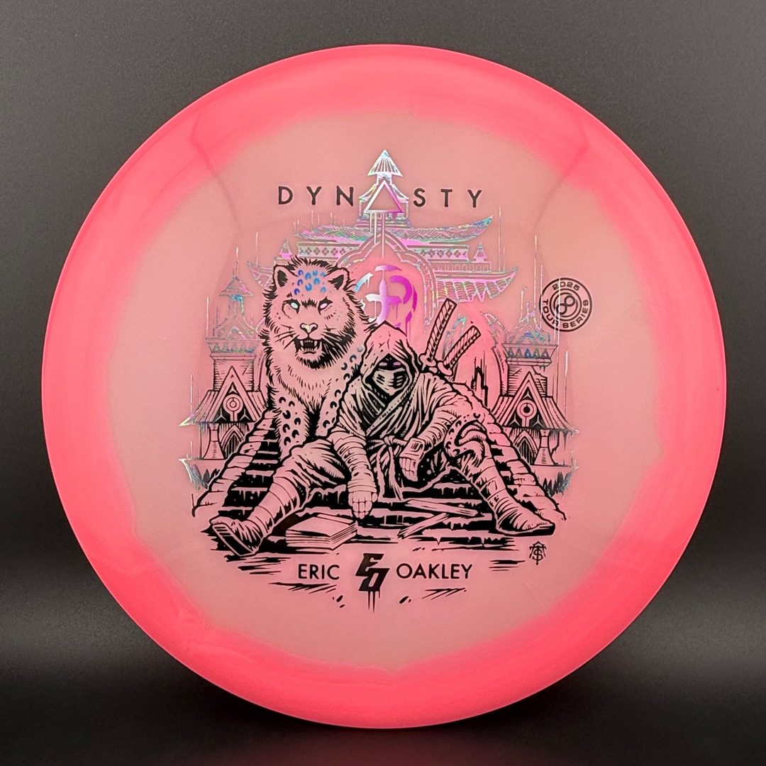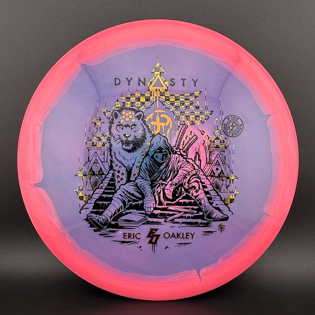 9/5/-1/2      *The first run of Halo C-Blend Glow Dynasties for Eric Oakley's 2025 Tour Series!   *These have a little bit of domeyness compared to past dynasties.  *Staff favorite.   *Storage wear is possible with this type of plastic. *Minor swirl differences possible, multiple available.