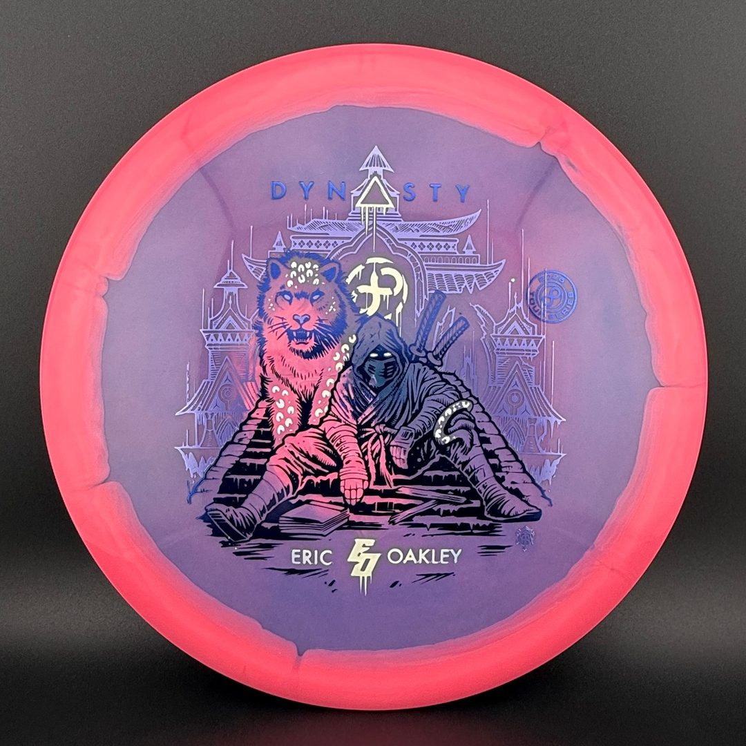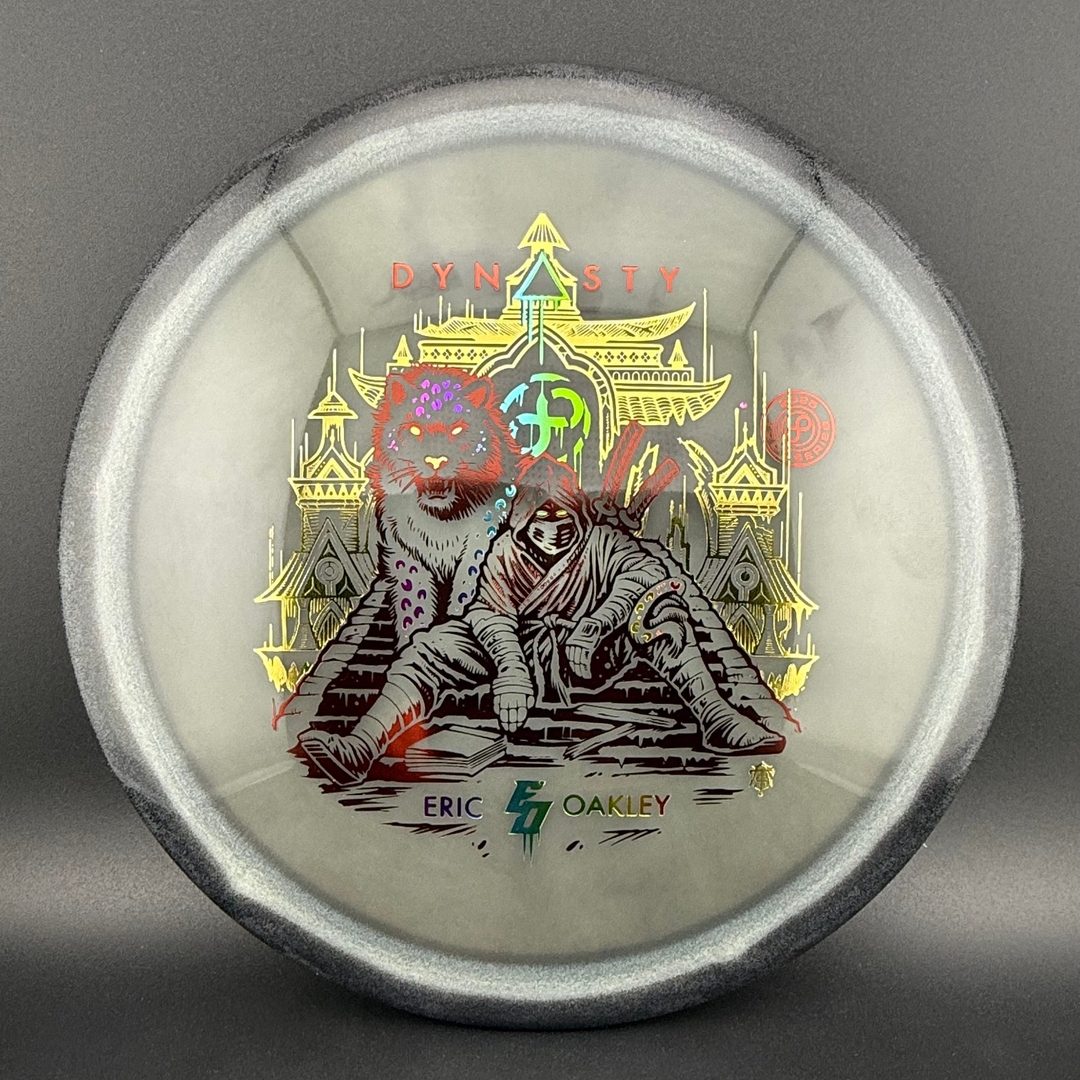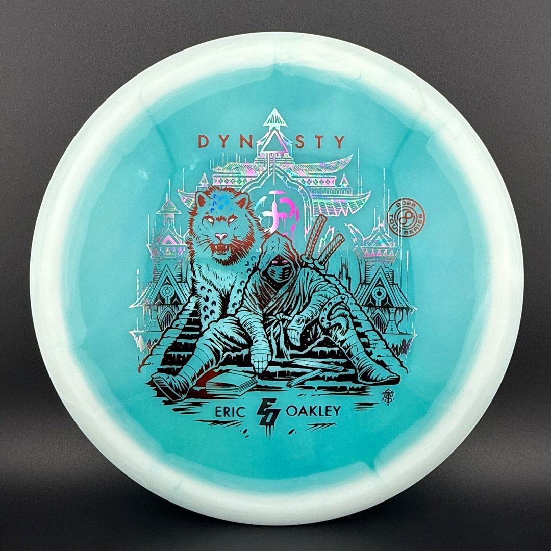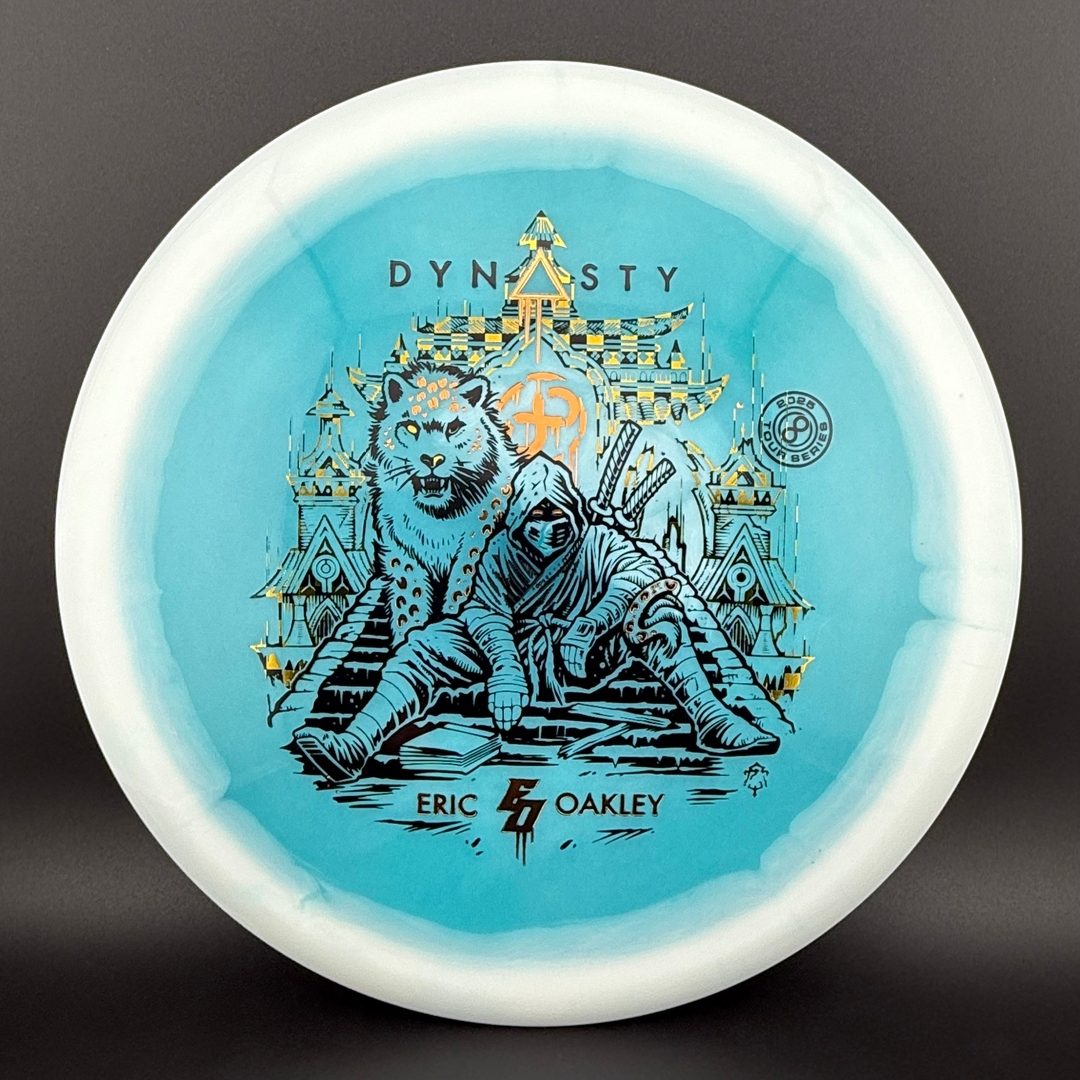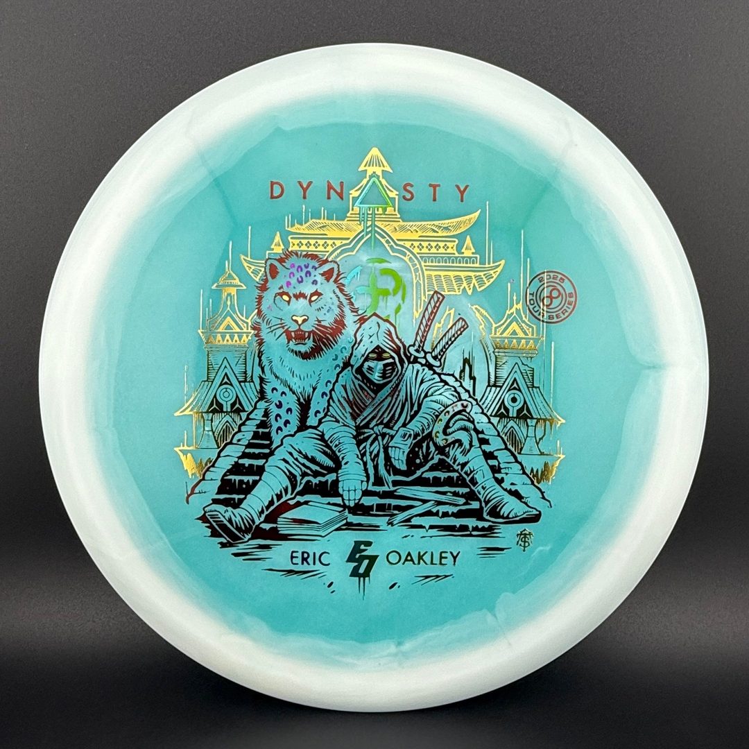 9/5/-1/2      *The first run of Halo C-Blend Glow Dynasties for Eric Oakley's 2025 Tour Series!   *These have a little bit of domeyness compared to past dynasties.  *Staff favorite.   *Storage wear is possible with this type of plastic. *Minor swirl differences possible, multiple available.