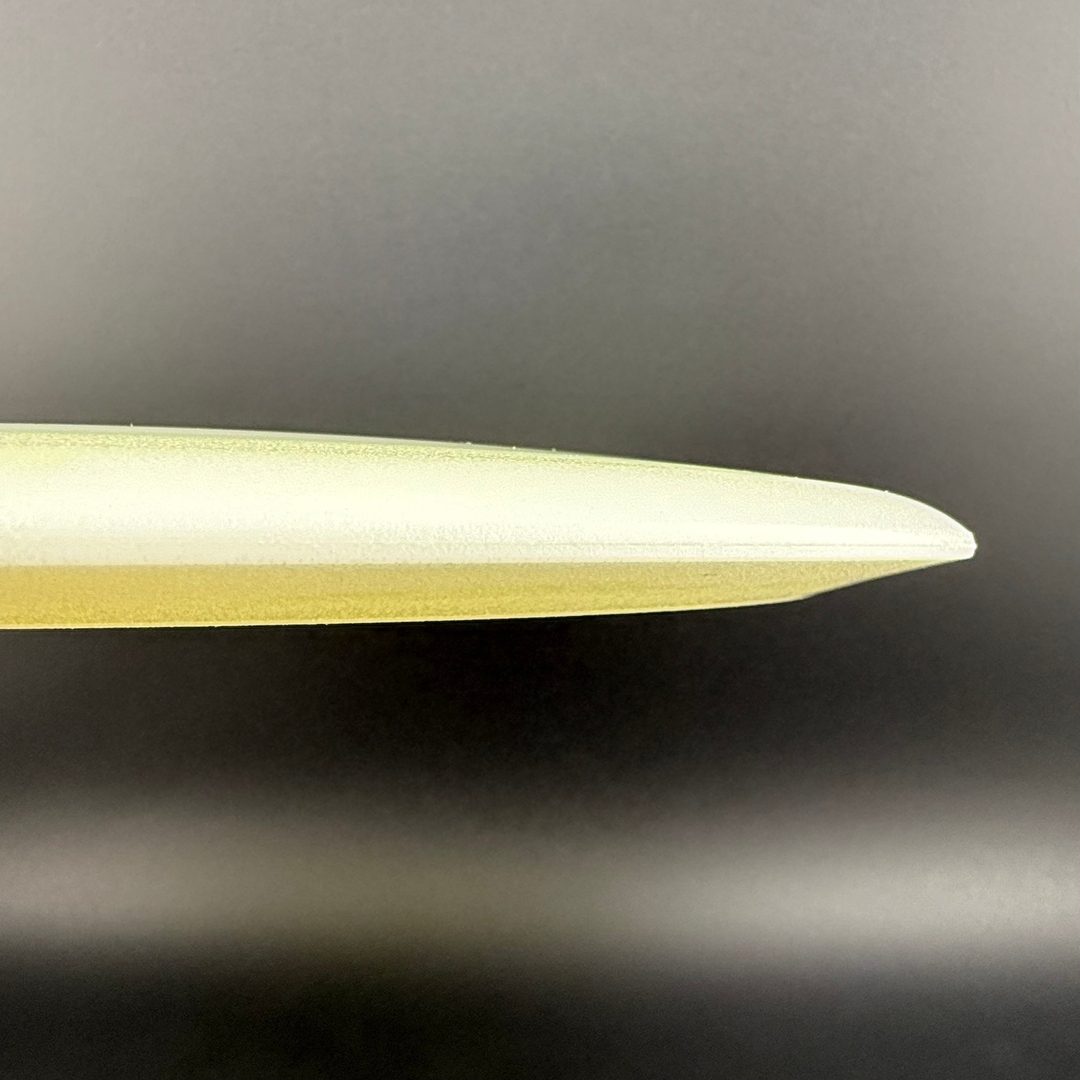 Halo Glow C-Blend plastic offers the perfect fusion of durability, glow-in-the-dark functionality, and striking aesthetics. Based on the premium C-Blend plastic, it provides a firm, stable feel with a slightly more overstable flight than standard blends. The “halo” rim adds visual flair and distinction, while the glow core makes it great for night play. This plastic is ideal for players who want long-lasting performance with added grip and visibility in low light.