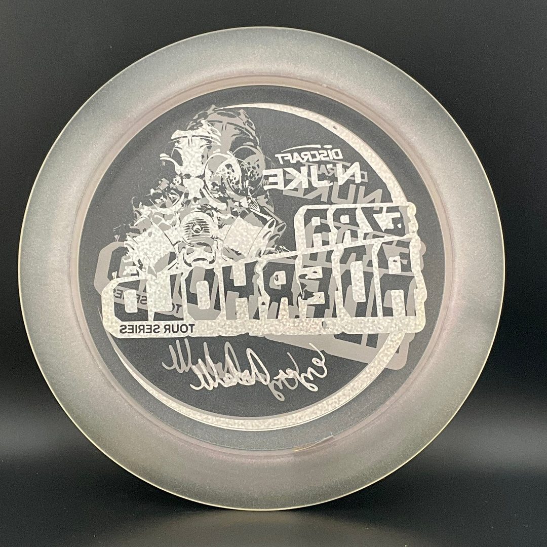 Ezra Aderhold Nuke – Ezra is one of the furthest throwing guys on Tour and he exploded onto the scene. This offseason he signed with Discraft and this is his first Tour Series disc. The Ezra Aderhold Nuke is one of the furthest flying discs on the market and the new Metallic Z plastic feels amazing in the hand. The Nuke is a fast disc(13 speed) that really loves to push forward the whole flight. This is the perfect disc for big arms that are searching for a little bit more distance. These are some the best feeling discs around, plus Ezra is the man!!! He is one of the best young players in the sport and is a social media star. While you may not throw as far as Ezra you can be just like him while supporting him at the same time with his Metallic Z Nuke. Grab an Ezra Aderhold Nuke today!!