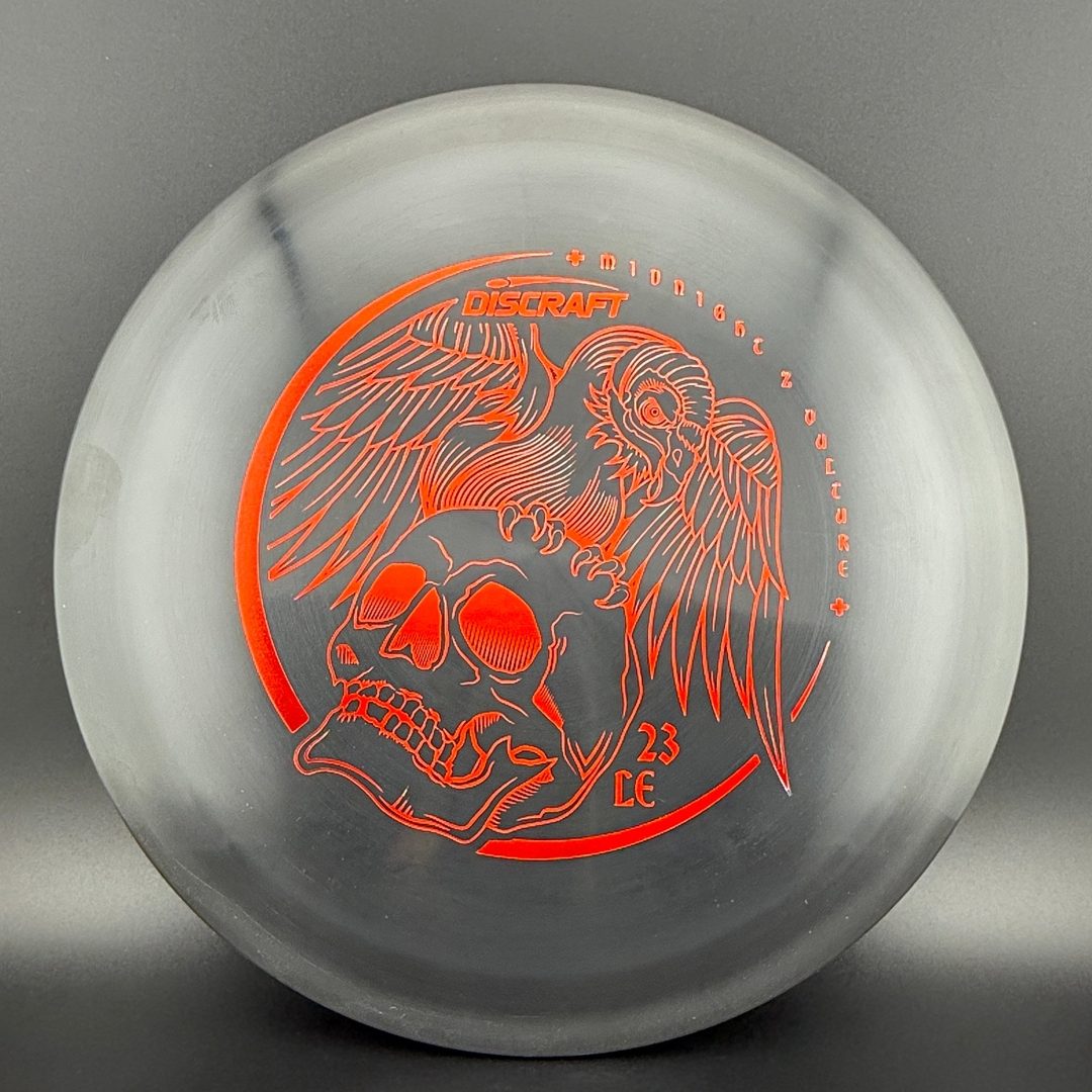 Discraft Midnight Z Plastic is a premium, ultra-durable Z blend molded in deep, opaque black for a sleek, collectible look. This plastic offers the same firm feel, torque resistance, and long-lasting stability as traditional Z Line, but with a darker, more striking aesthetic. Midnight Z discs often feature foils that pop dramatically against the black surface, making each piece visually standout while still delivering consistent, dependable performance on the course. Clean, bold, and built to last—Midnight Z brings premium feel with a stealthy finish.