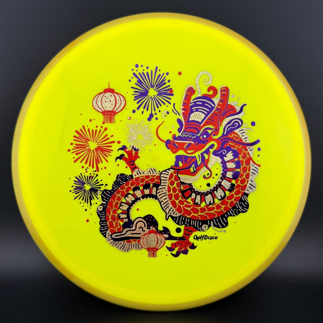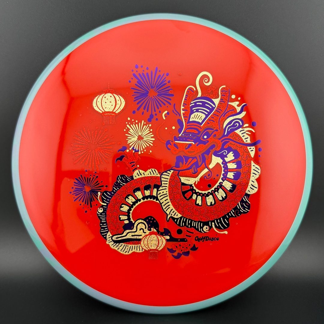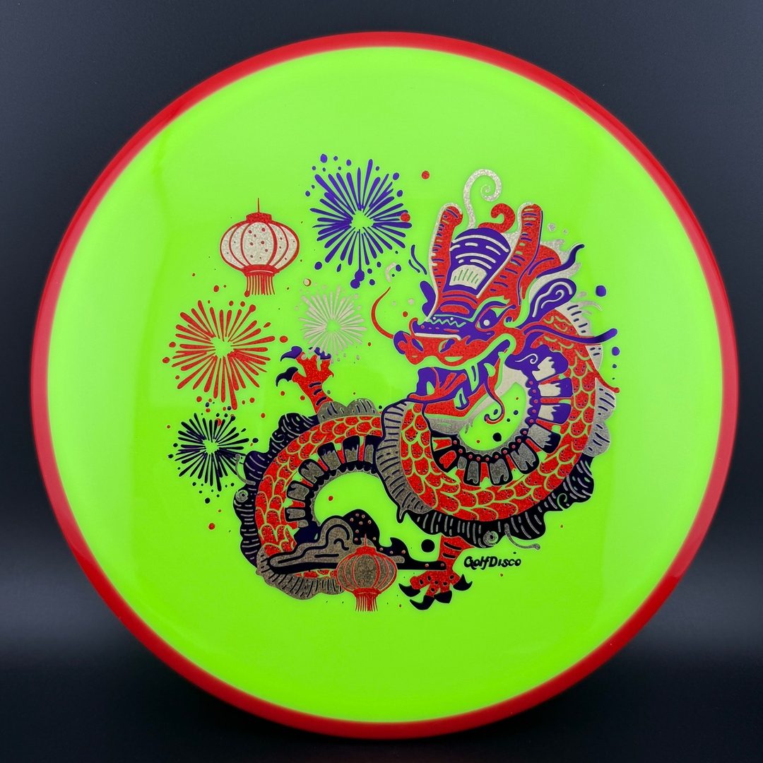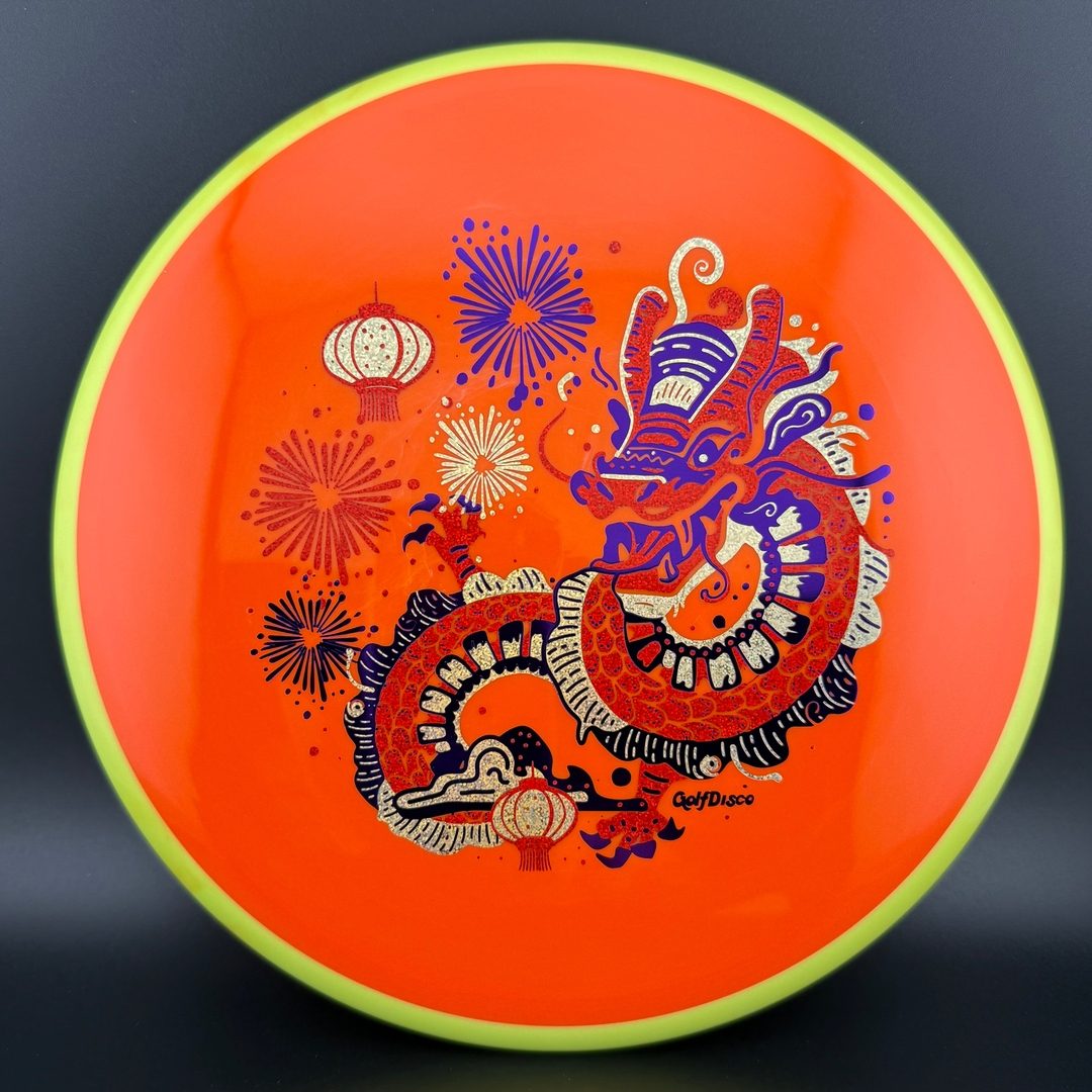 5/5/-1/1  *Limited run of Neutron Hex's with the beautiful Triple Foil "Chuxi" New Years Dragon Design!  All Discs have Red and Gold Glitter Holo Foils with a Metallic Grape Pink Foil.  *Minor storage wear possible from manufacturer.