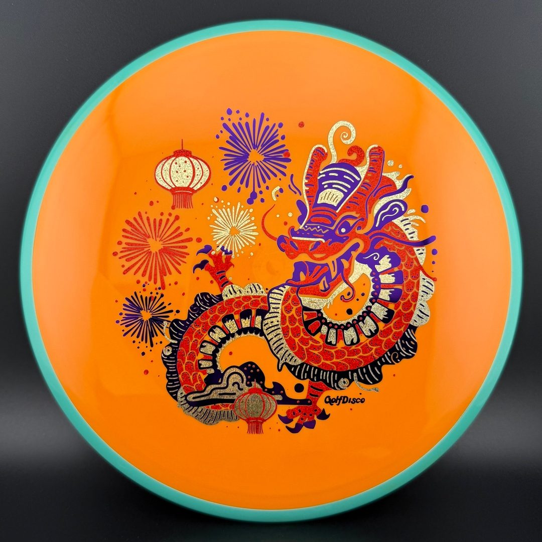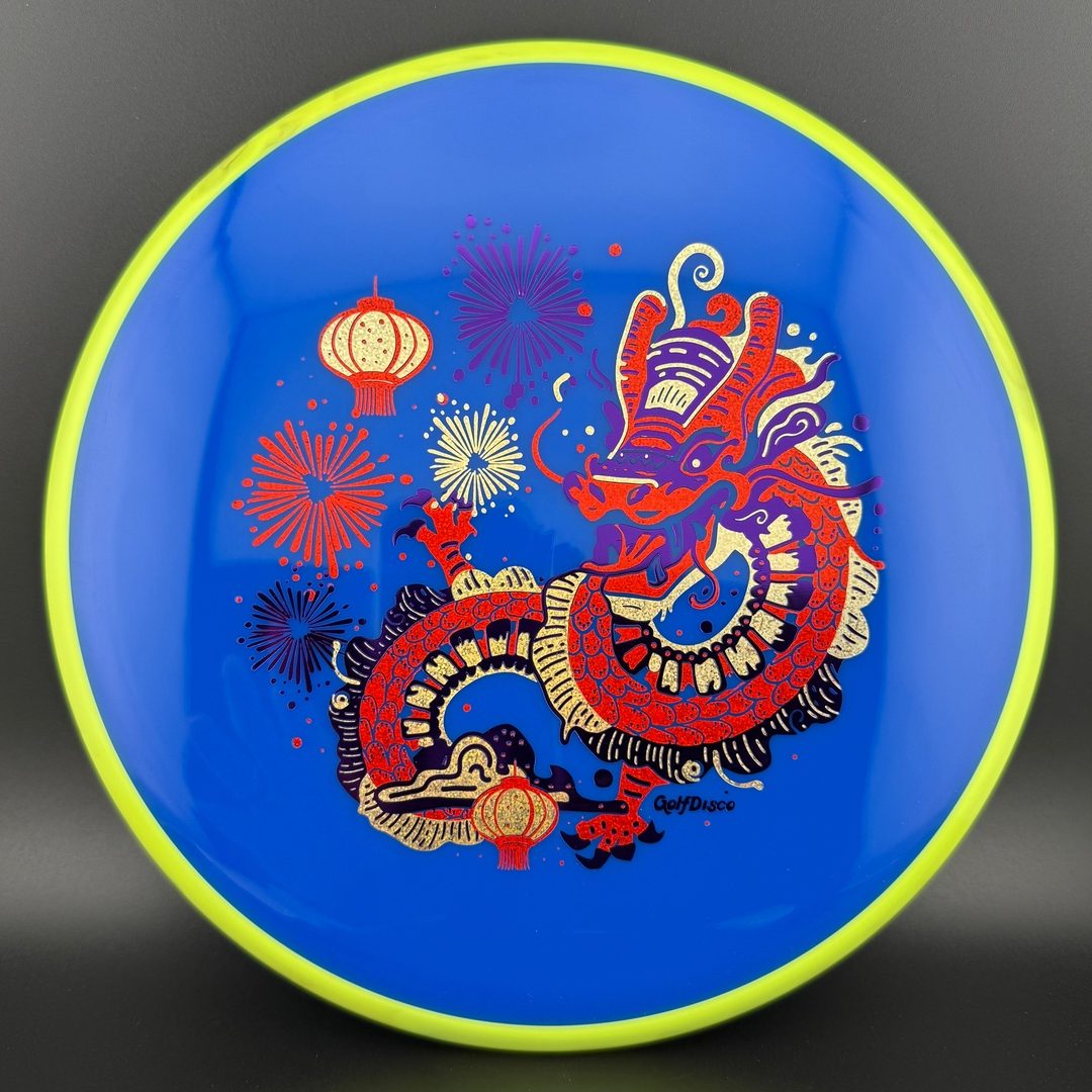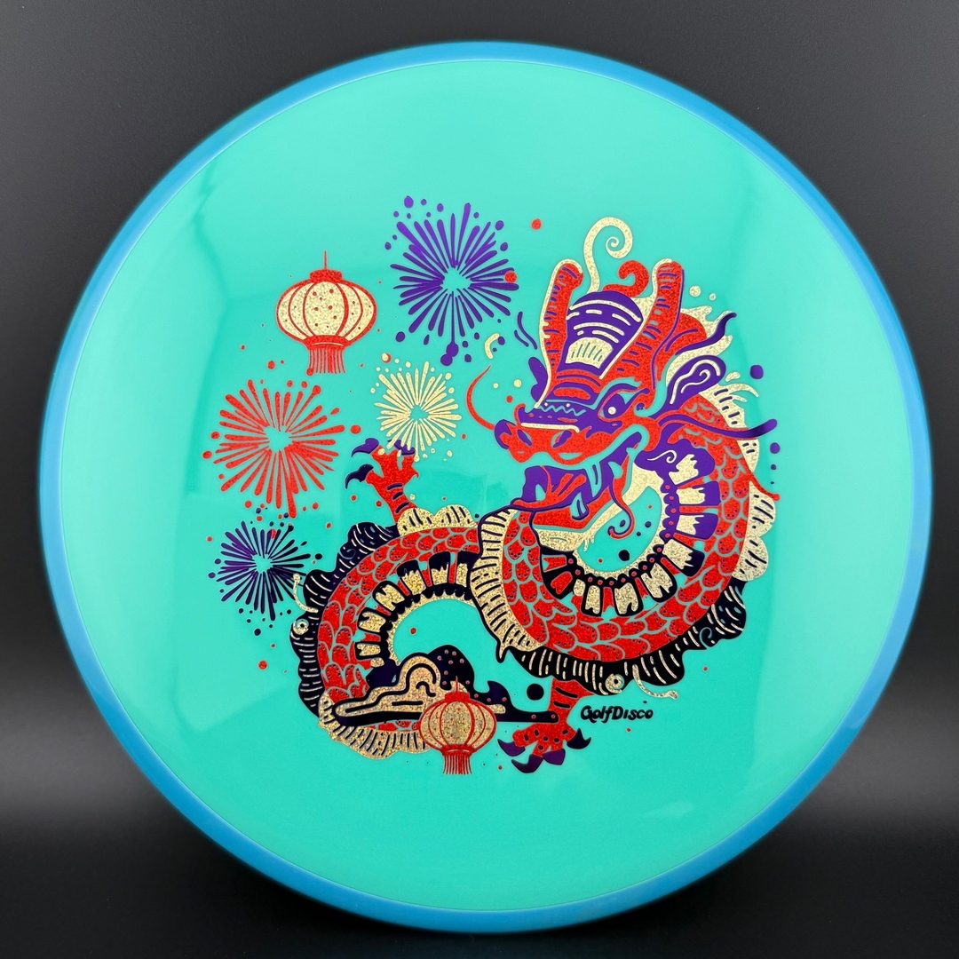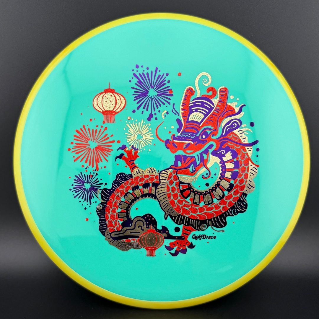 5/5/-1/1  *Limited run of Neutron Hex's with the beautiful Triple Foil "Chuxi" New Years Dragon Design!  All Discs have Red and Gold Glitter Holo Foils with a Metallic Grape Pink Foil.  *Minor storage wear possible from manufacturer.