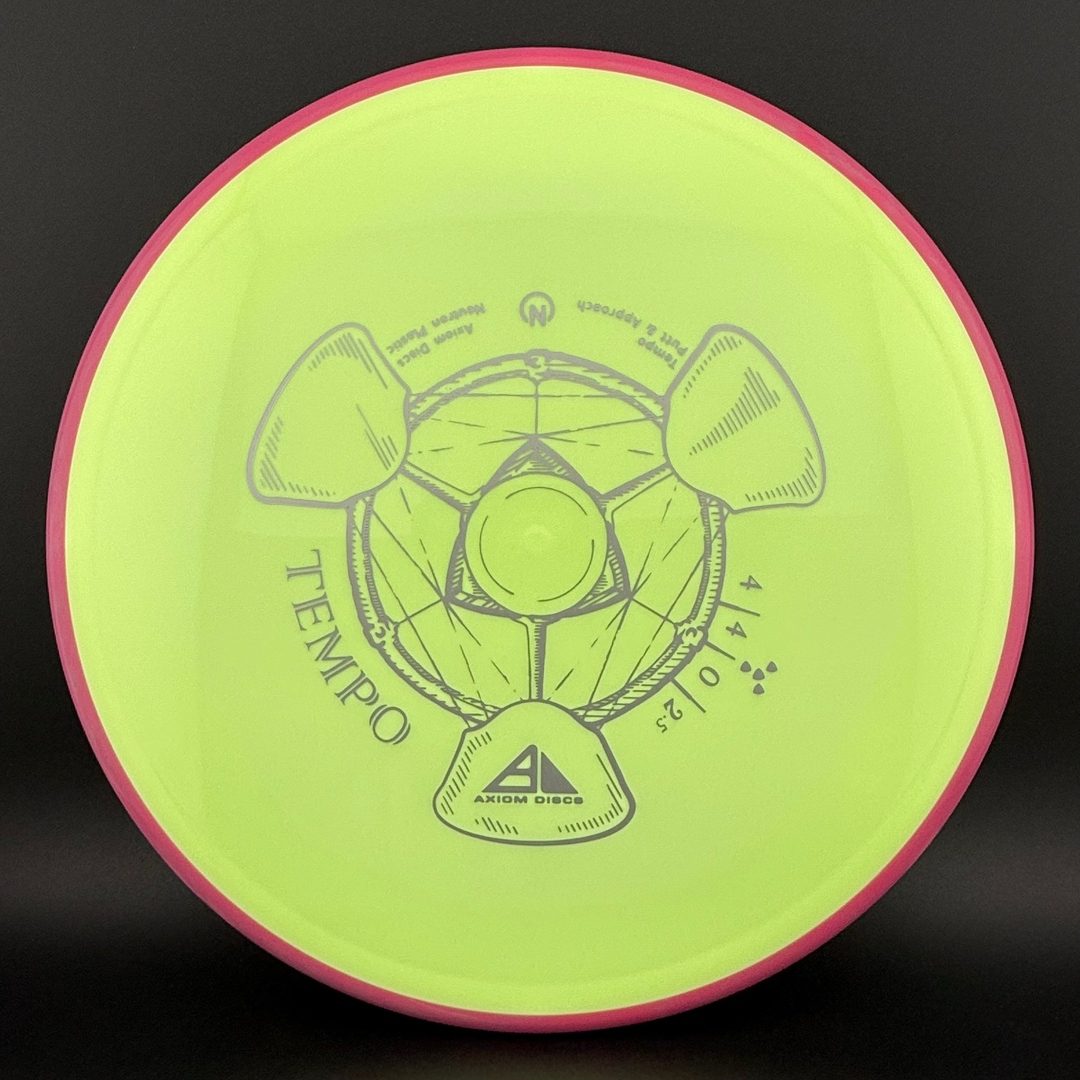 The Axiom Tempo is an overstable approach disc designed for precision and control. Its low-profile, flat-top design offers a comfortable grip, making it ideal for both backhand and forehand throws. The Tempo excels in delivering consistent, straight flights with a reliable fade, even in windy conditions. Its torque resistance allows for confident, powerful throws without the risk of flipping. Whether navigating tight fairways or executing precise upshots, the Tempo provides dependable performance for players seeking accuracy in their short game.