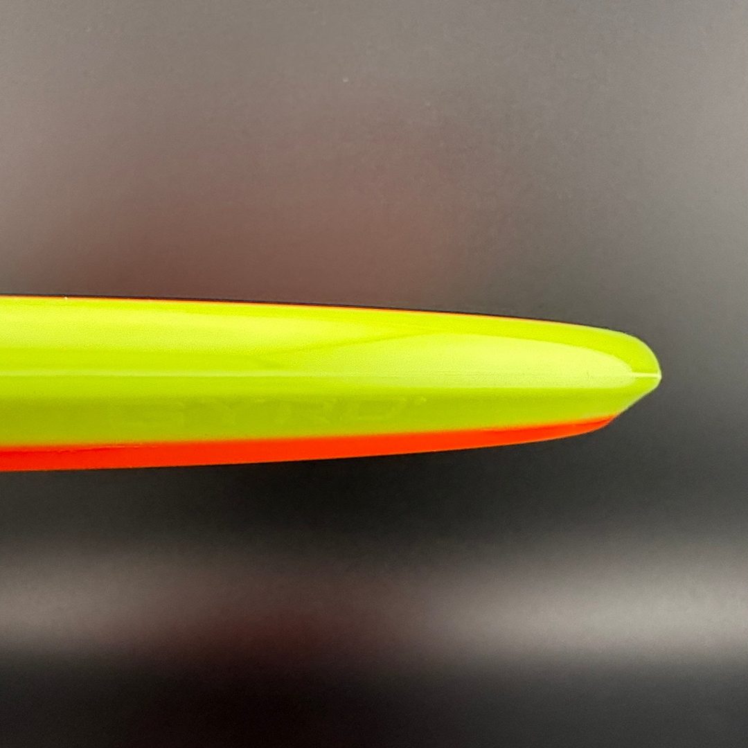 Neutron plastic is Axiom's premium material, known for its durability and vibrant appearance. It offers a high-end feel with a slightly slicker texture compared to other plastics, providing a comfortable grip for various throwing styles. Neutron plastic is available in a wide range of bright, opaque colorways, enhancing visibility on the course. Its durability ensures consistent performance over time, making it a popular choice among players seeking reliable flight characteristics and a visually appealing disc.