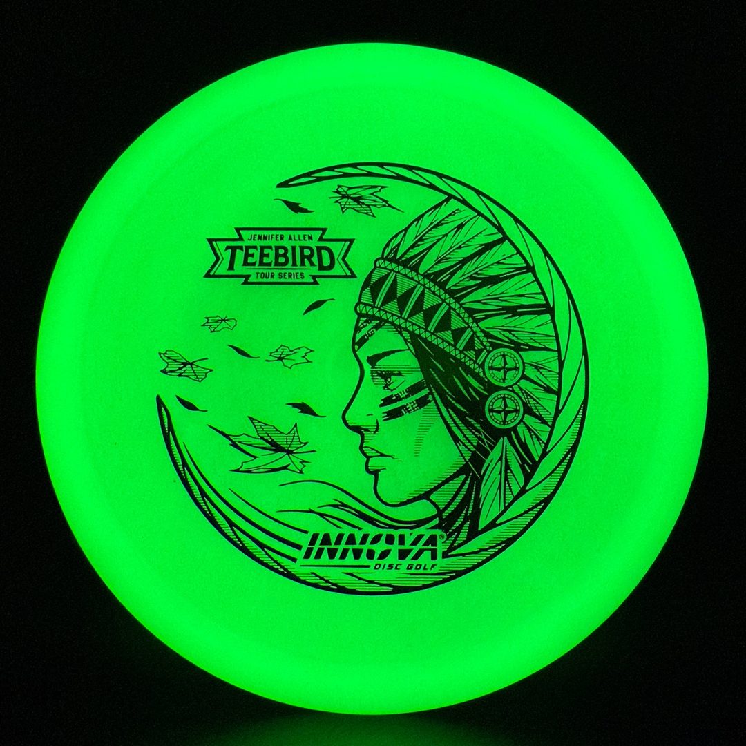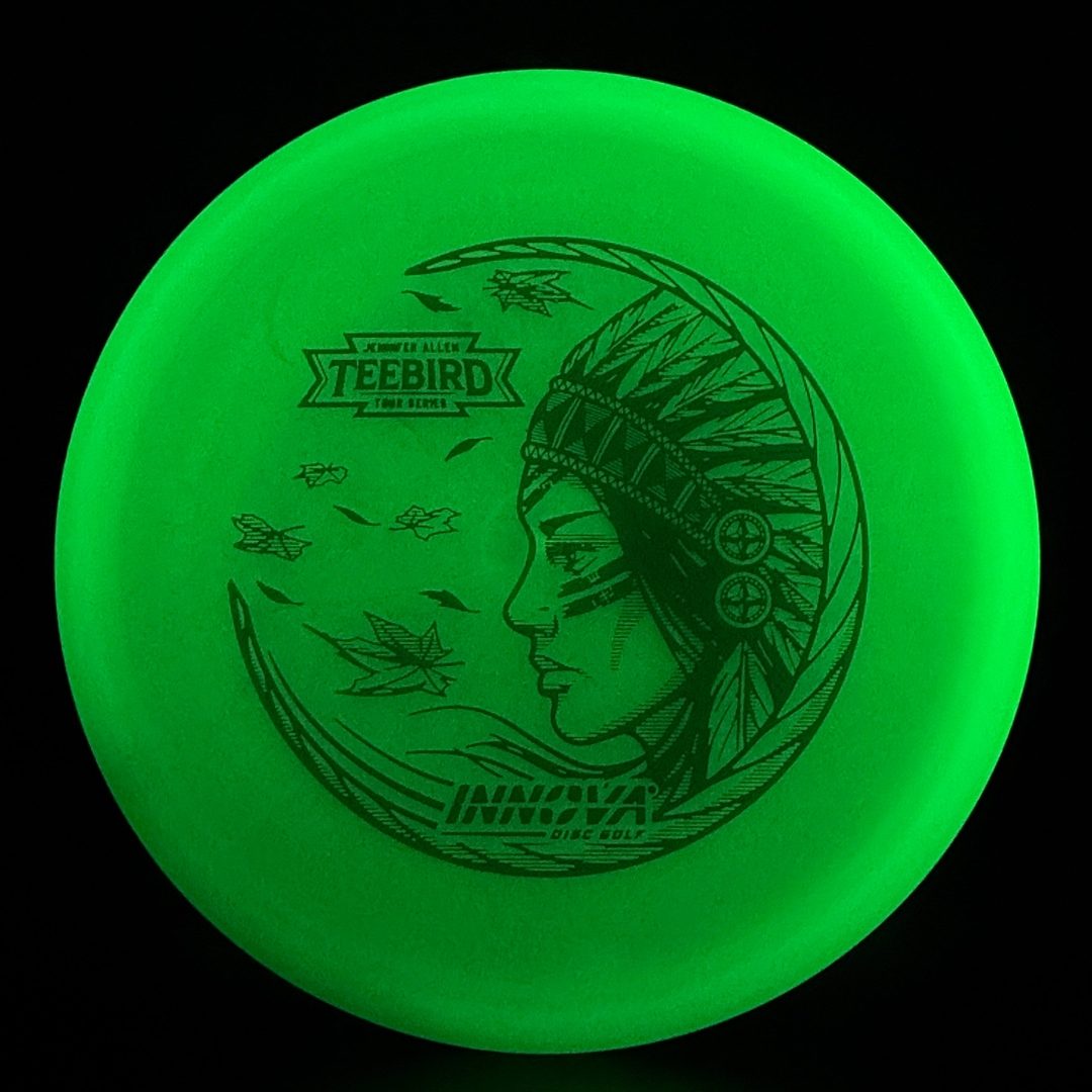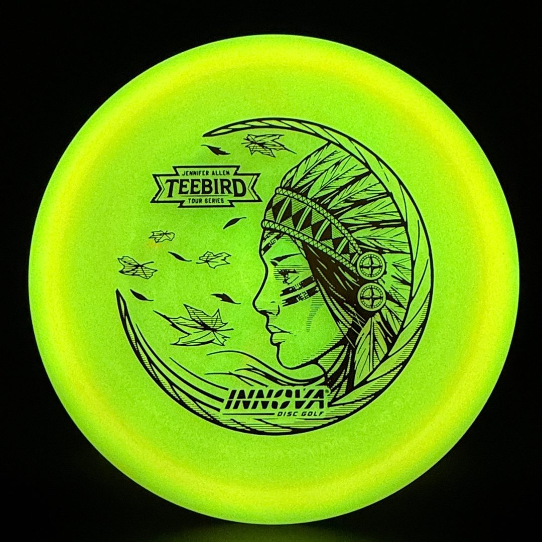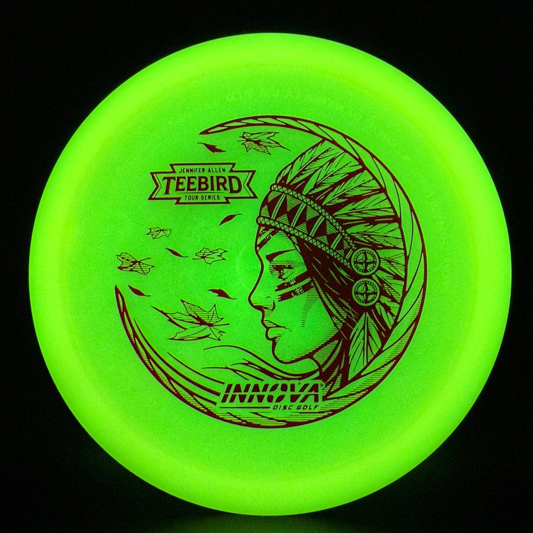 7/5/0/2    *NOTE ALL PINKS HAVE LOST THEIR COLOR SINCE PHOTOS.  Innova informed us this happened for this years run faster than expected. 2025 Proto Glow Champion Teebird, Jennifer Allen Tour Series offers glowing durability, grip, precise flight.