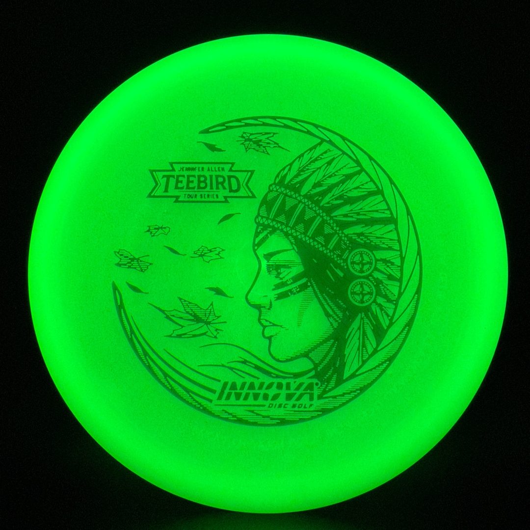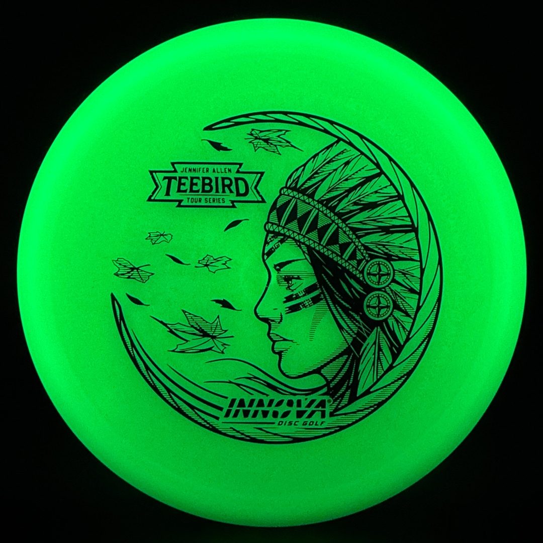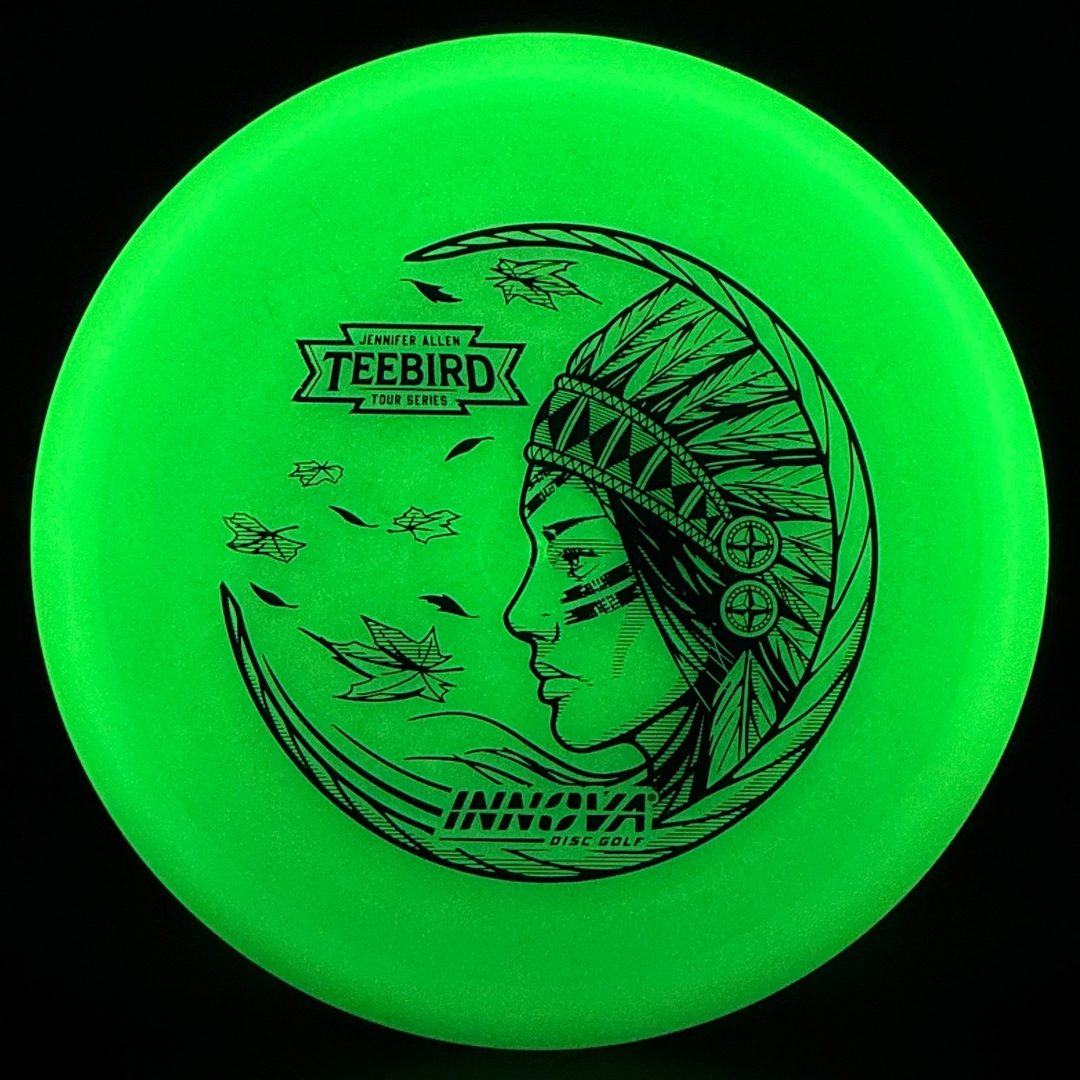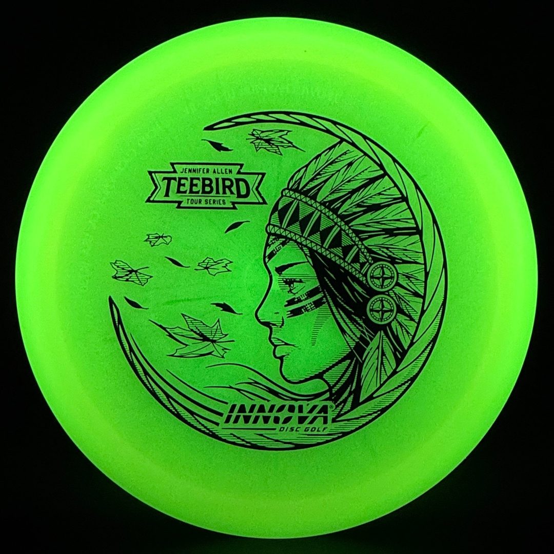 7/5/0/2    *NOTE ALL PINKS HAVE LOST THEIR COLOR SINCE PHOTOS.  Innova informed us this happened for this years run faster than expected. 2025 Proto Glow Champion Teebird, Jennifer Allen Tour Series offers glowing durability, grip, precise flight.