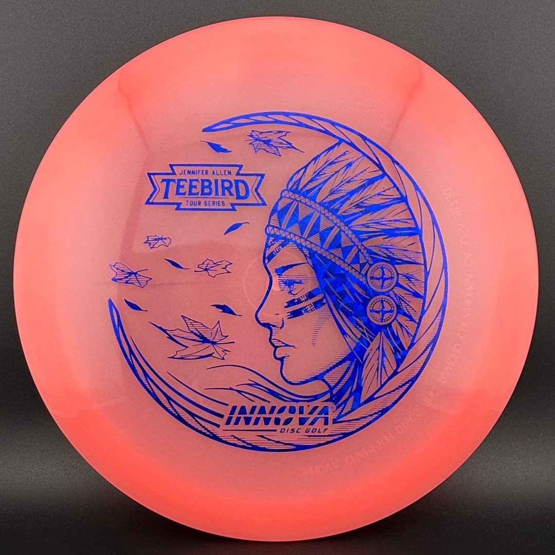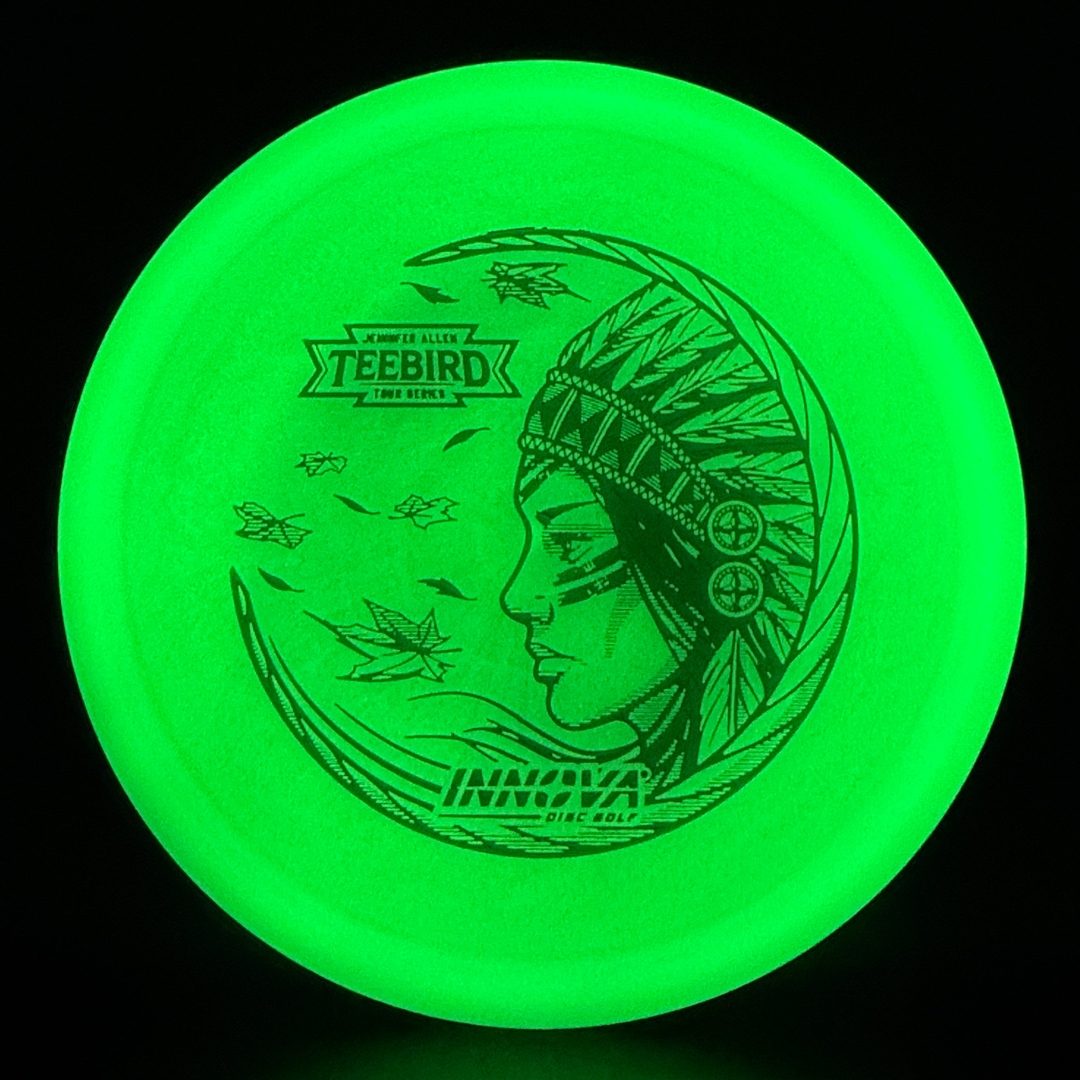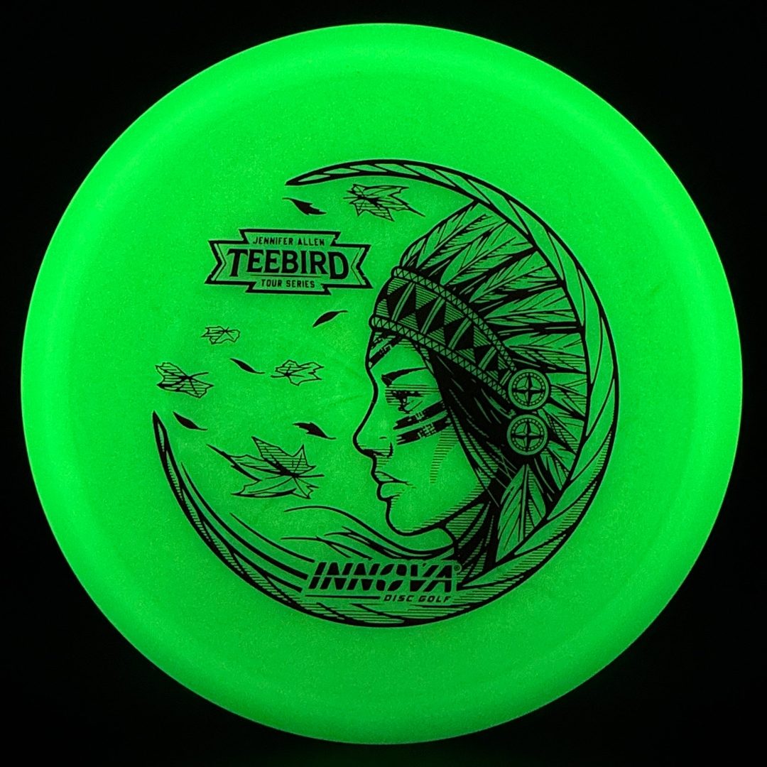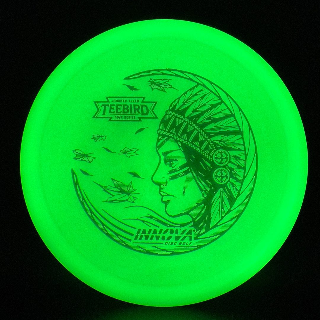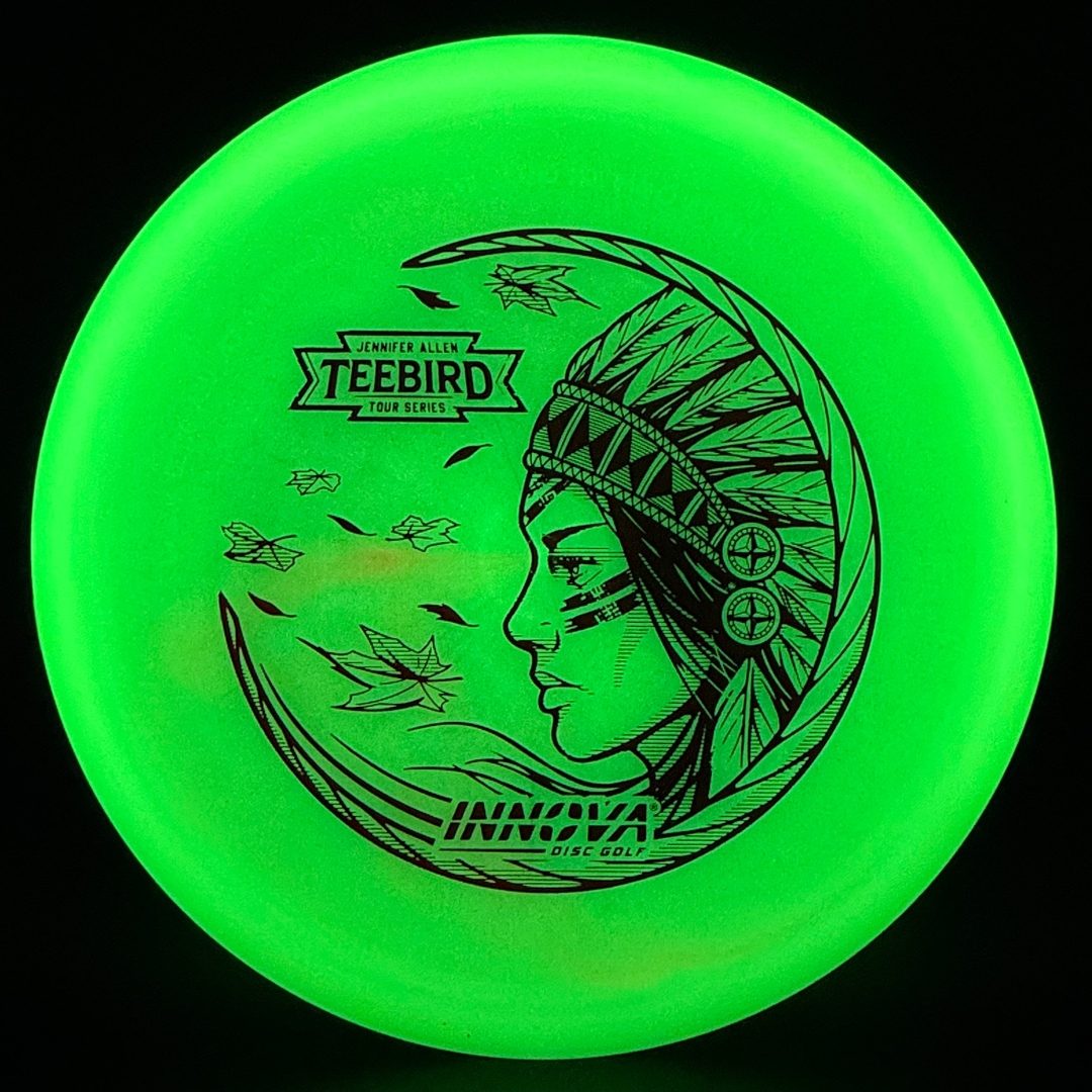 7/5/0/2    *NOTE ALL PINKS HAVE LOST THEIR COLOR SINCE PHOTOS.  Innova informed us this happened for this years run faster than expected. 2025 Proto Glow Champion Teebird, Jennifer Allen Tour Series offers glowing durability, grip, precise flight.