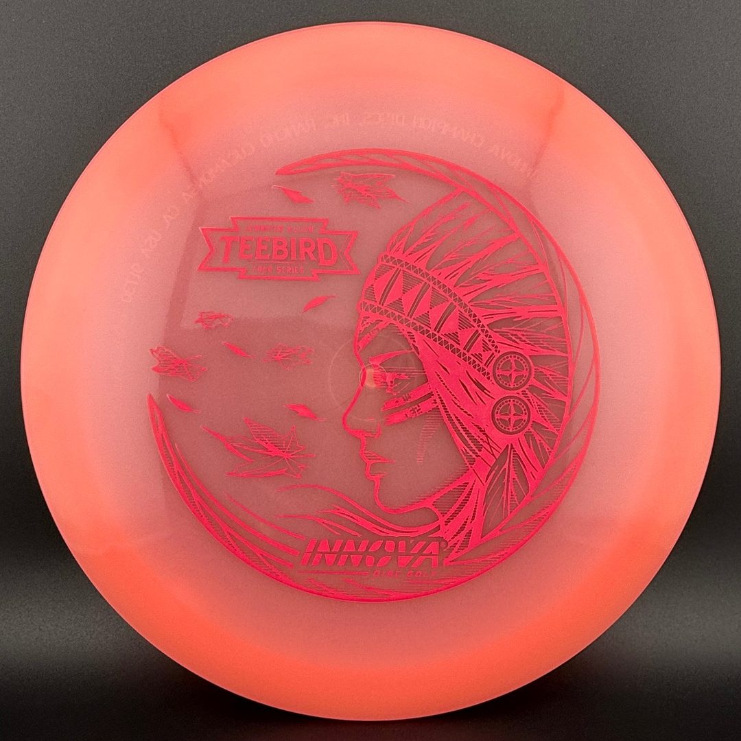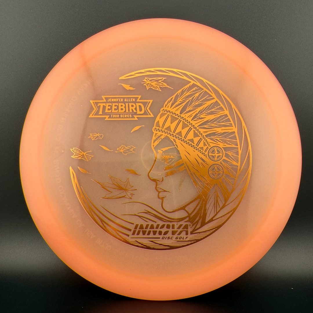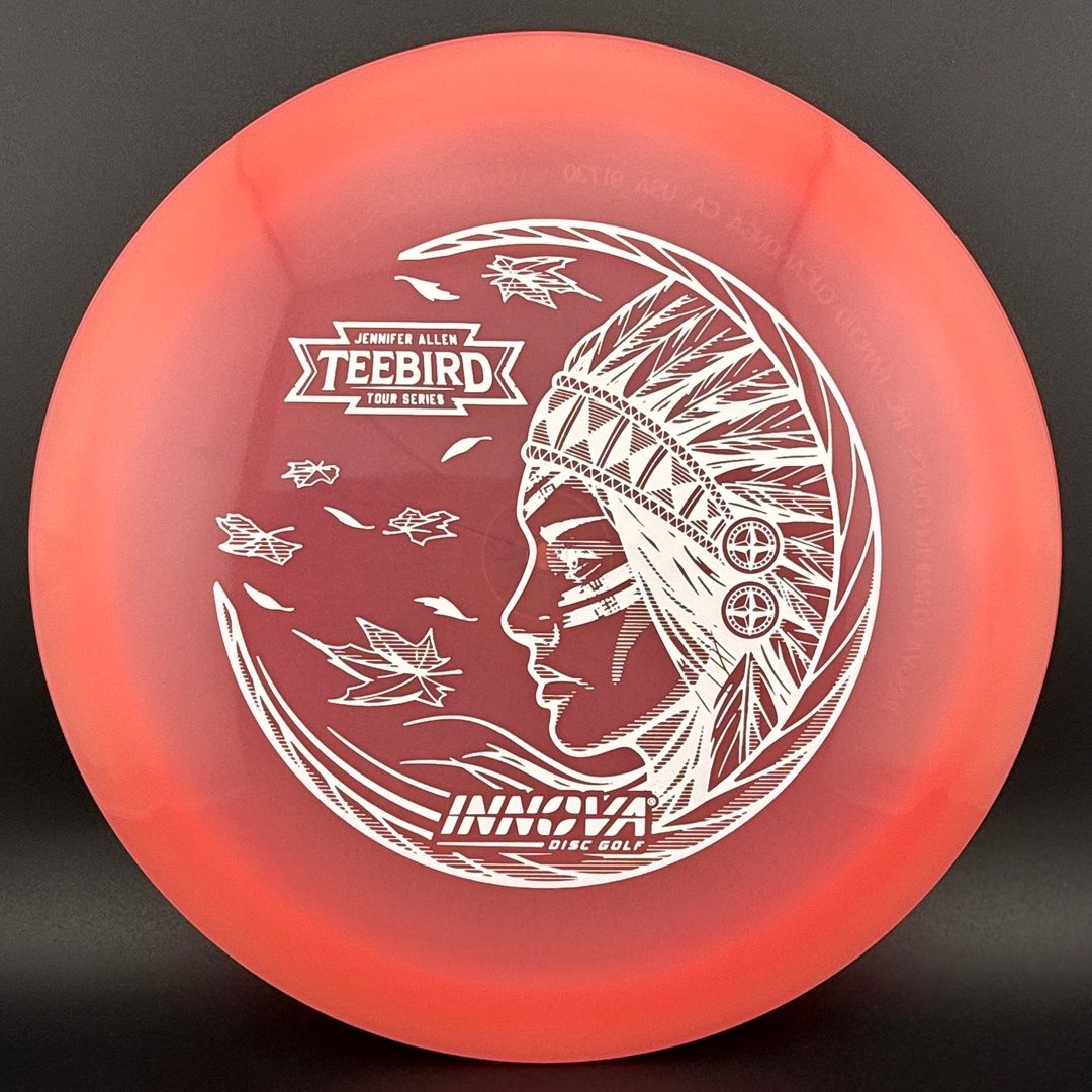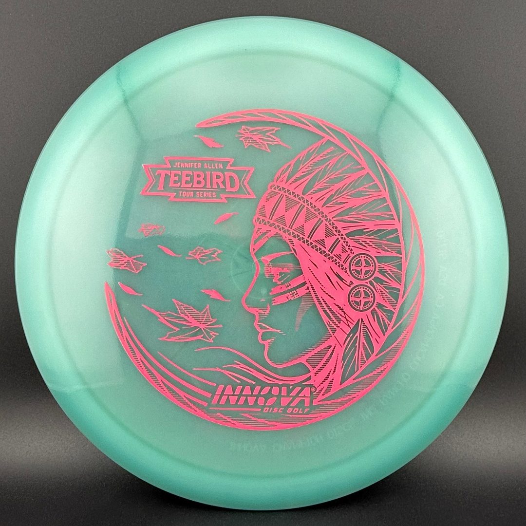 7/5/0/2    *NOTE ALL PINKS HAVE LOST THEIR COLOR SINCE PHOTOS.  Innova informed us this happened for this years run faster than expected. 2025 Proto Glow Champion Teebird, Jennifer Allen Tour Series offers glowing durability, grip, precise flight.